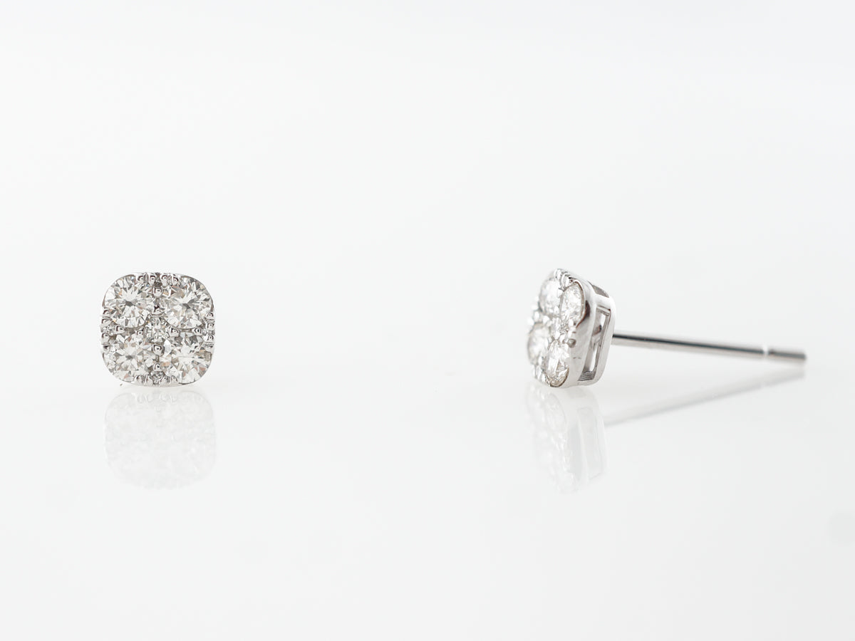 Pave Diamond Earring Studs in 14k White Gold. These dazzling pave cluster stud earrings contain .51 carats of diamonds set in 14 karat white gold. The rounded square setting provides a big look that can be worn with just about anything!