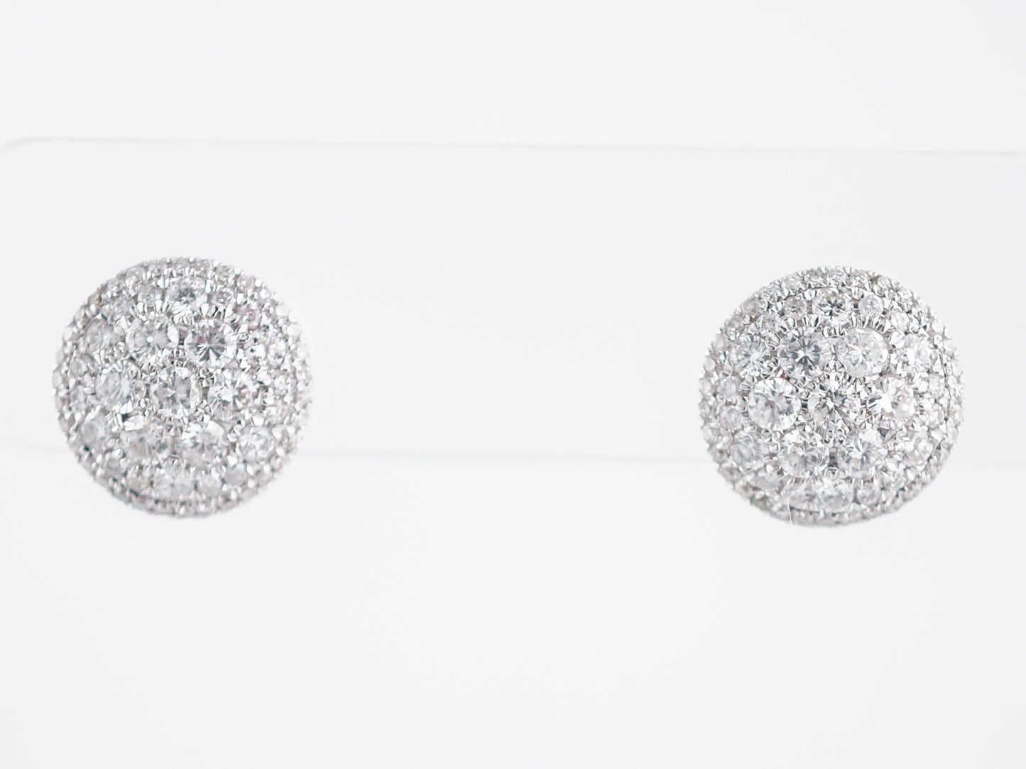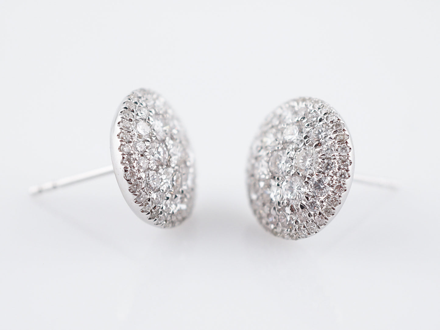 Pave Disc Earrings Modern 1.55 Round Brilliant Cut Diamonds in 14k White Gold