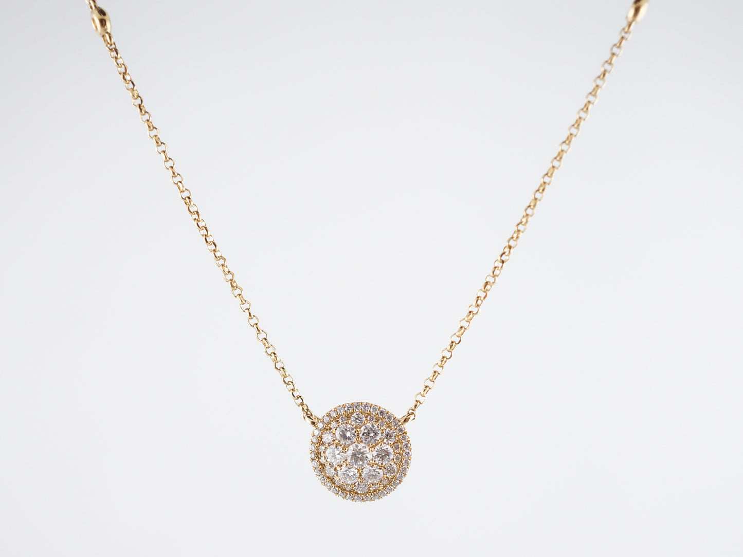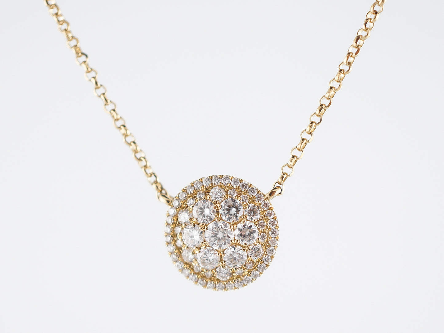 Pave Disc Necklace Modern .44 Round Brilliant Cut Diamonds in 18k Yellow Gold