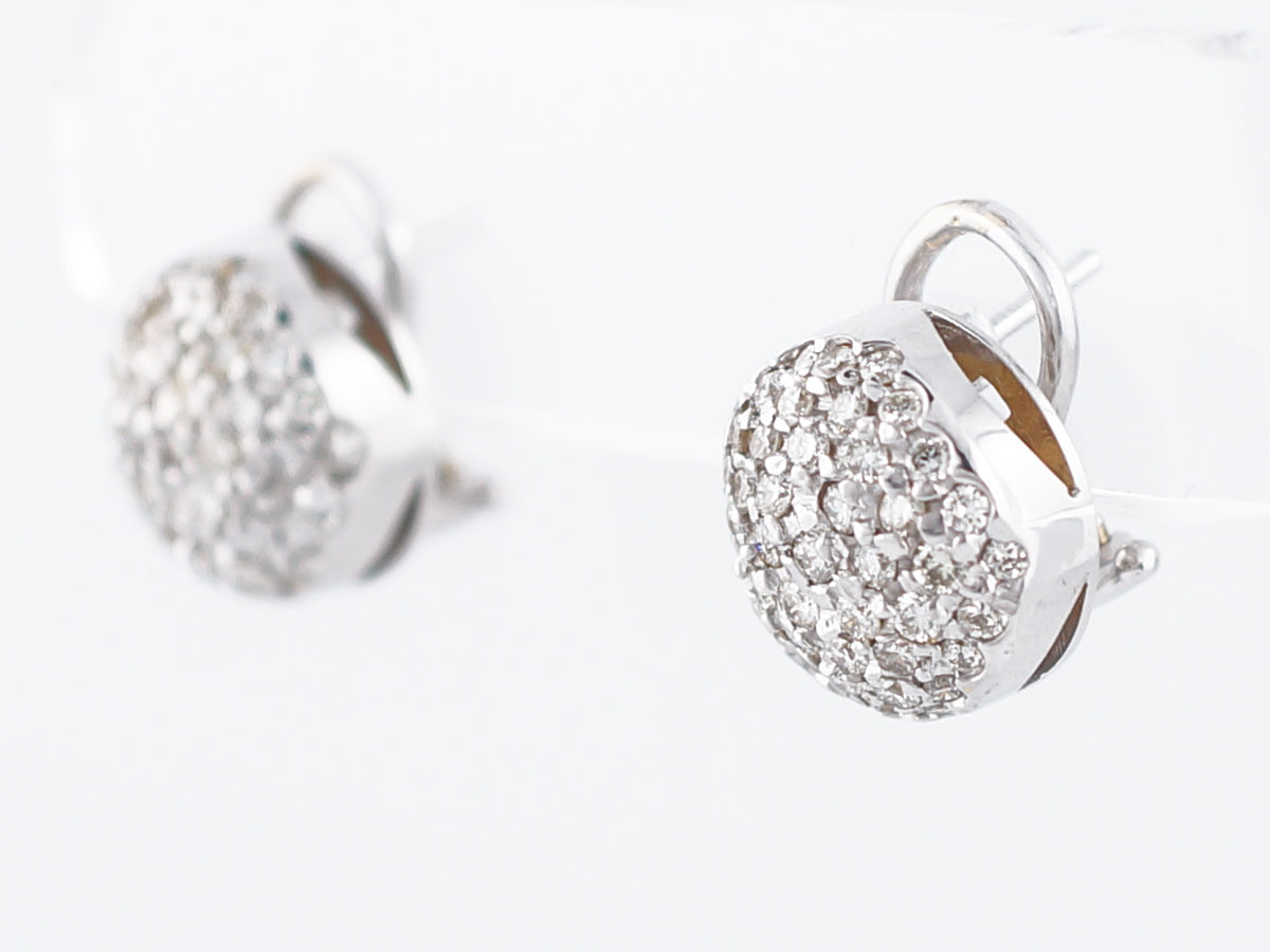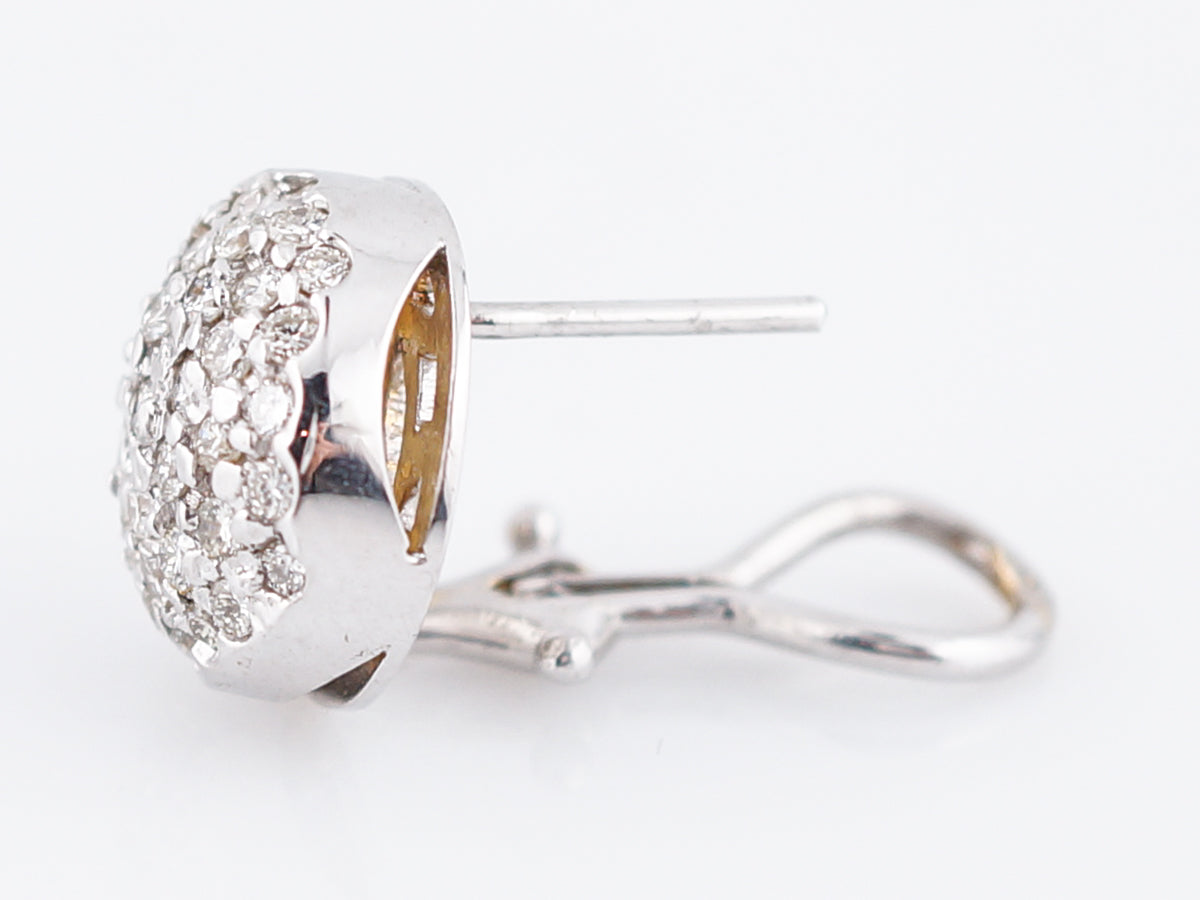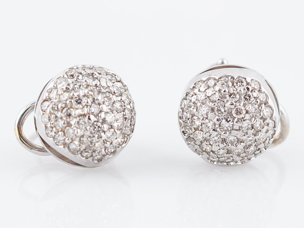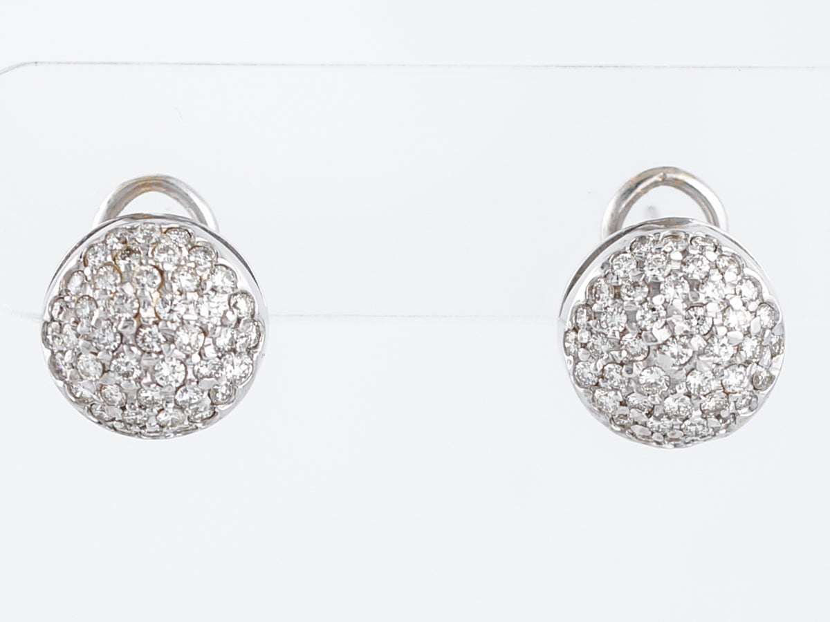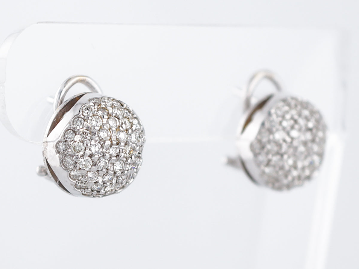 Pave Earrings Modern 1.50 Round Brilliant Cut Diamonds in 14k White Gold