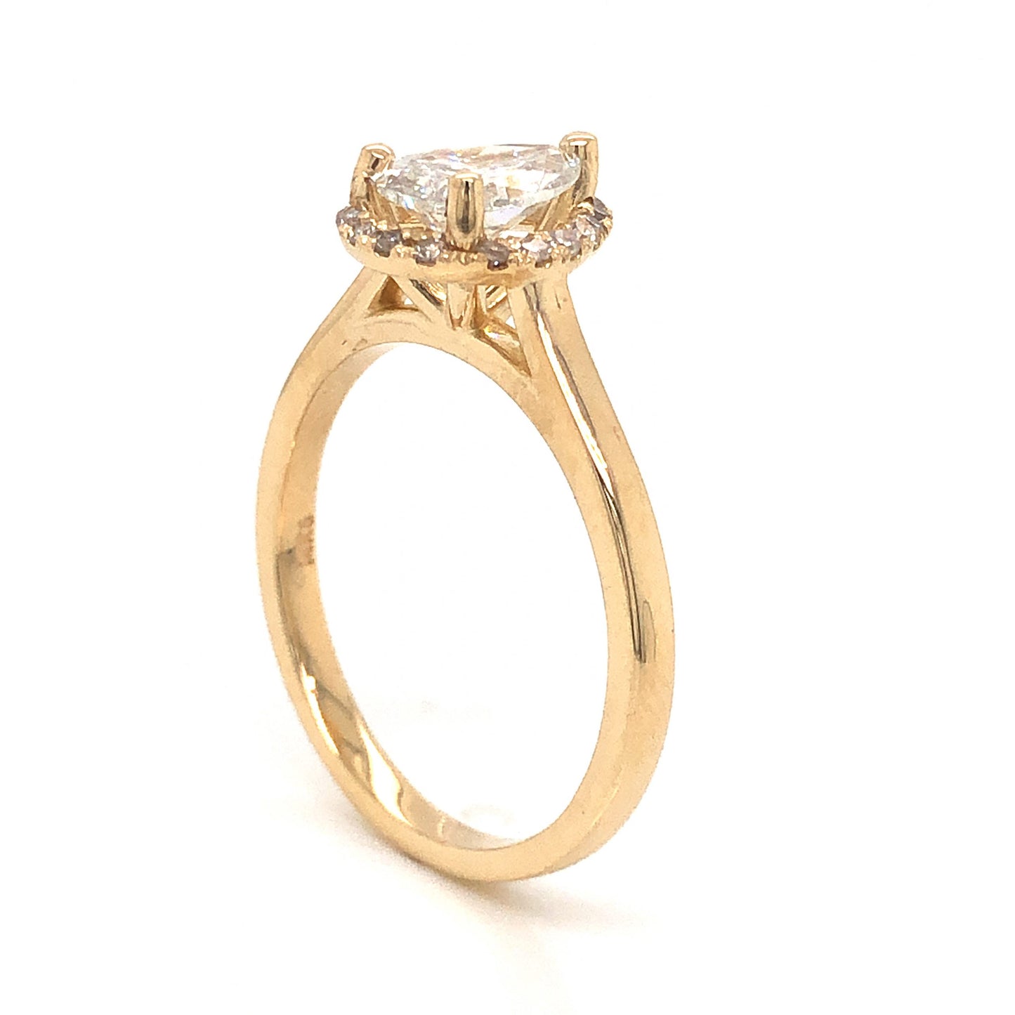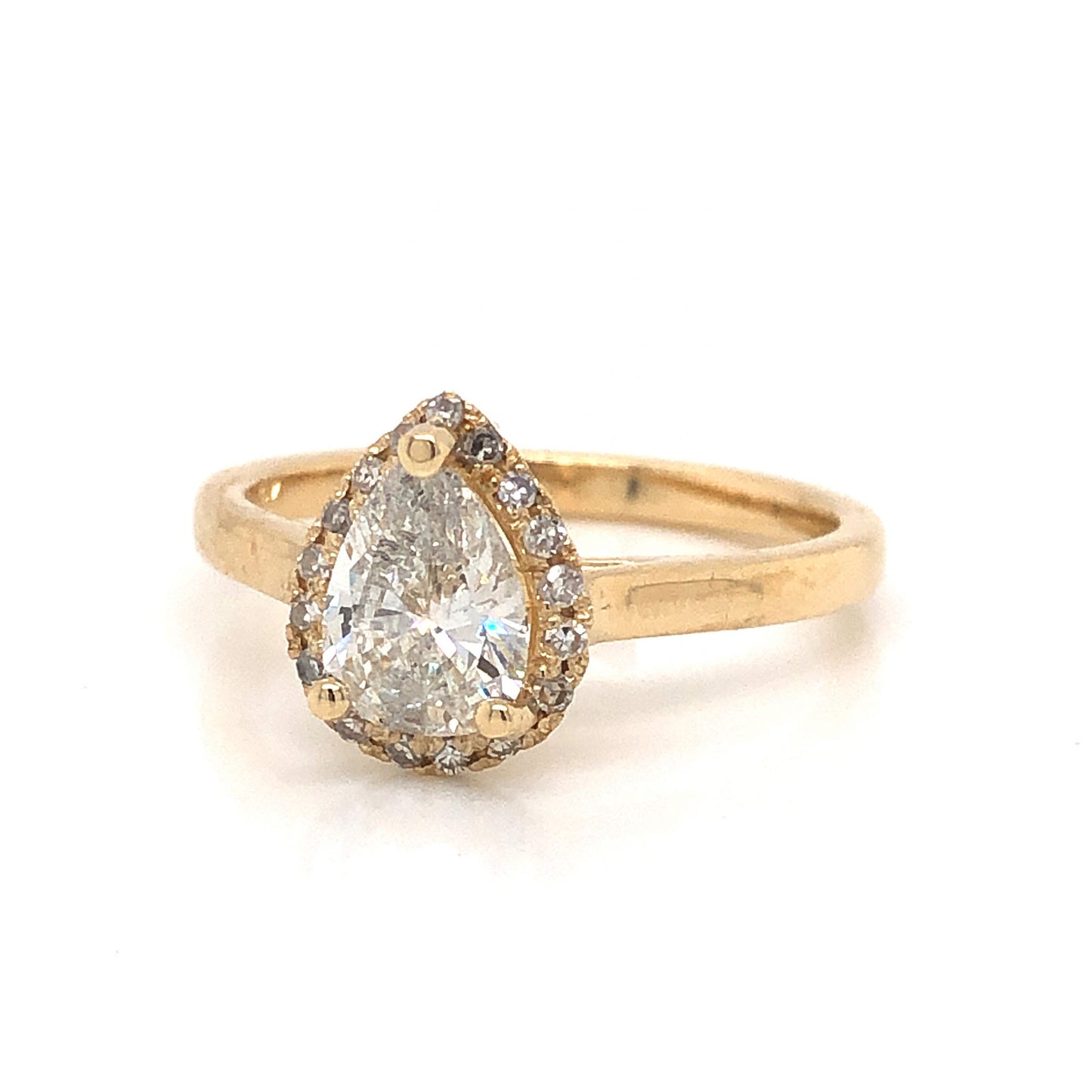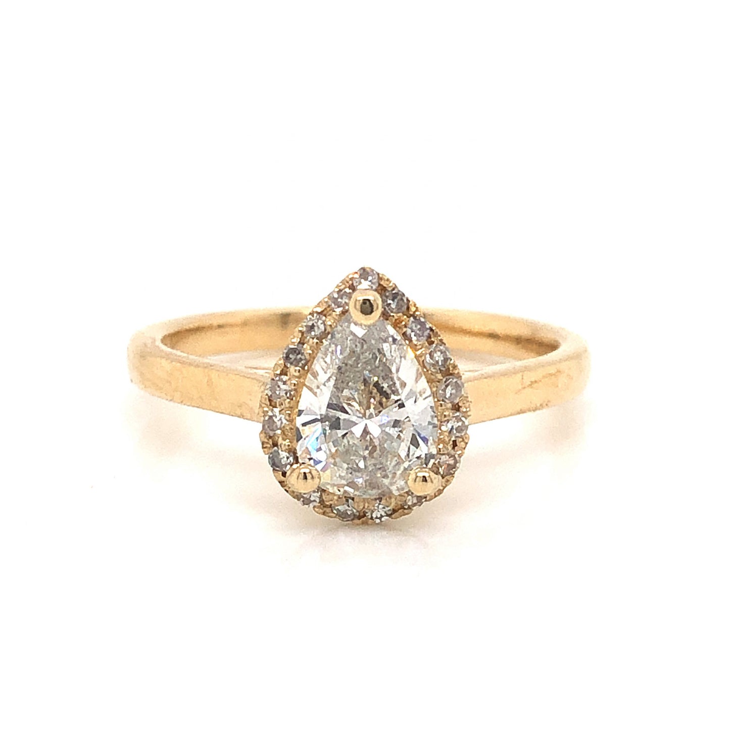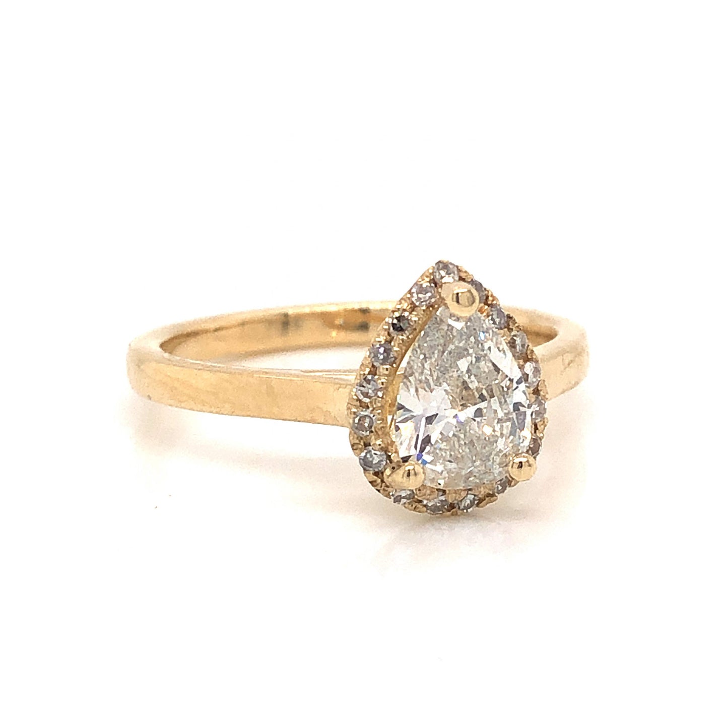 Pear Cut Diamond Halo Engagement Ring in 14k Yellow Gold