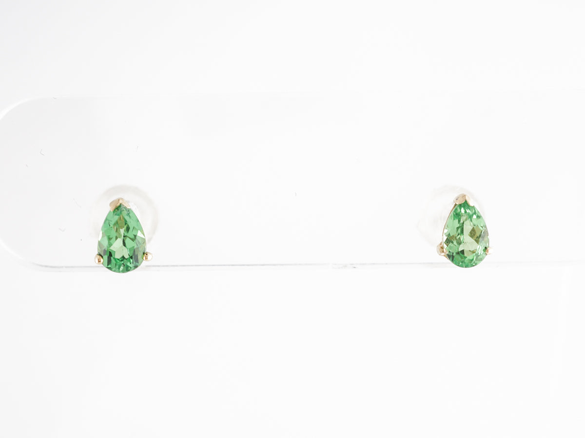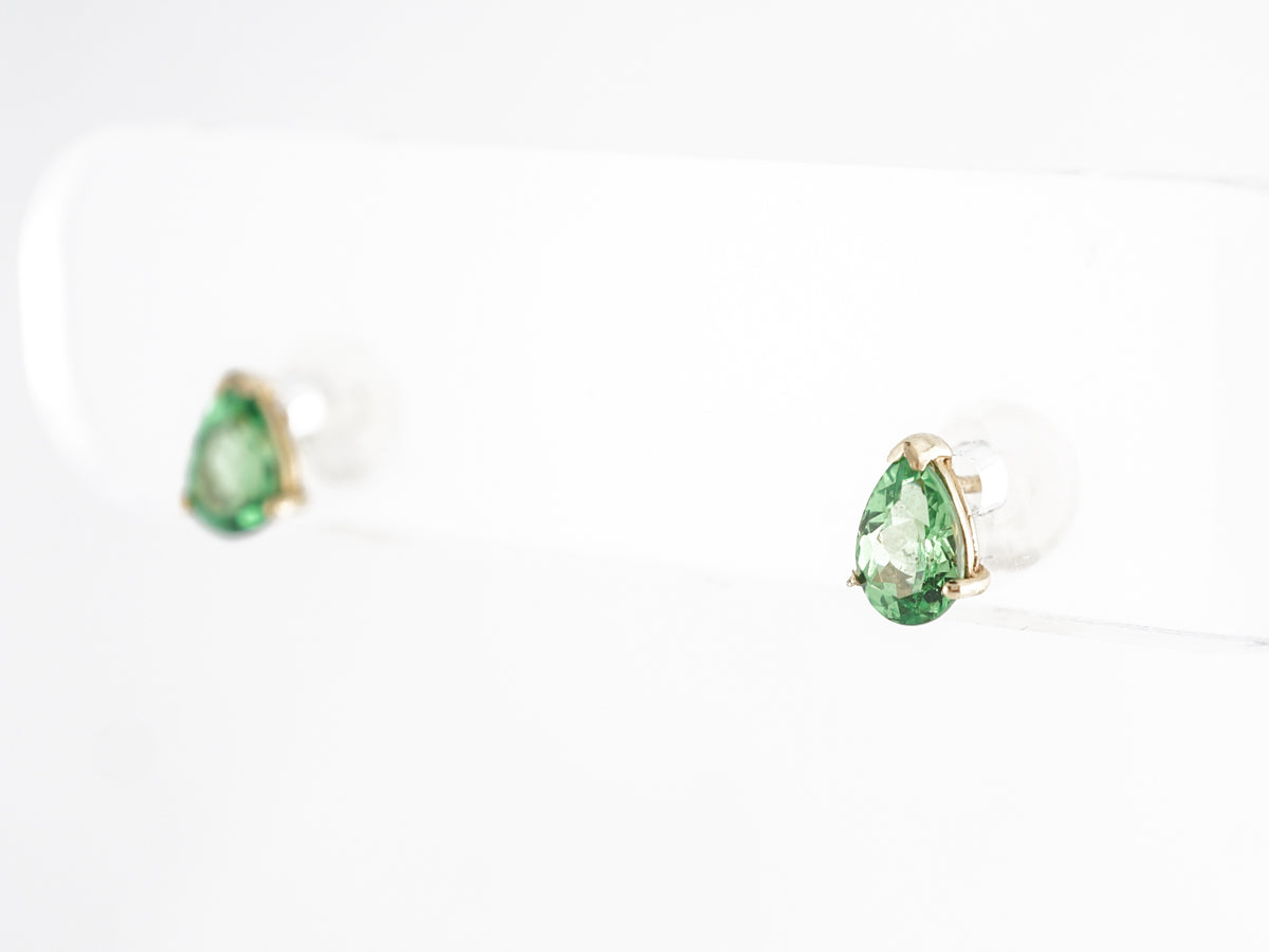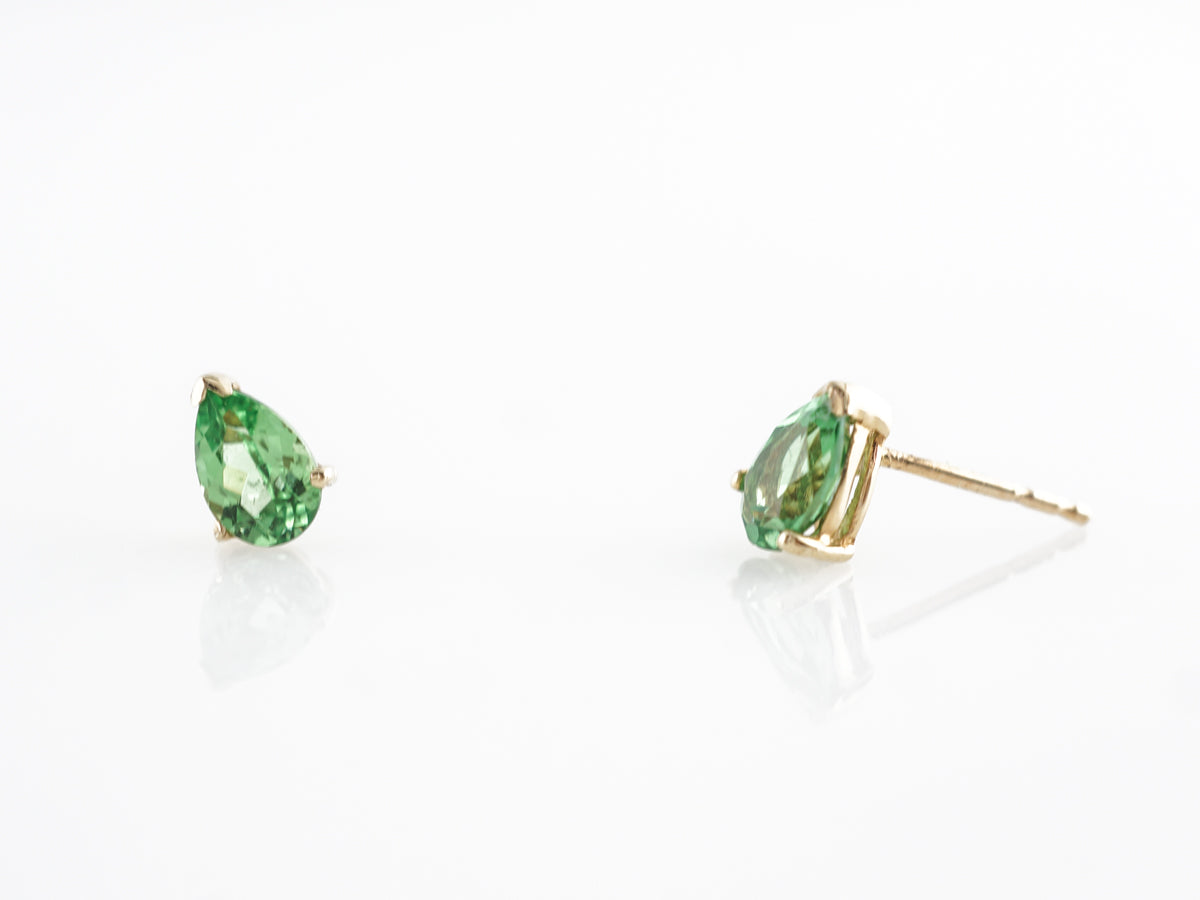 Pear Cut Tsavorite Garnet Earrings 14K Yellow Gold. These wonderful stud earrings feature .88 carats of pear cut tsavorite garnet set in 14 karat yellow gold. A perfect pair for everyday wear! With a gorgeous color that will add a brilliant splash of green to any outfit. These would make a very special gift to a loved one, or to yourself!