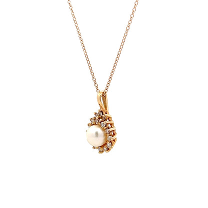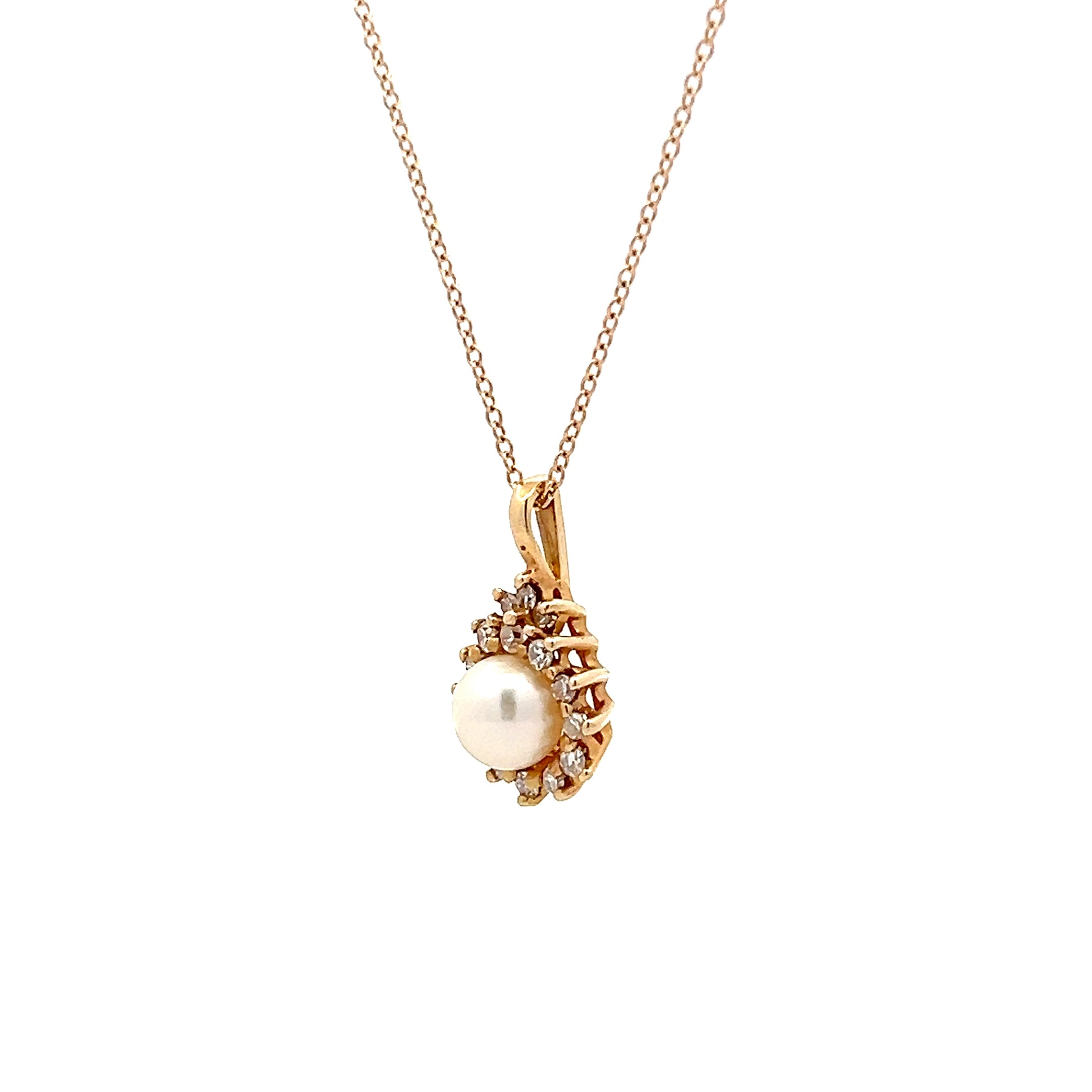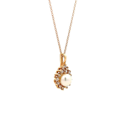Pearl & Diamond Pendant Necklace in 14k Rose Gold