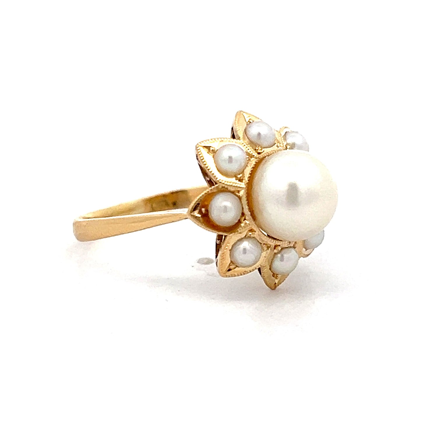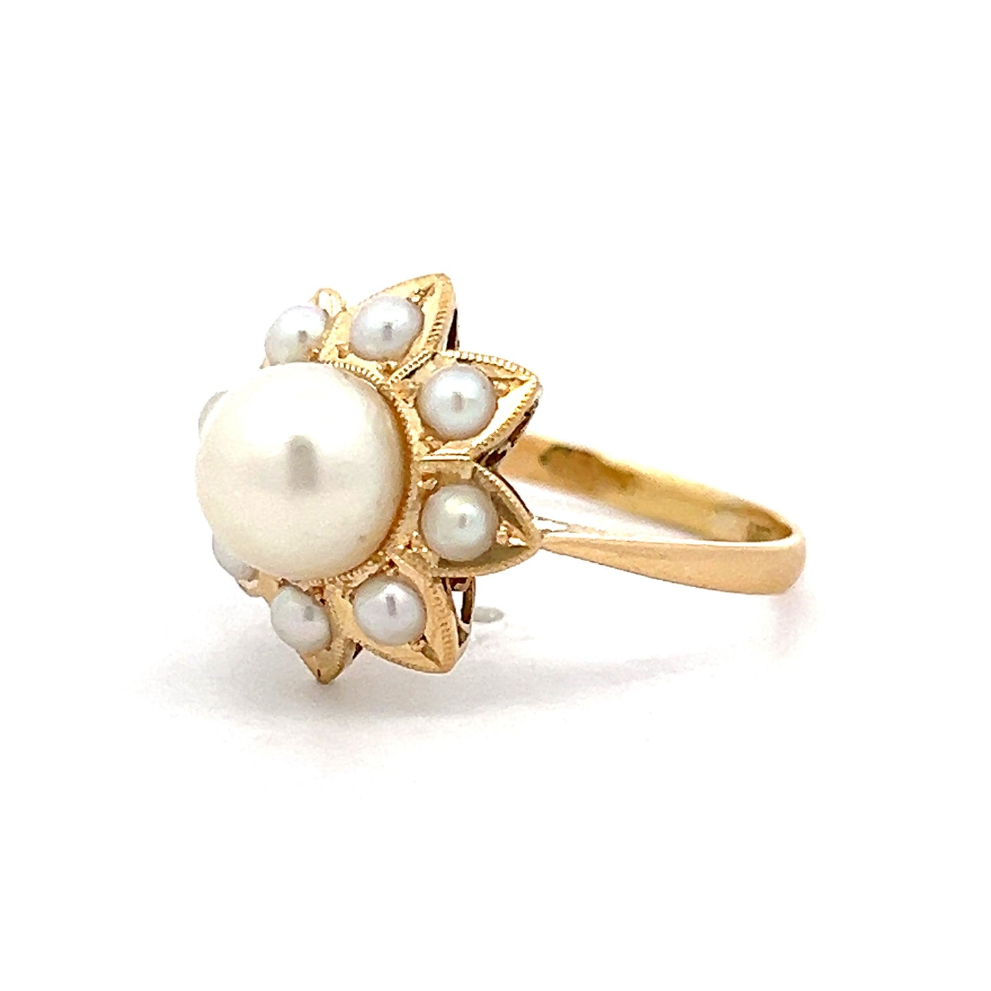 Pearl Floral Halo Cocktail Ring in 18k Yellow Gold