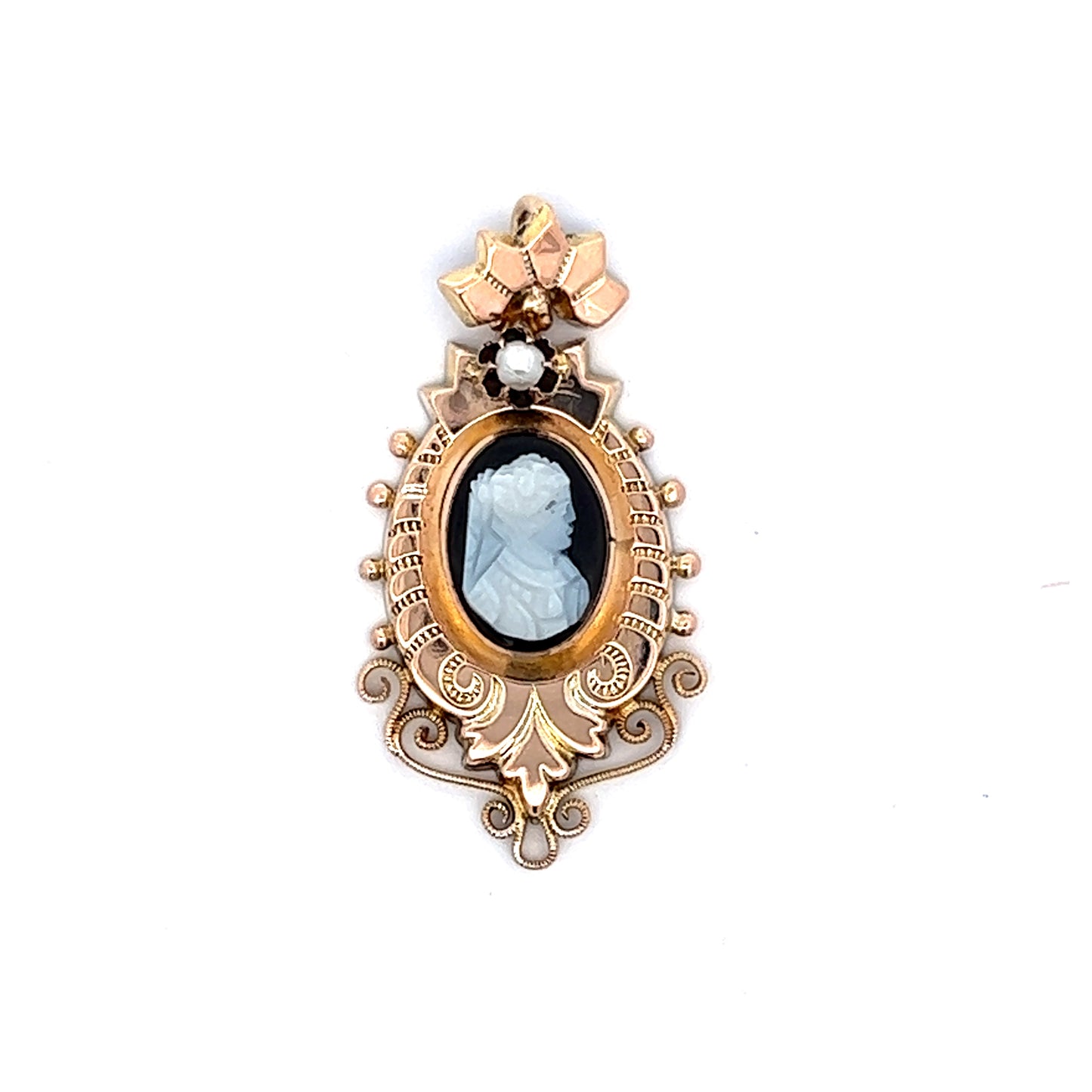 Victorian Pearl Cameo Pendant In 14K Yellow Gold