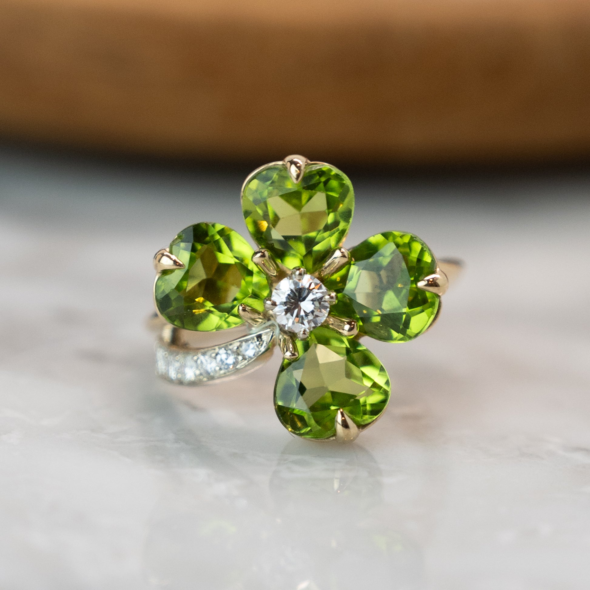 Peridot & Diamond Clover Cocktail Ring in 14k