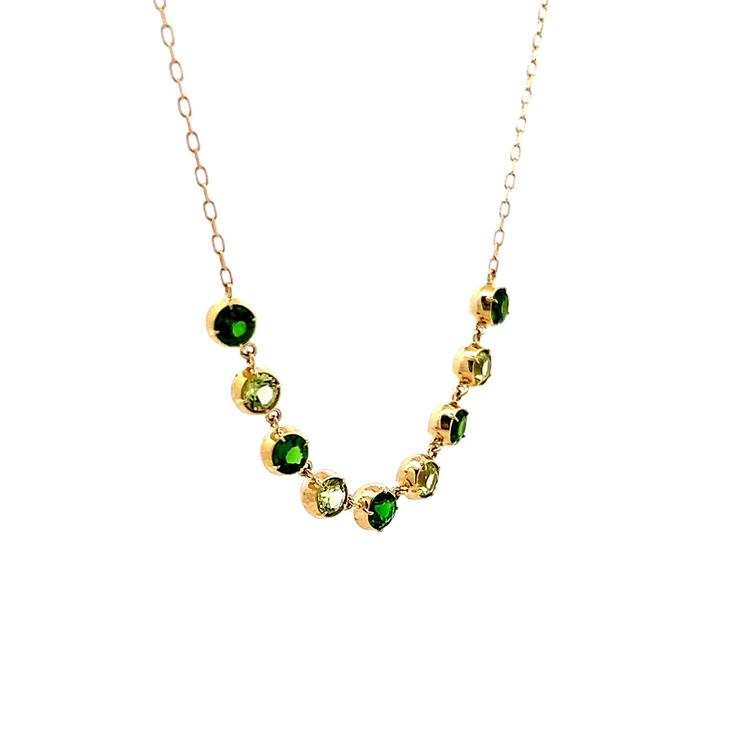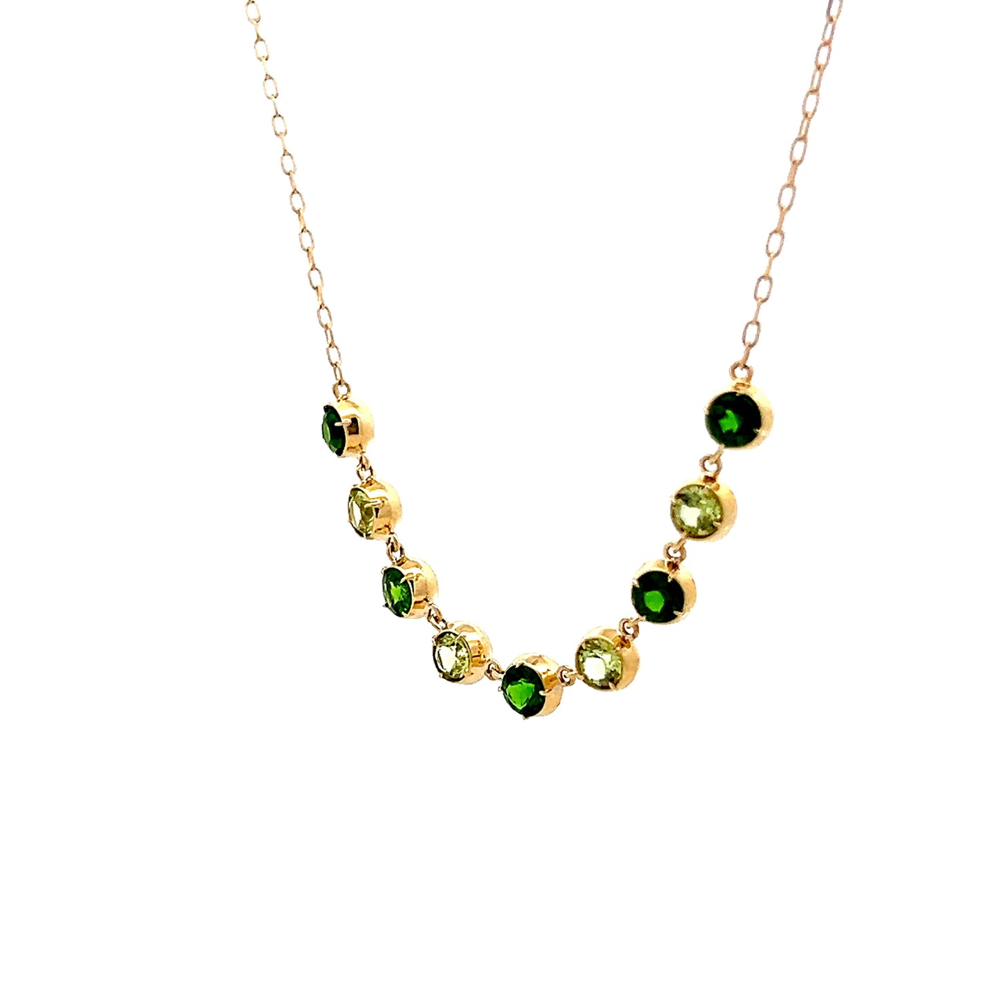 Peridot & Tsavorite Garnet Necklace in 14k Yellow Gold
