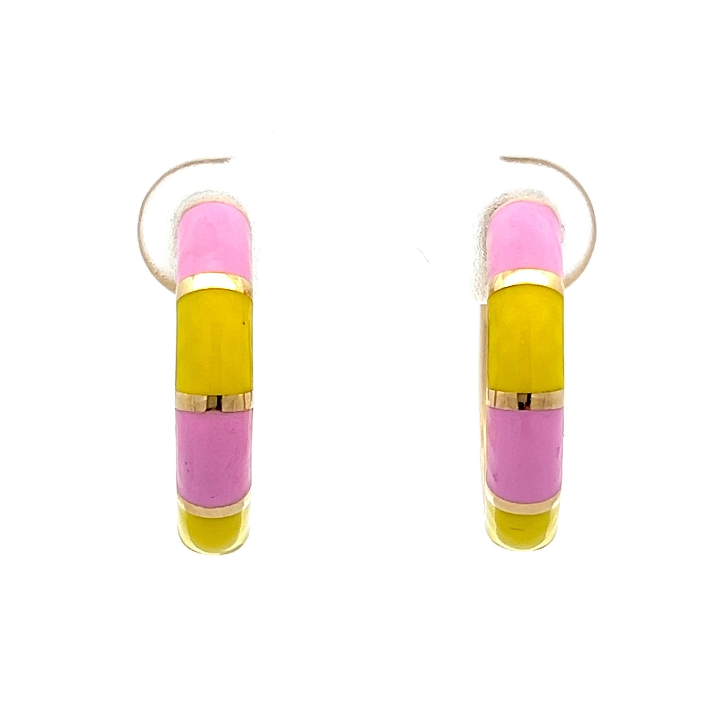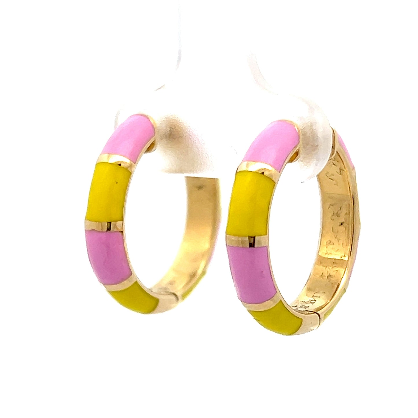 Pink & Yellow Enamel Hoop Earrings in 14k
