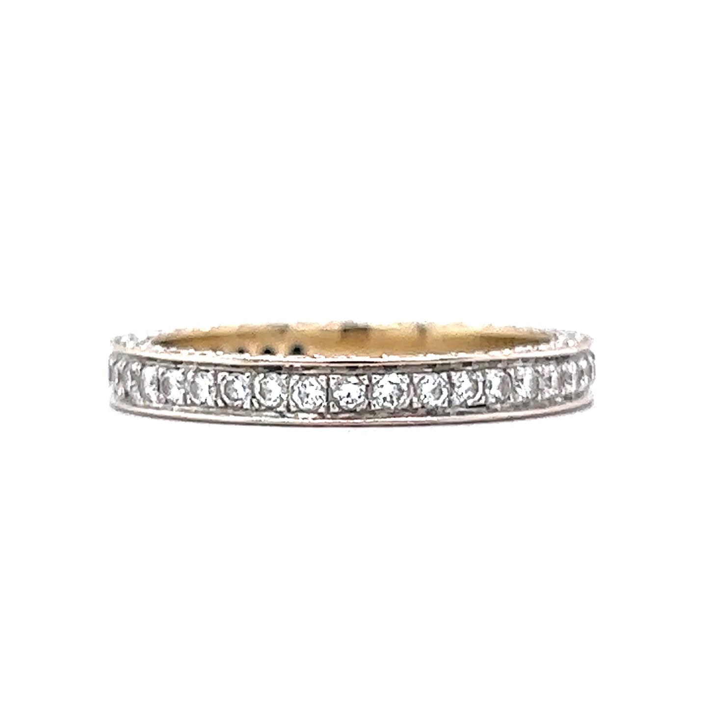 This Wedding Band is modern and timeless made of 14k white gold. The band features round brilliant diamonds running the entirety of the band and it could be worn next to an engagement ring or in a stack. Make this stunning piece of jewelry part of your beautiful story!