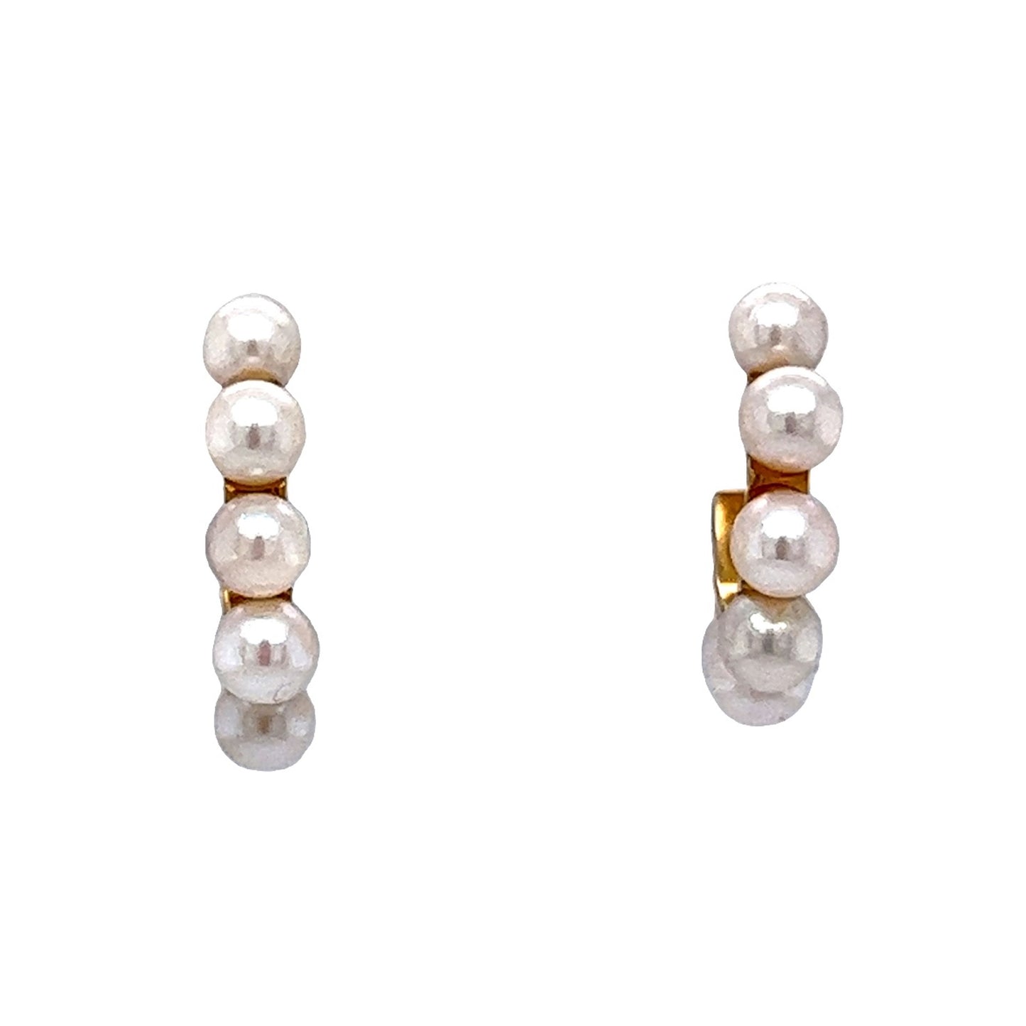 Pearl Hoop Huggie Earrings in 14k Yellow Gold