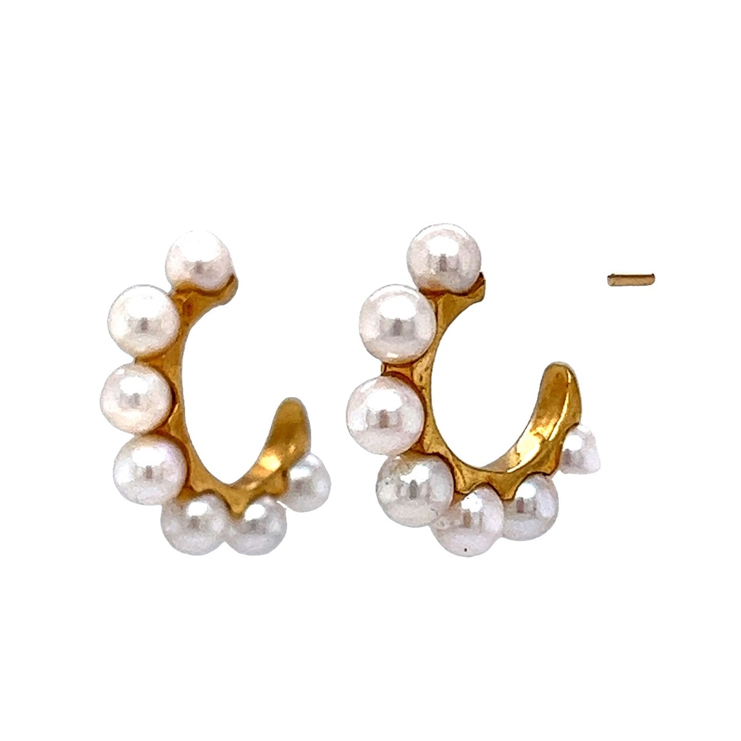 This modern hoop shape is adorned with pearls, adding a touch sophistication to your ensemble. The huggie style creates a secure and comfortable fit, but the classic hoop shape makes them versatile enough to go from day to night. The pearls, set against the yellow gold, create a subtle yet stunning effect; a timeless piece of jewelry that will become a staple in your wardrobe.