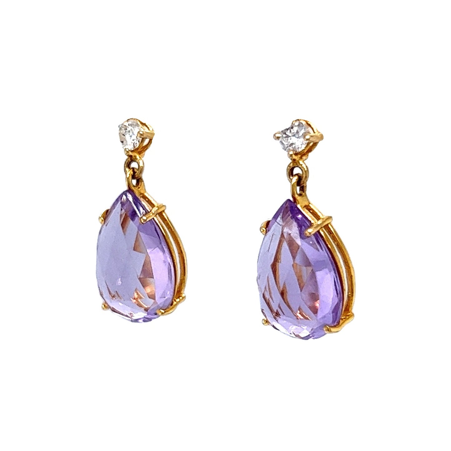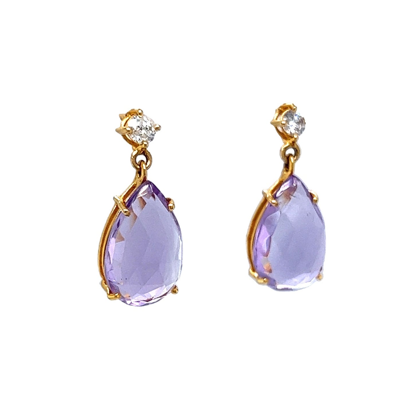 Pear Cut Amethyst Drop Earrings in 14k Yellow Gold