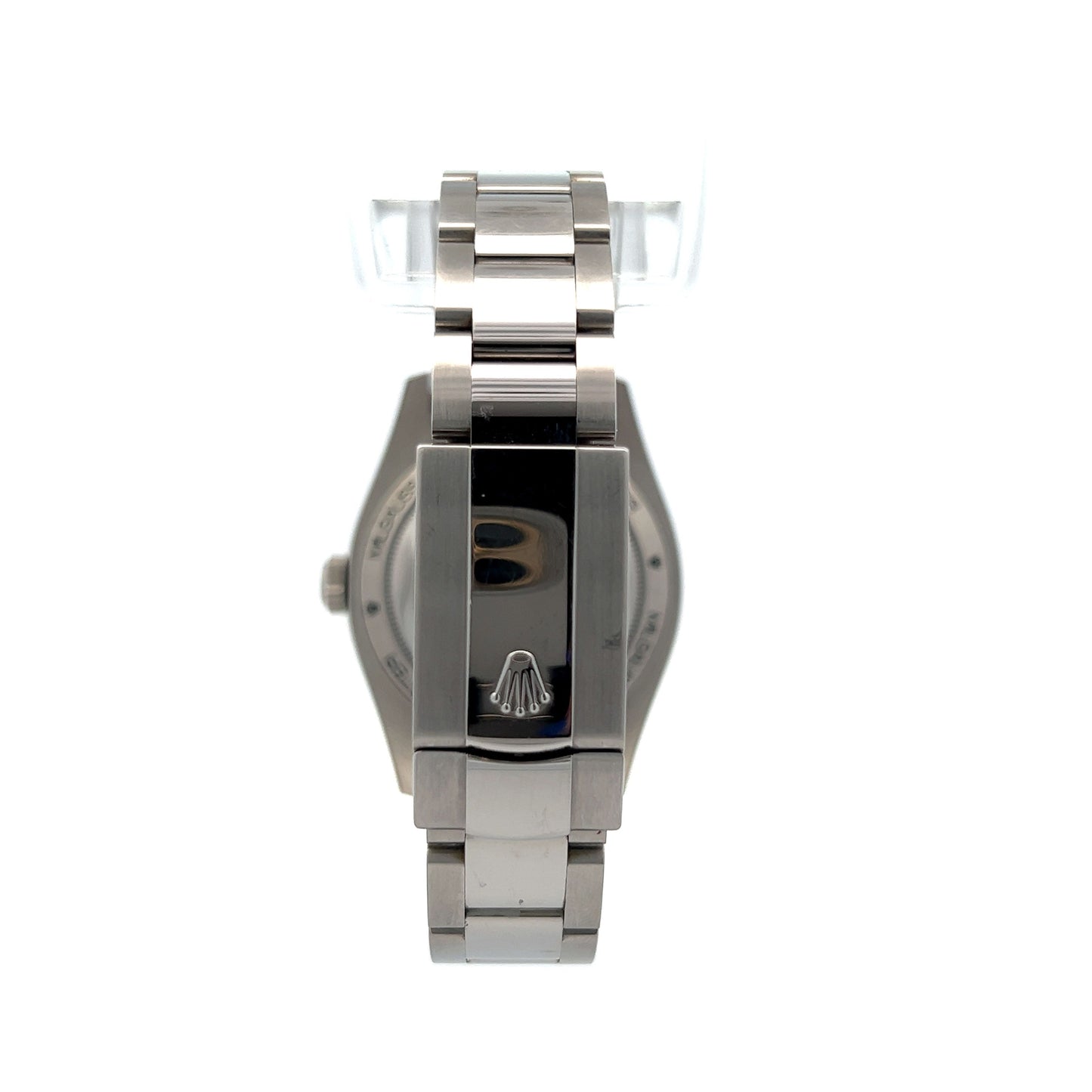 The Rolex Milgauss ref 116400GV is close to achieving cult-status with its unique feature set, remarkable anti-magnetism and status as a discontinued model. It earns its name after its resistance of up to 1,000 gauss. After a long discontinuation, Rolex re-introduced the beloved scientist's watch under ref. 116400, only to discontinue it once again in 2023. The green tint of the sapphire crystal adds a mesmerizing glow to the watch that many collectors desire. The ref. 116400 also notably features a striking orange lightning bolt hand on the dial. Serial 547G7849.