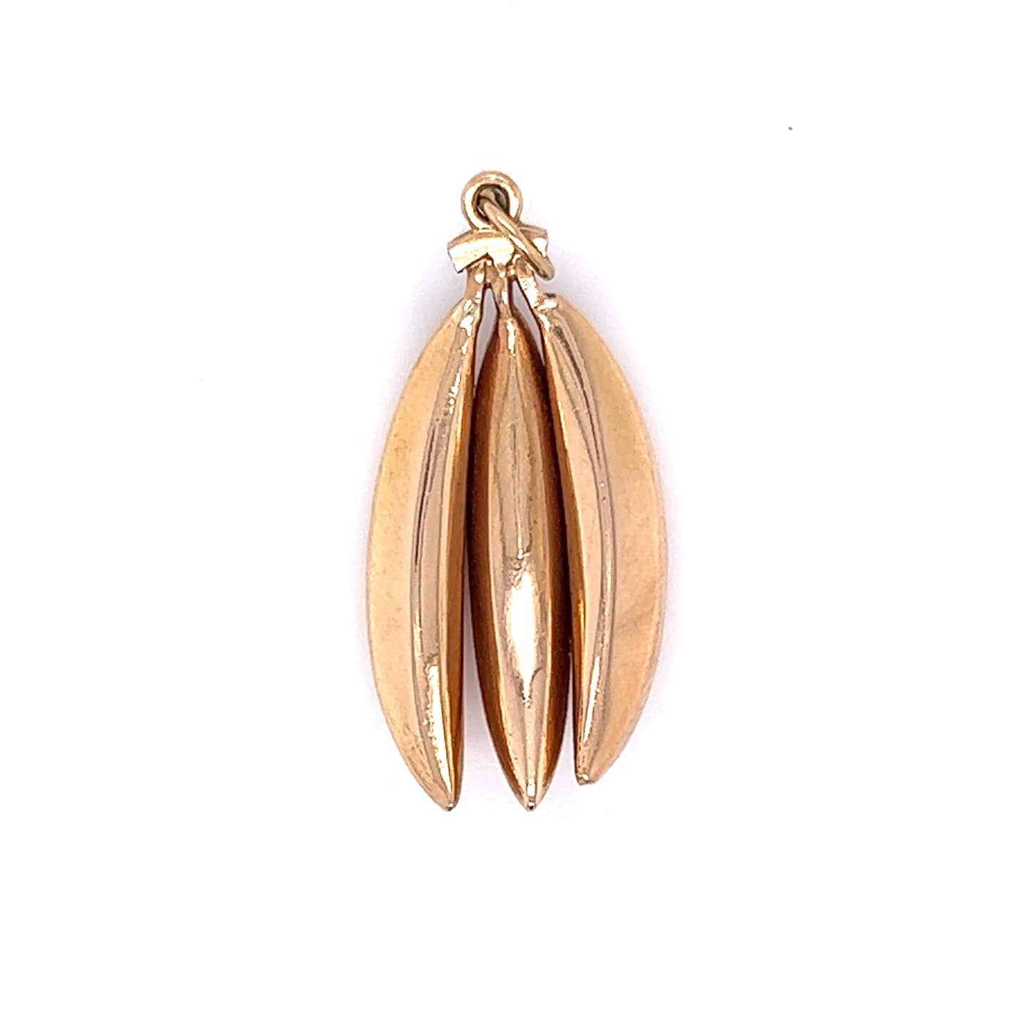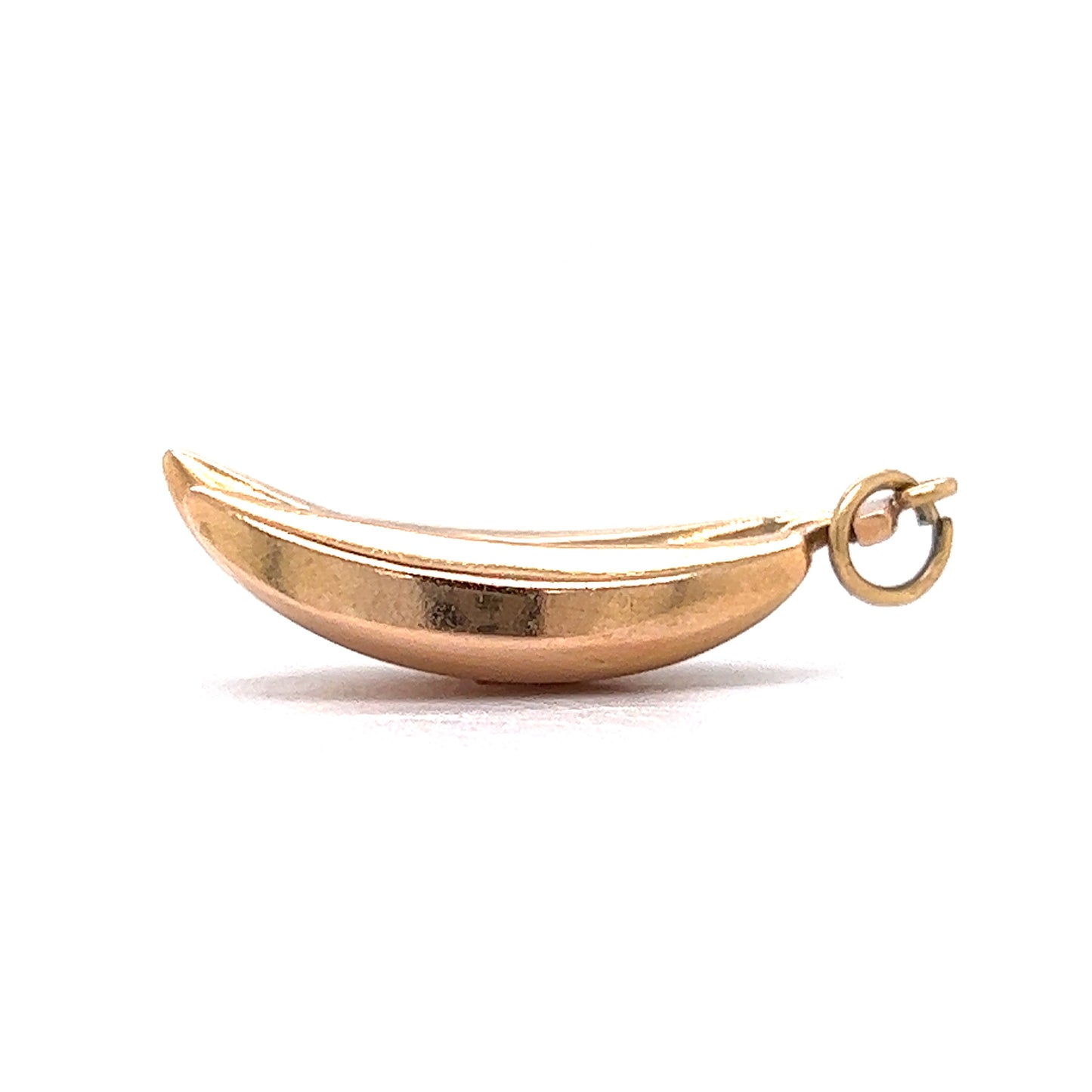 This 14k rose gold charm is perfect for any modern wardrobe. Crafted with a unique banana design, this charm is unique and interesting. Paired with any chain, it's easy to add a touch of uniqueness to any outfit.