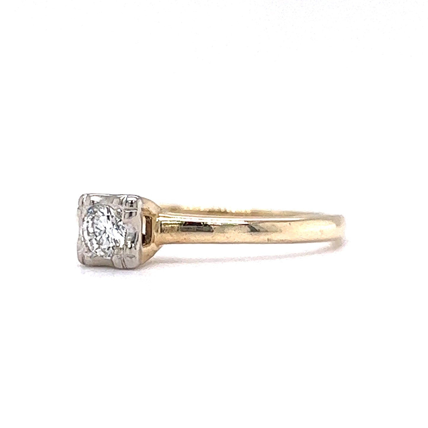 .16 Vintage Retro Diamond Solitaire Engagement Ring in 14k Yellow & White Gold