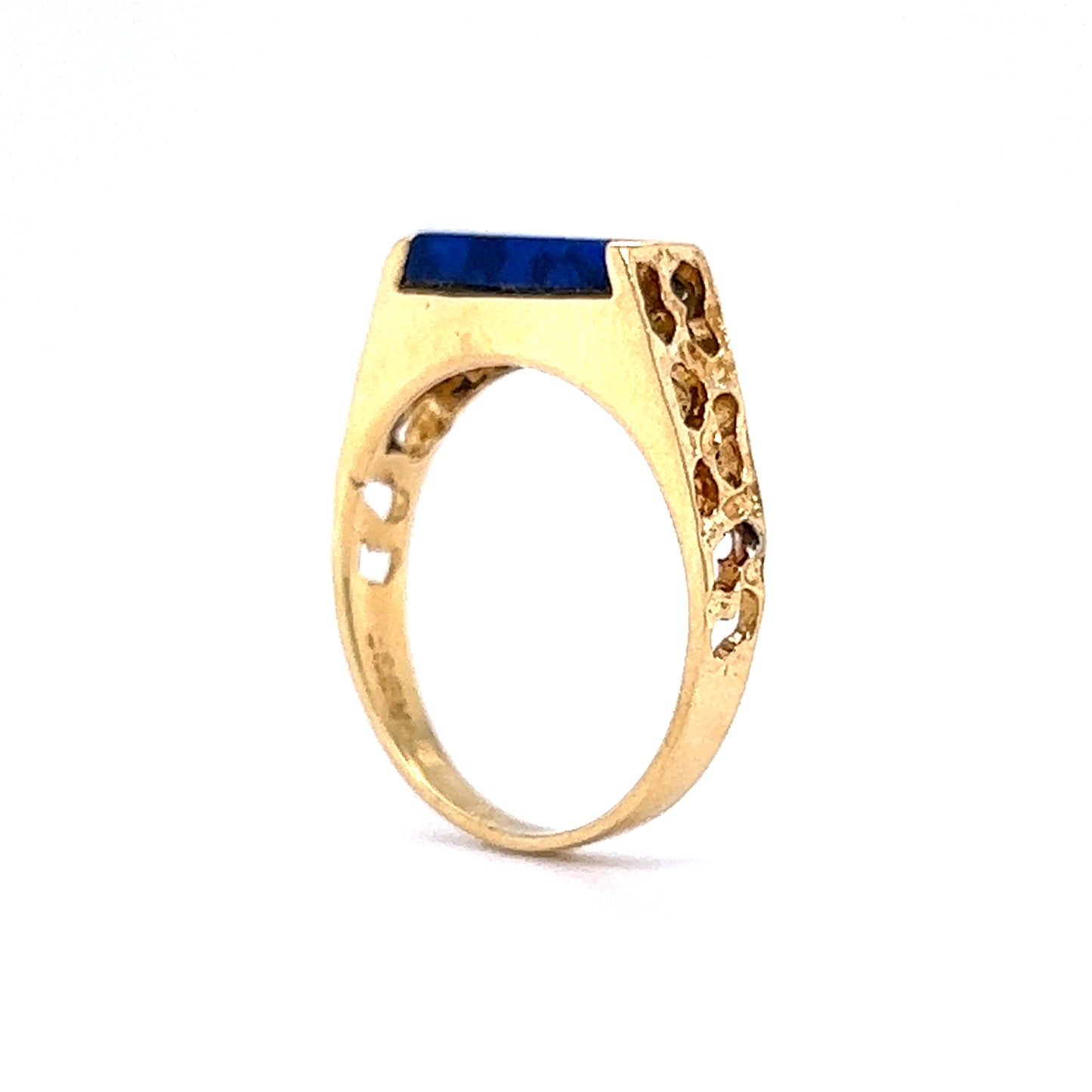 Mid-Century Lapis Ring with Organic Texture in 18k Yellow Gold