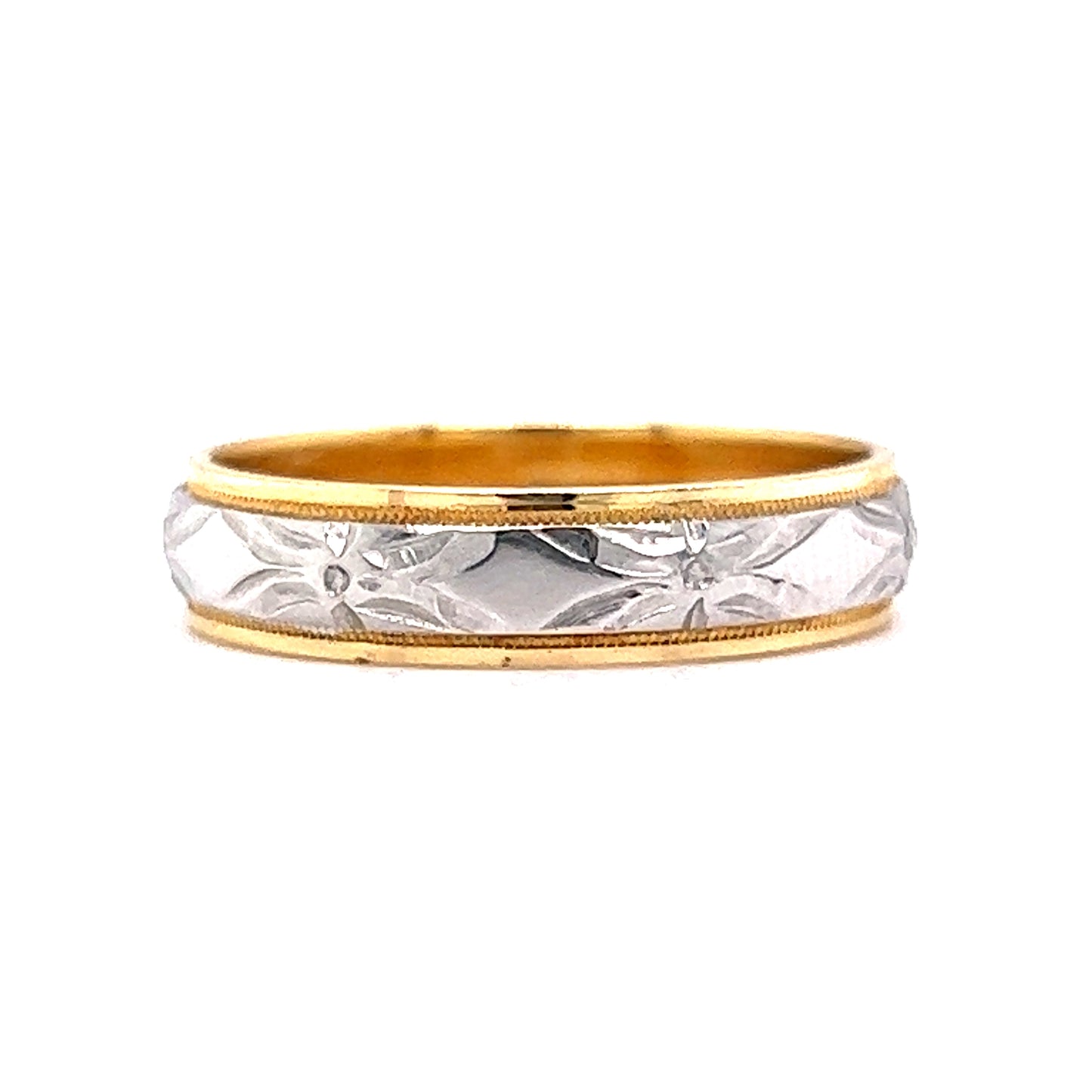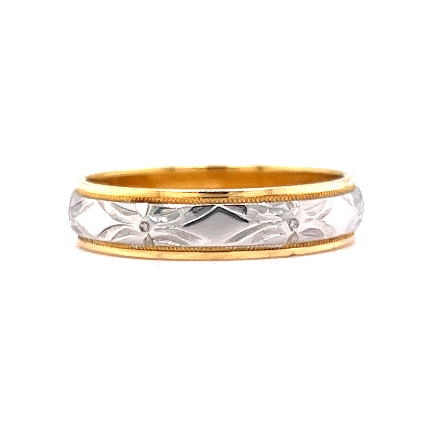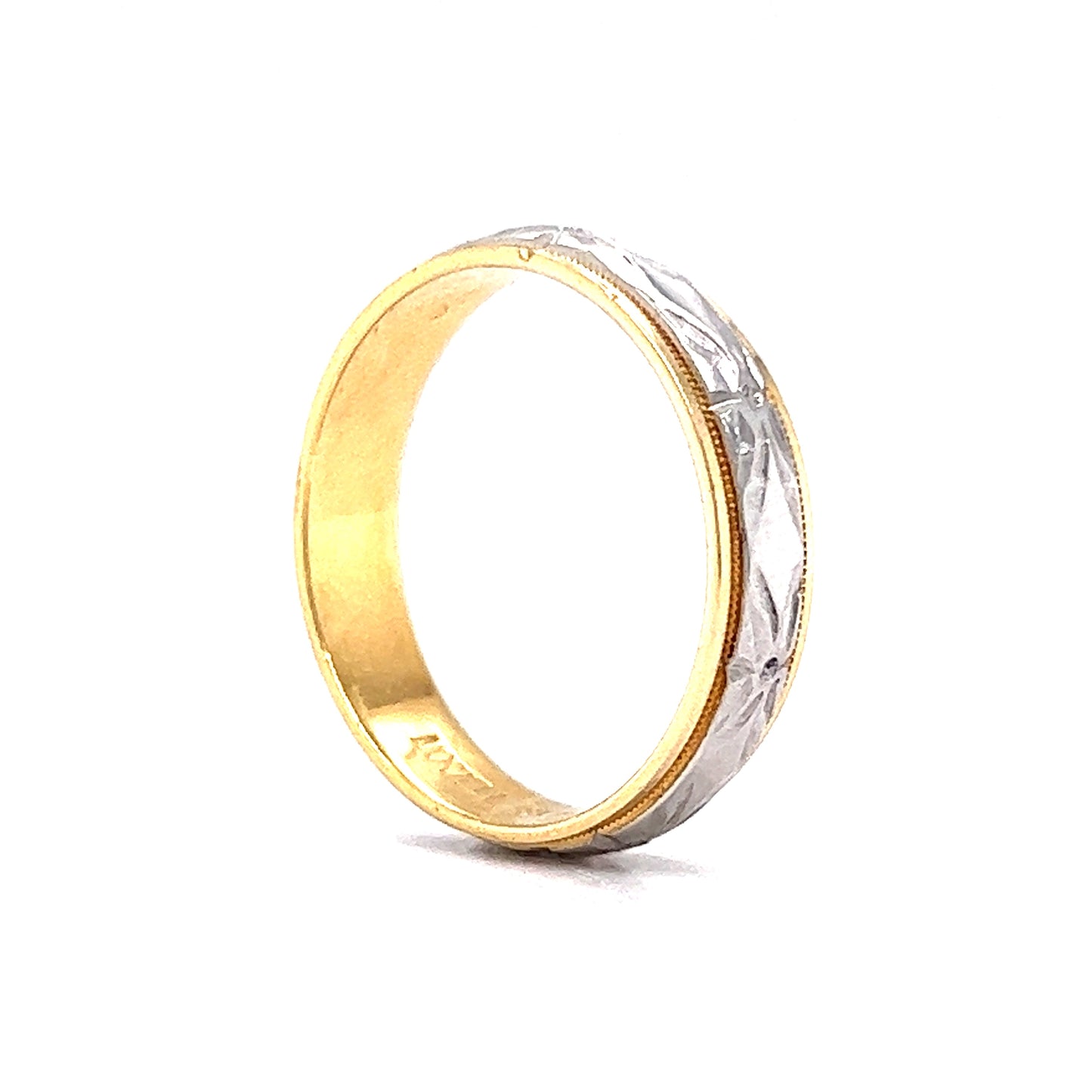 Men's Art Deco Inspired Engraved Wedding Band in Platinum & 18k