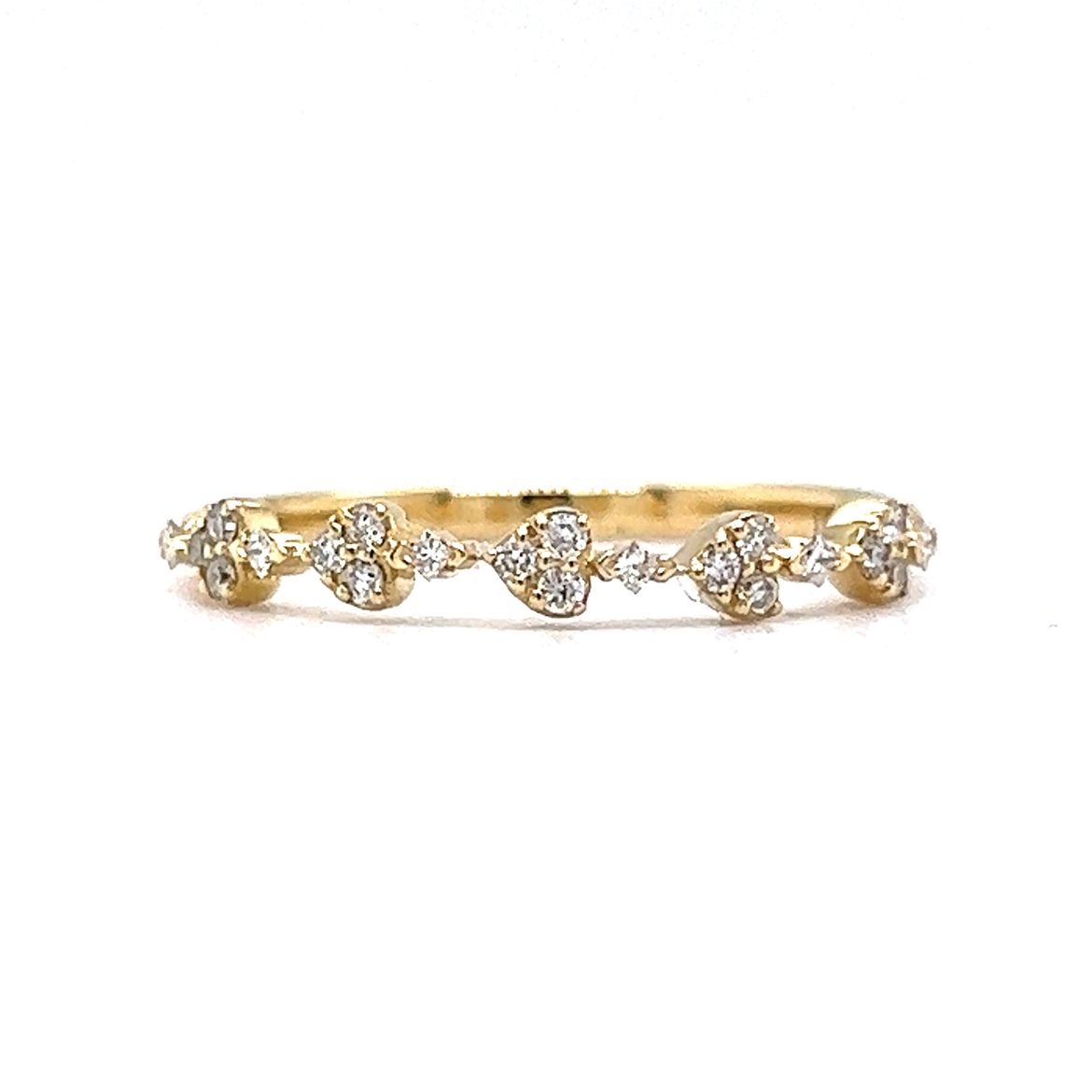 This modern ring features beautiful pave and stacking design, perfect for those who appreciate a contemporary style. The heart-shaped stations adds a touch of romance to this already beautiful wedding band. Whether you are looking for a wedding band to commemorate your special day, or simply want to add a touch of elegance to your stack, this ring is the perfect choice. With its exquisite design, high-quality materials, and stunning accents, it is sure to be treasured for years to come!