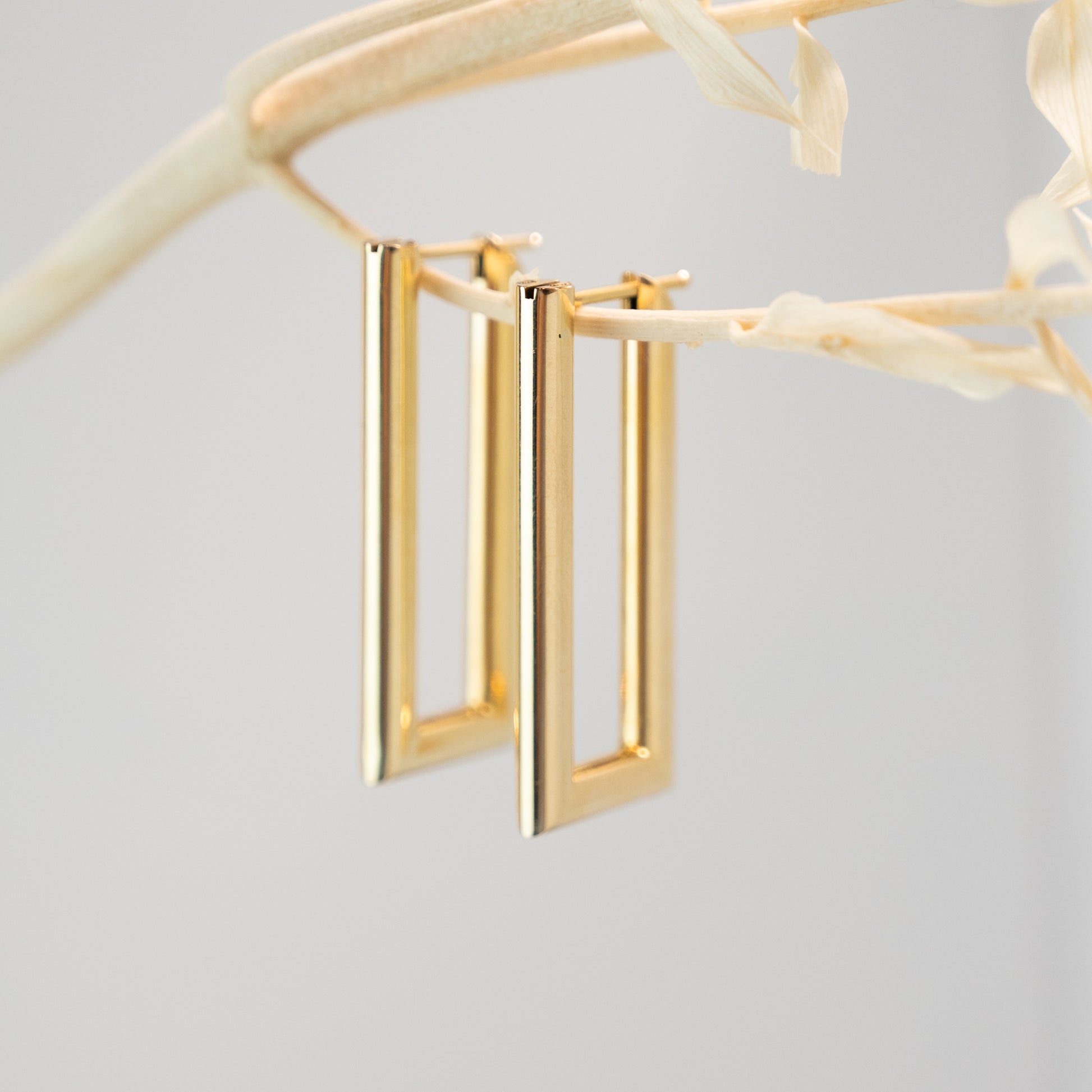 Rectangular Hoop Earrings in 14k Yellow Gold