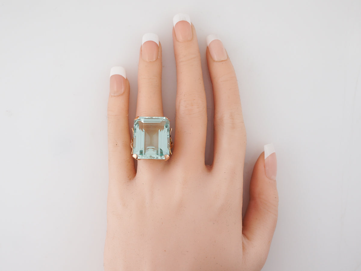 Retro Aquamarine Cocktail Ring 41 Carats in Rose Gold.