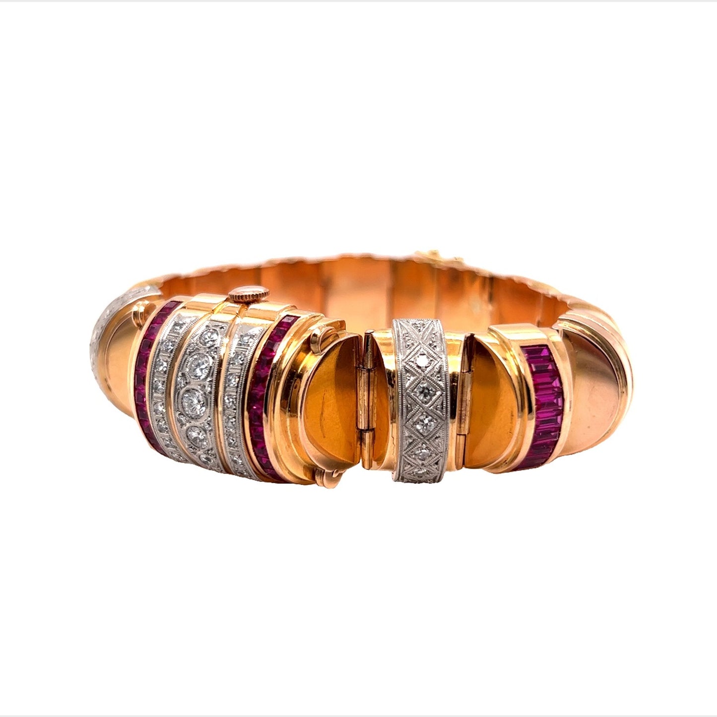 Retro Omega Diamond & Ruby Watch Bracelet in 18k Rose Gold