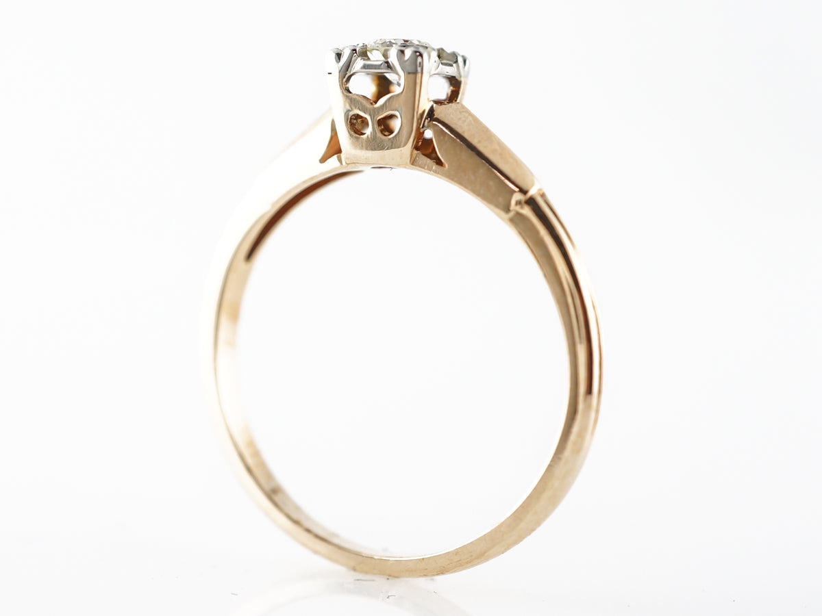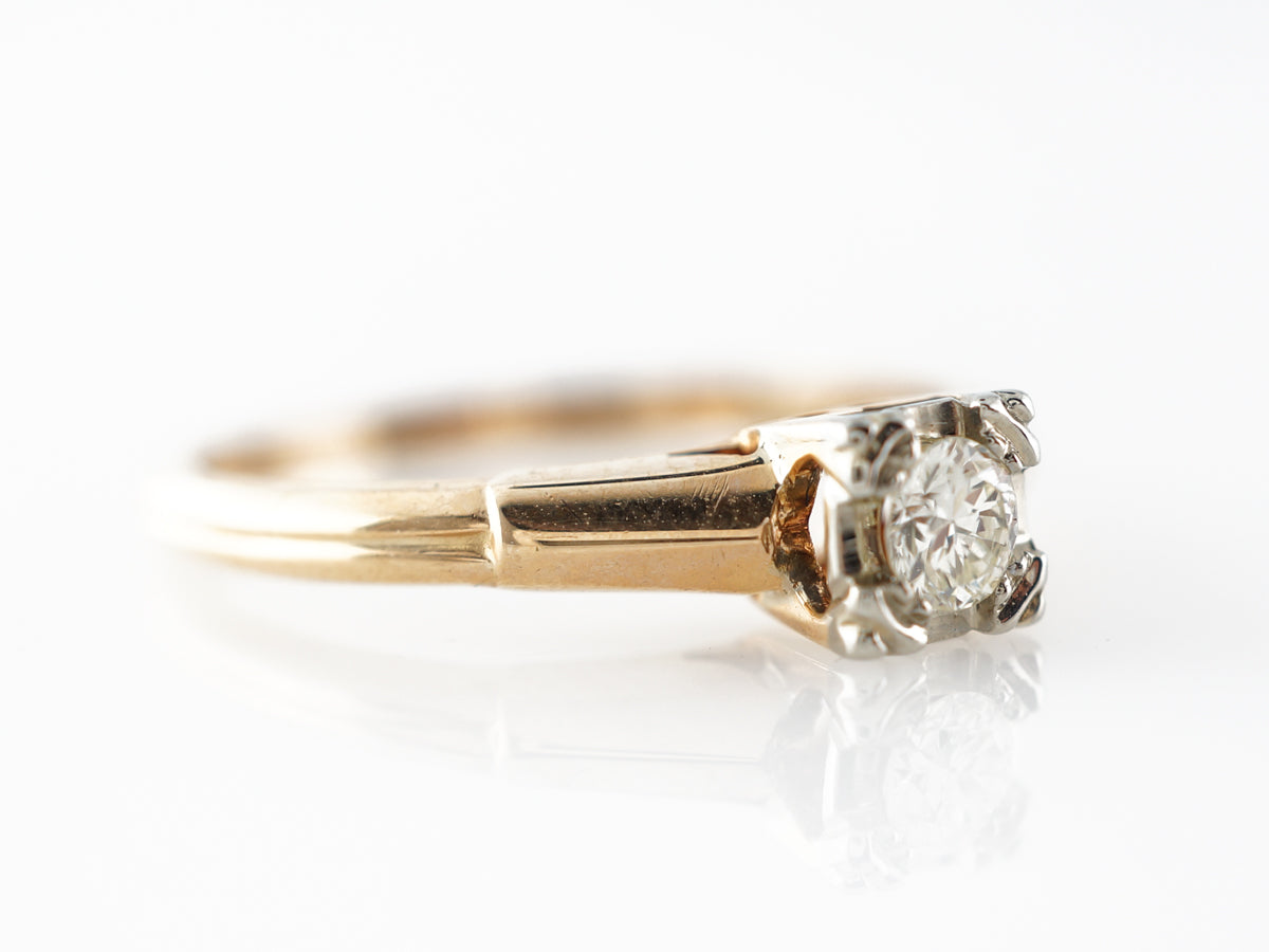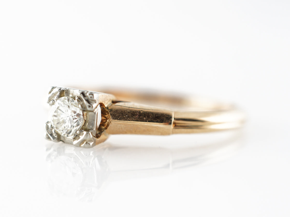 Retro Diamond Solitaire Engagement Ring in Yellow & White Gold