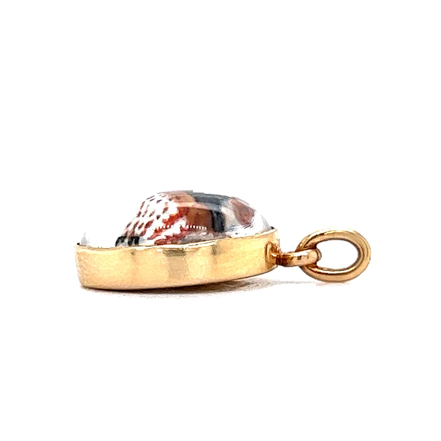 Retro vintage charm! This Retro Hand Painted Grouse Pendant features a colorful red mallard design. The hand painted animal motif is a work of art. The glass pendant is dynamic and set in a secure bezel. Finished in polished 14 karat yellow gold. Pair with a yellow gold chain necklace to complete the look!