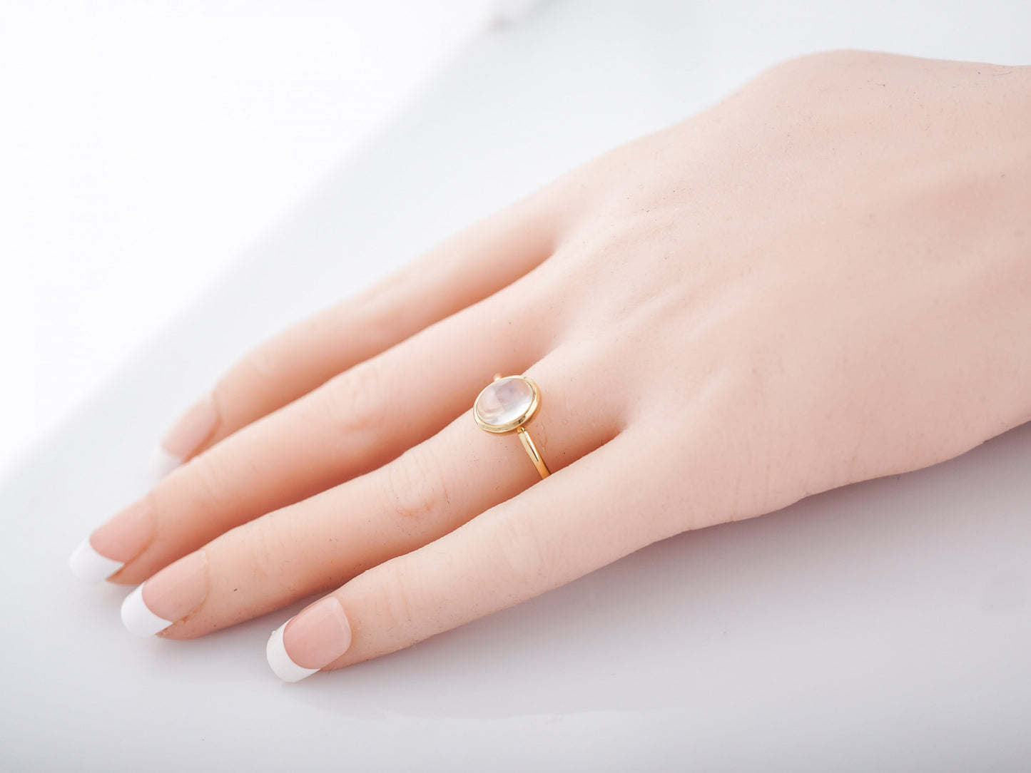 Right Hand Ring Modern 1.56 Oval Cabochon Moonstone in 18K Yellow Gold