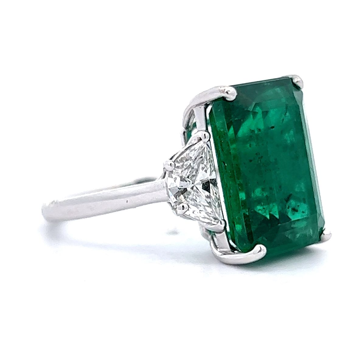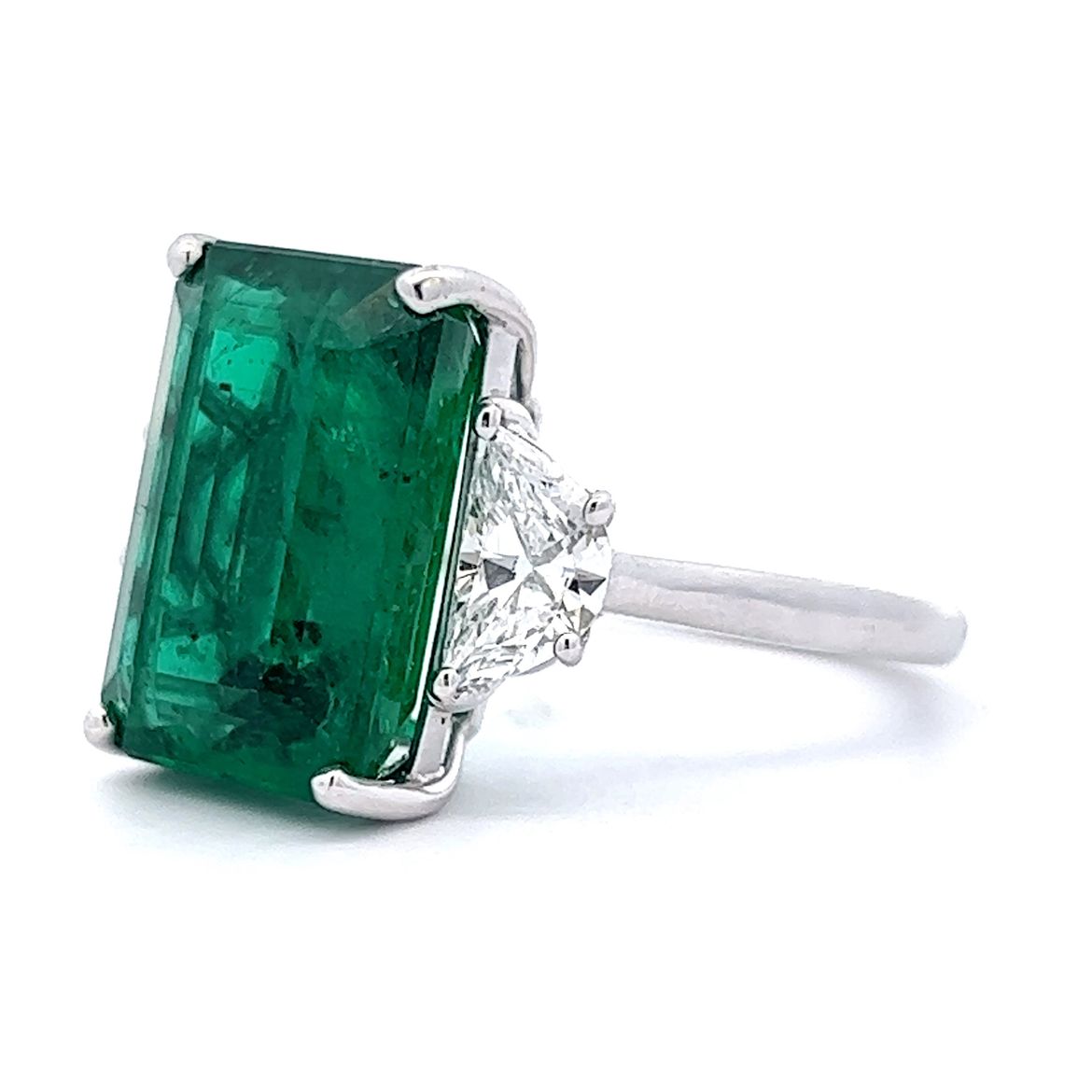 10.02 Octagonal Step Cut Emerald & Diamond Ring in 14k White Gold
