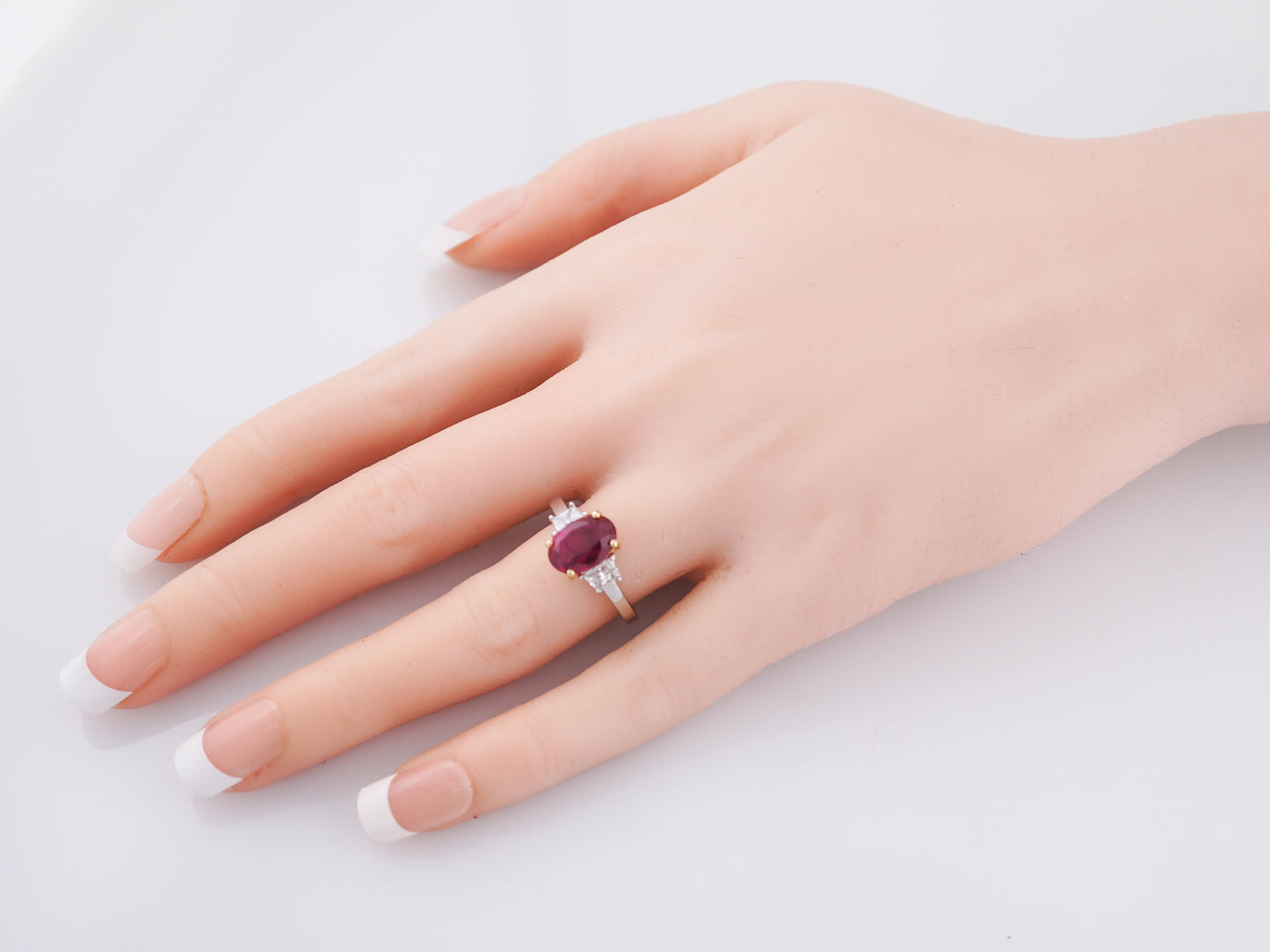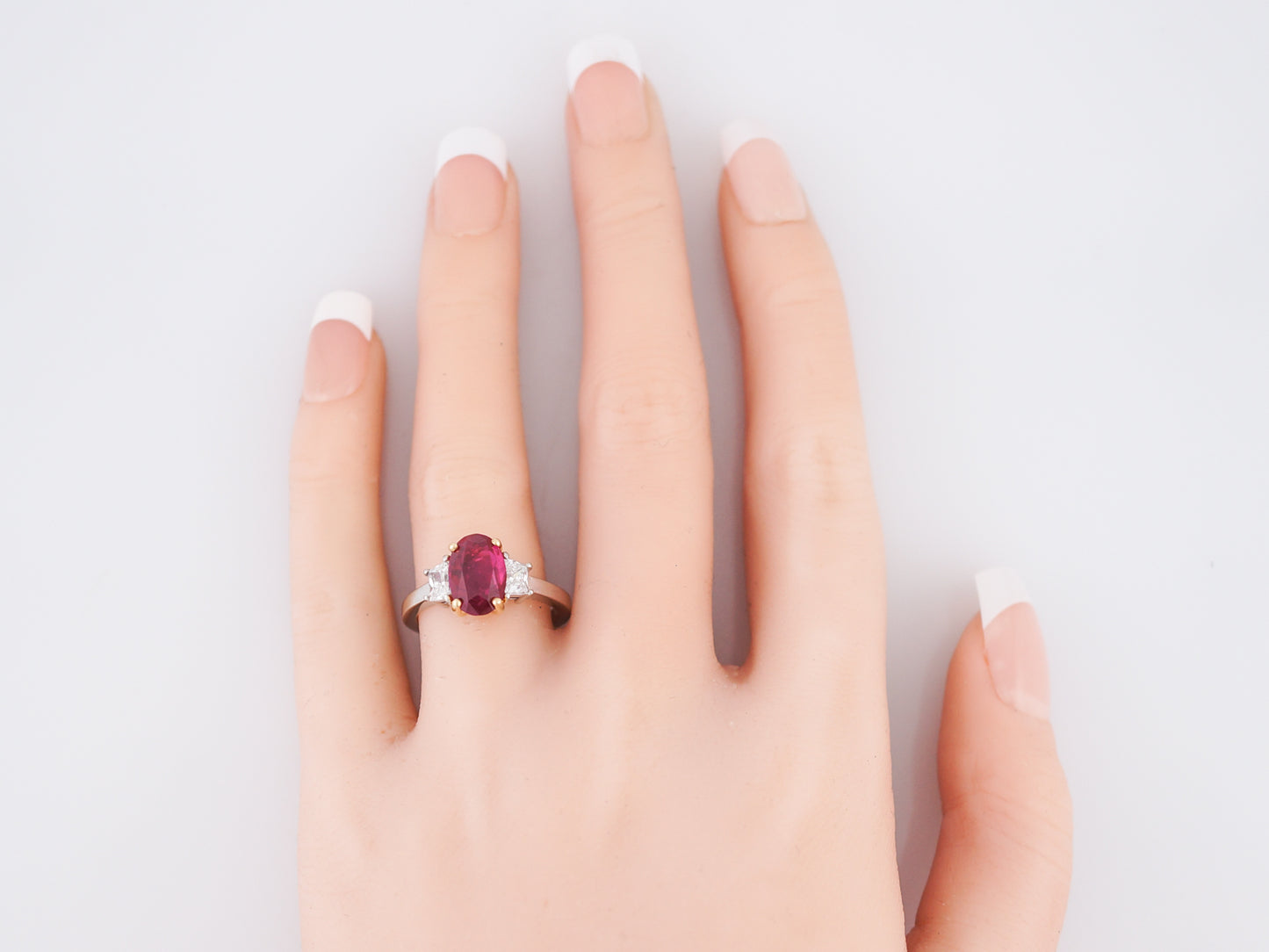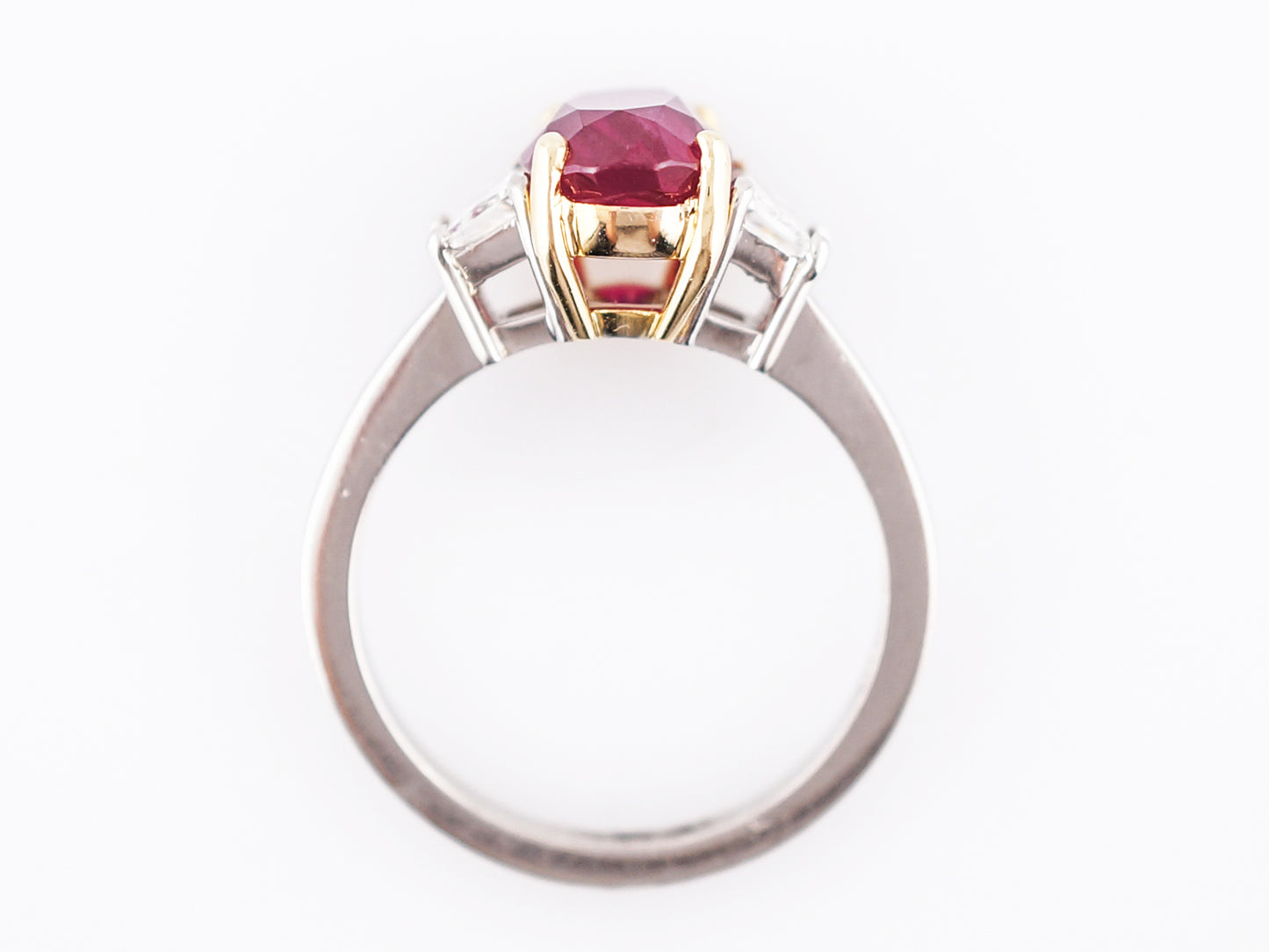 Right Hand Ring Modern 2.97 GIA Oval Cut Ruby in Platinum & 18K Yellow Gold