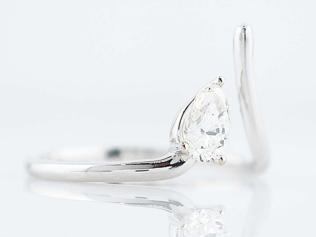 Right Hand Ring Modern .51 Pear Cut Diamond in 14k White Gold