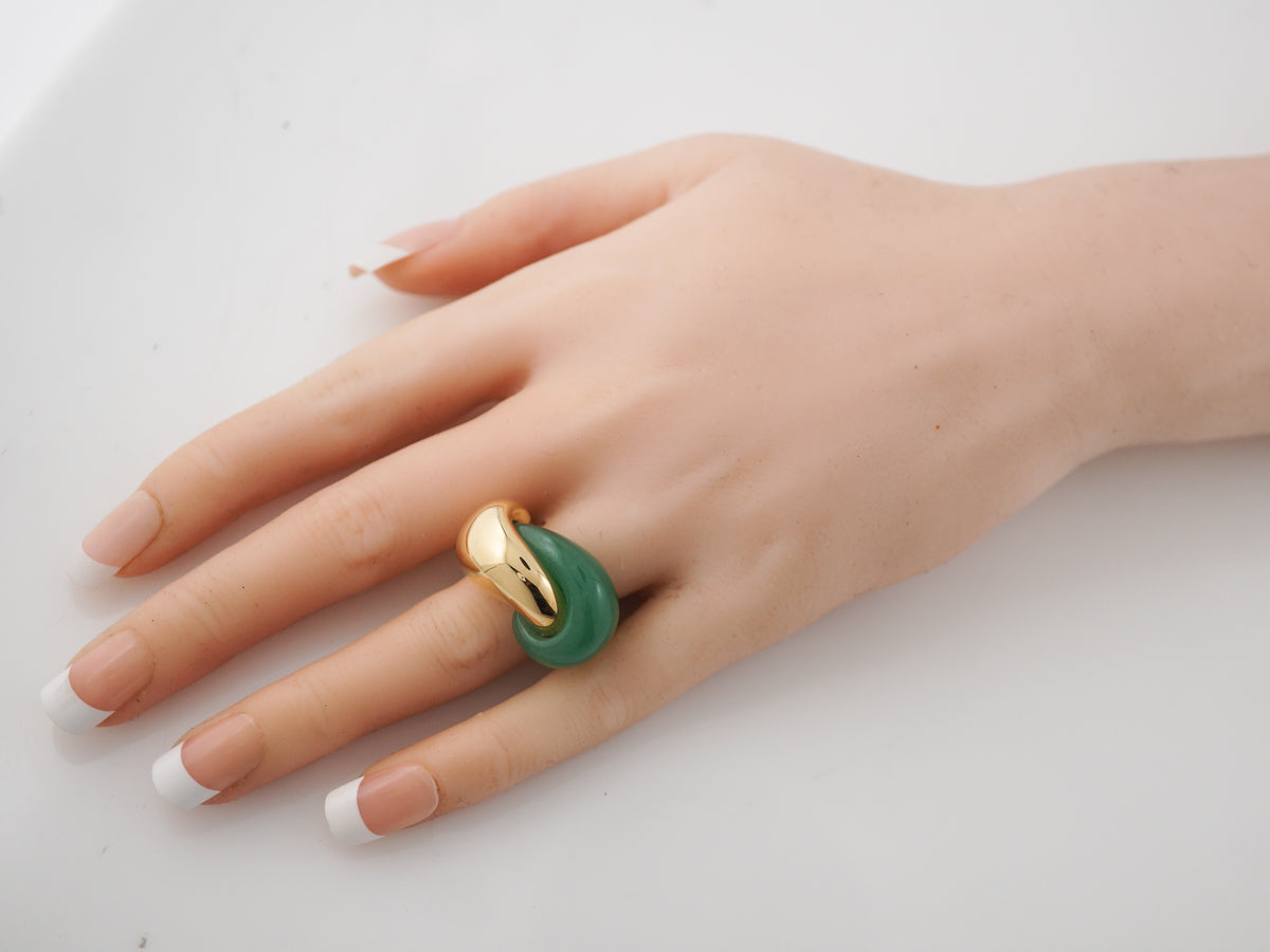***RTV11/23***Right Hand Ring Modern Seaman Schepps Green Aventurine Quartz in 18k Yellow Gold