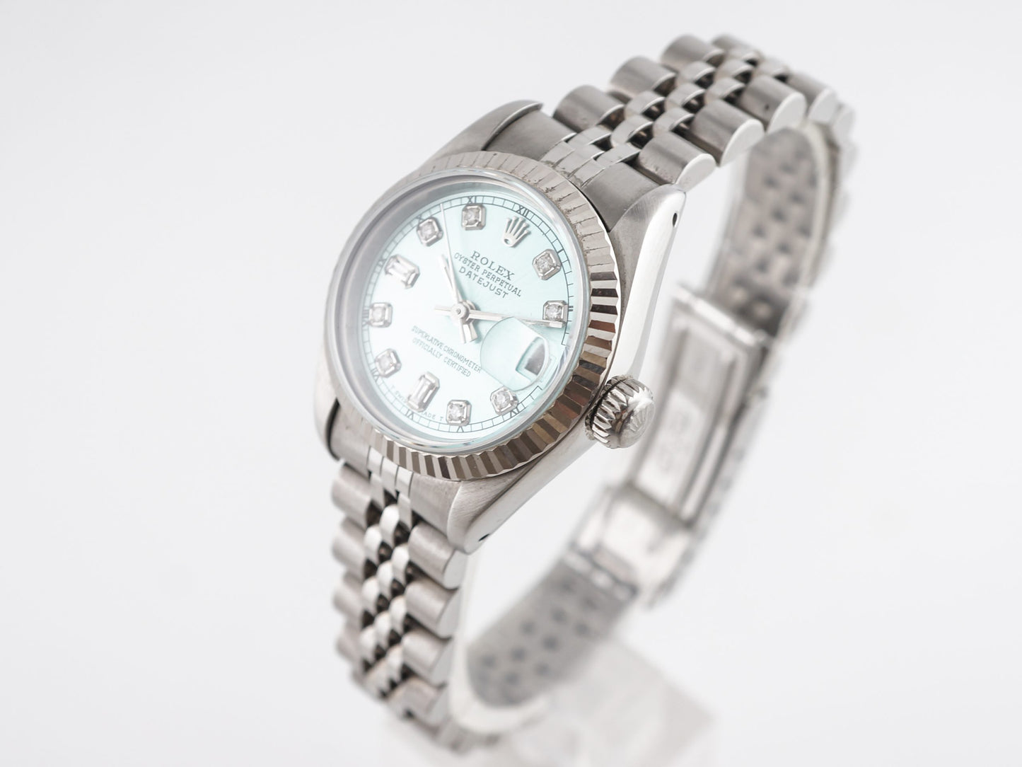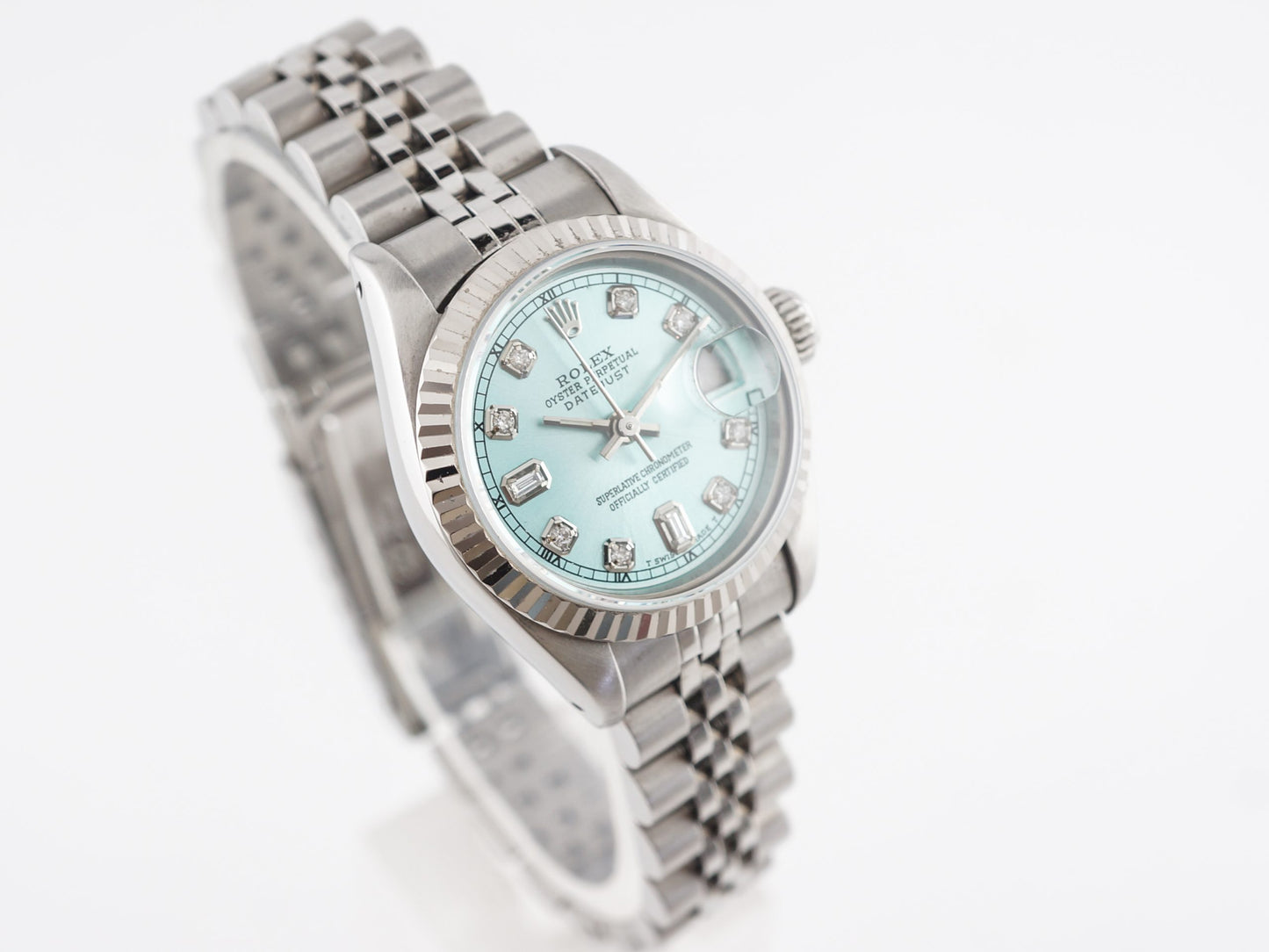Rolex Datejust w/ Diamond Dial in Stainless Steel. Rolex datejusts are as classic as it gets. These watches are wonderful for daily wear and the two tone look of this watch makes it even more versatile. This watch is automatic and has diamonds in the dial, is pre-owned, and has been serviced. This watch does not come with box and papers and is priced accordingly.