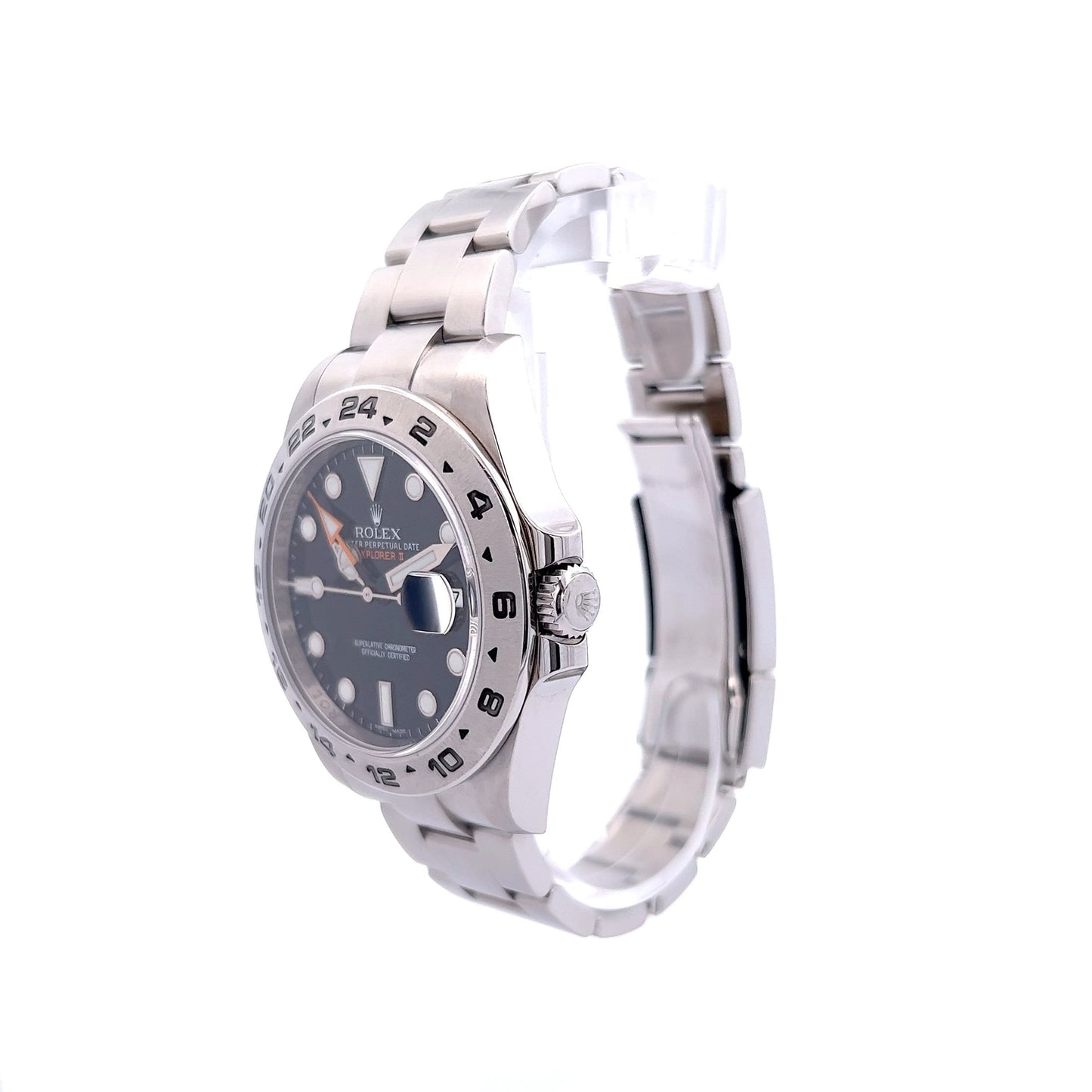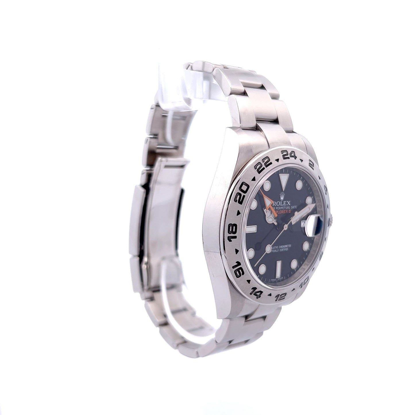 Add a modern edition of the famed Freccione Rolex Explorer II to your watch box today for a competitive pre-owned price. The ref. 216570 features a 42mm case, COSC-rated cal. 3187 Perpetual movement, and longer-lasting lume on the black dial. The ref. 216570 also notably features a bold orange arrow hand that coordinates the bezel to either track day and night hours or read a second time zone. While it was developed as an adventurer's tool watch, the Explorer II is now desired by collectors of all professions and lifestyles for its ruggedly handsome aesthetic, durable construction, and highly reliable reading.