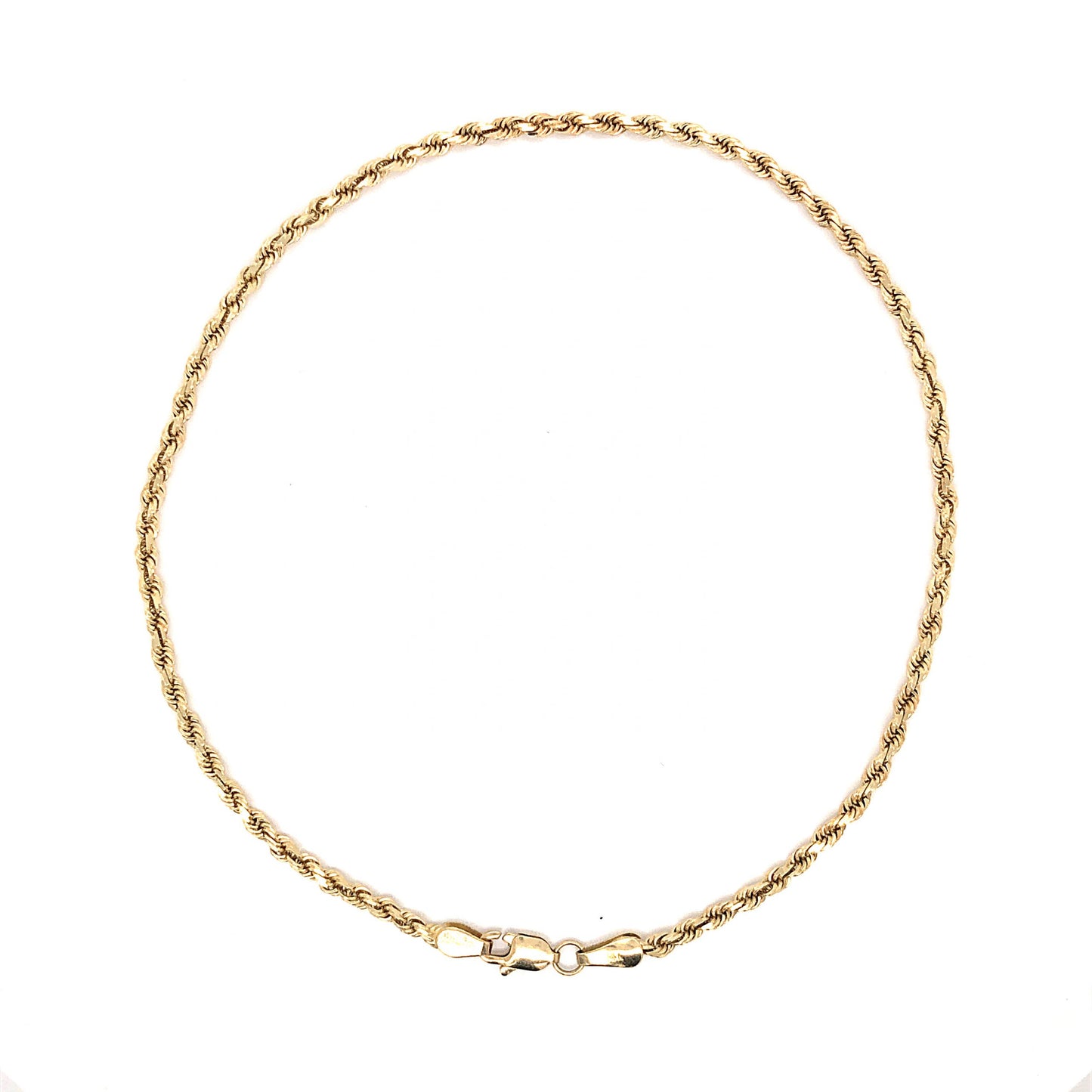 This shimmering spring and summer fashion staple is a must-have. This modern twisted rope chain anklet features an alluring design in 14 karat yellow gold. Weighing a total of 4.6 grams and measuring 10” long, this ankle chain is a perfect accessory for any stylish occasion.
