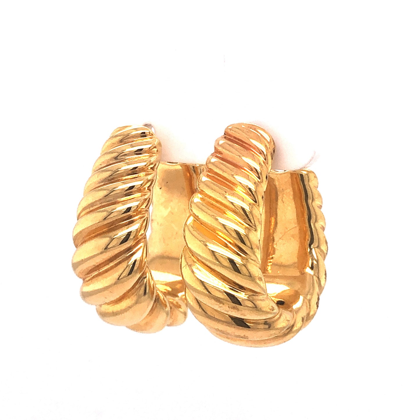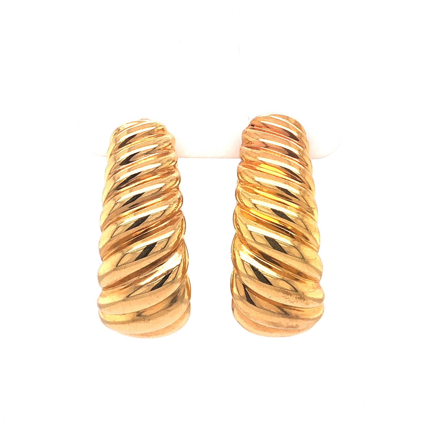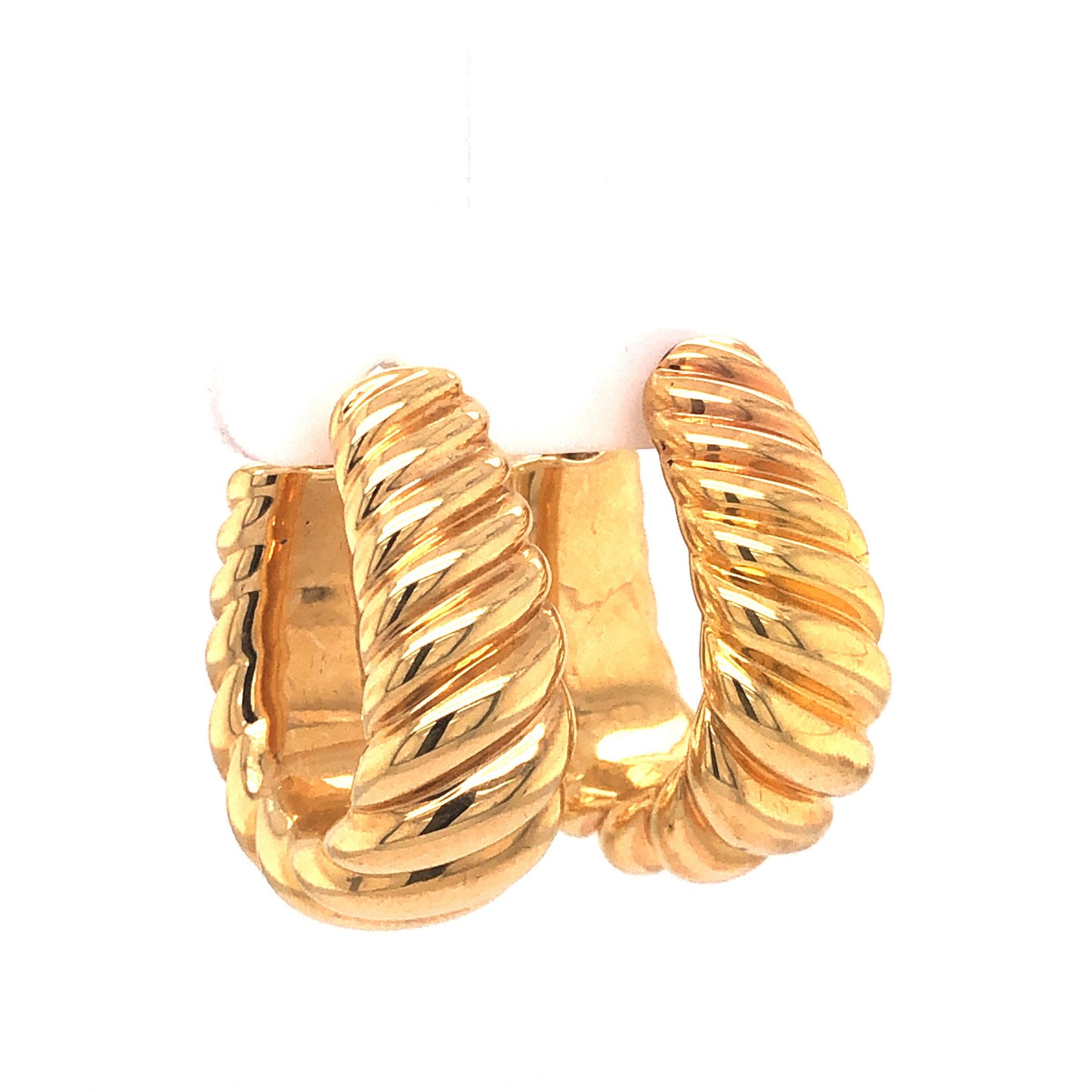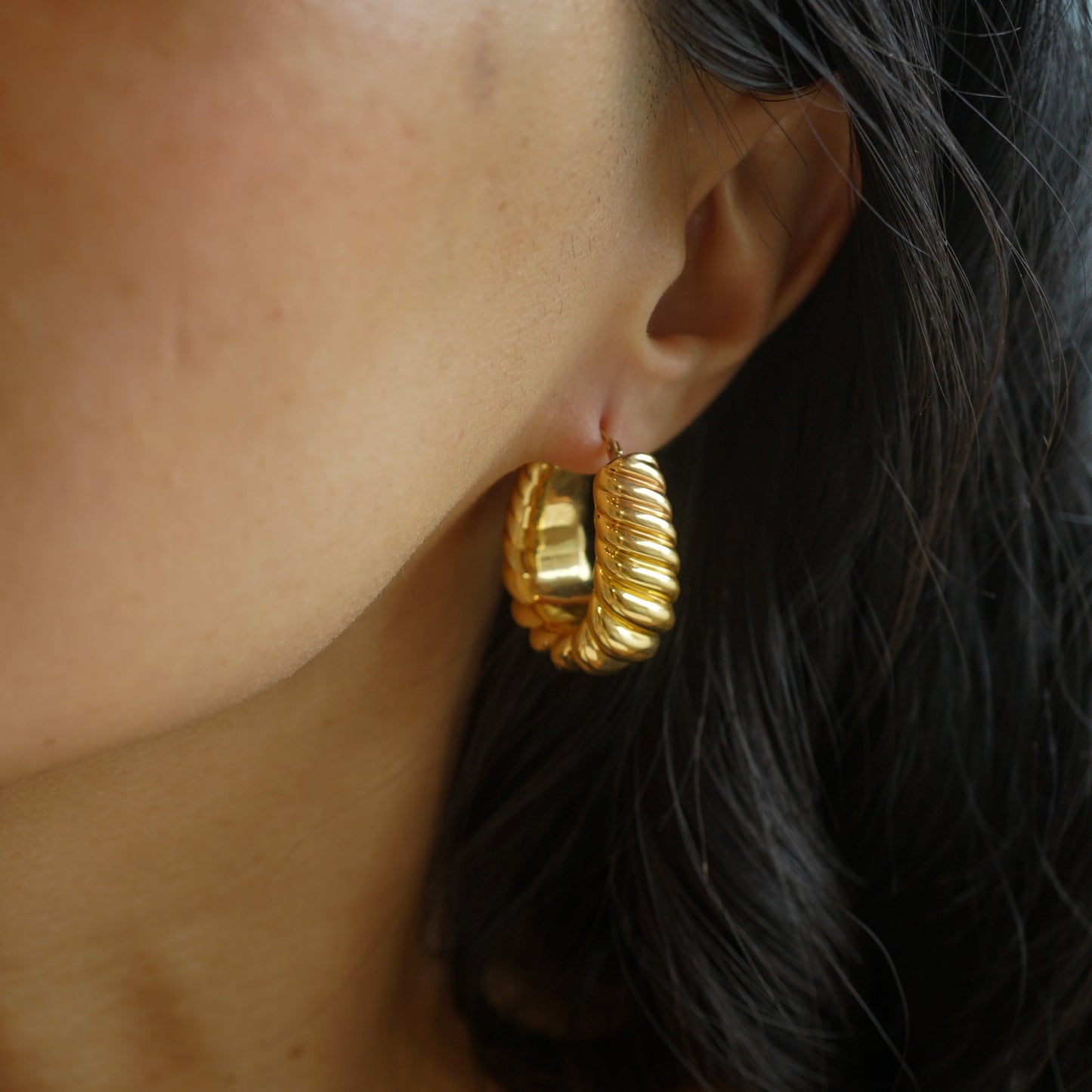 Hello 90s fashion! These beautiful textured hoop earrings feature swirl engravings in 14 karat yellow gold. The midi hoops have an iconic Italian designed rope texture. Also known as “croissant hoops”, these earrings are radiant and fit perfectly with any modern wardrobe. Shop More Hoop Earrings.