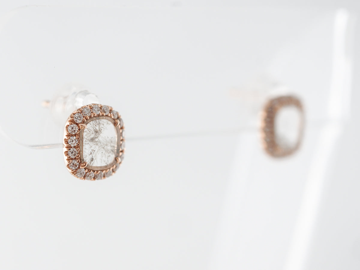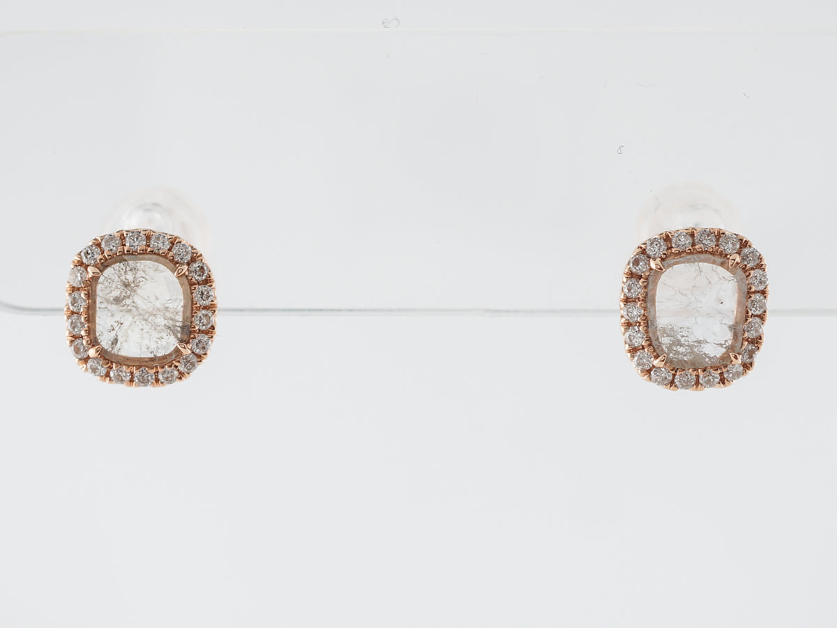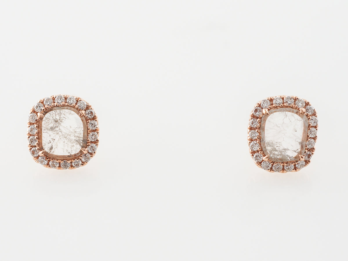 Rose Cut Diamond Halo Earrings in Rose Gold