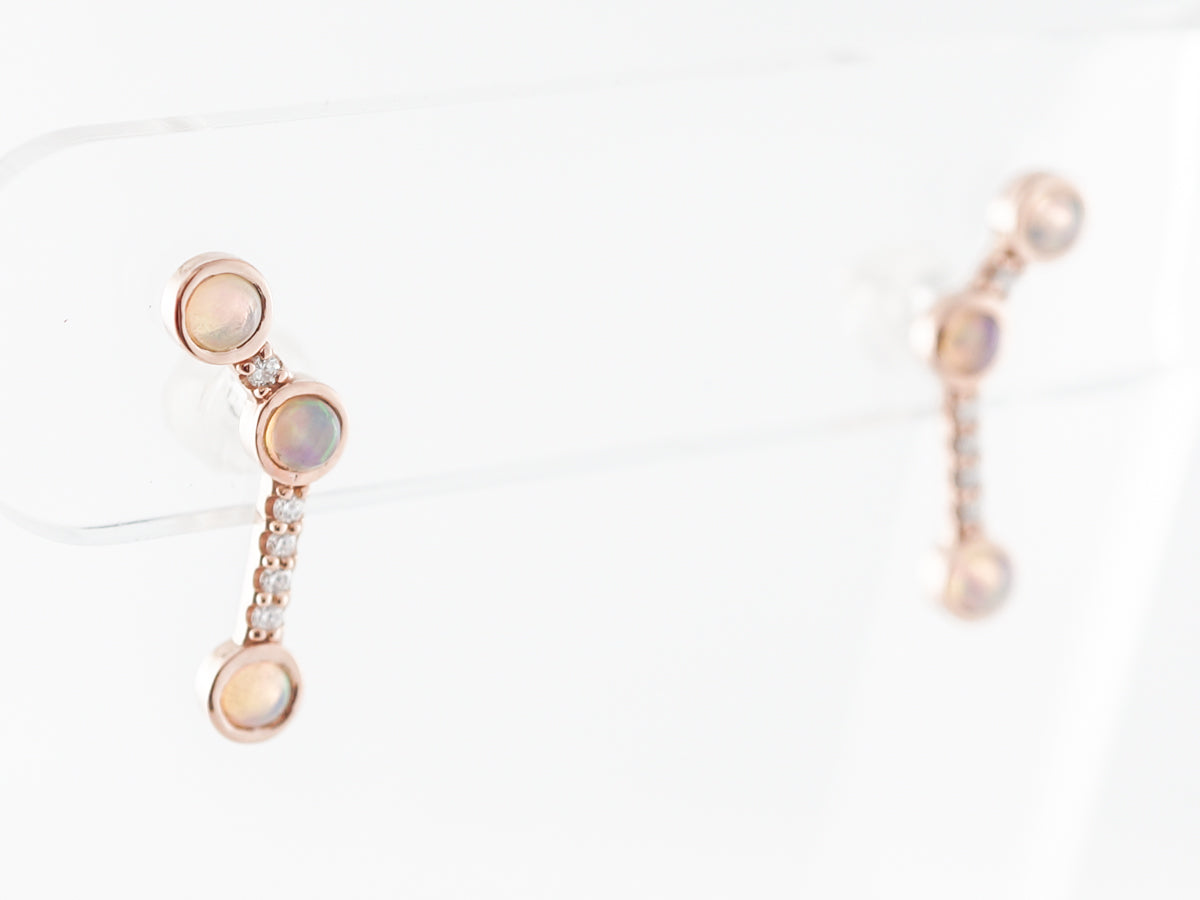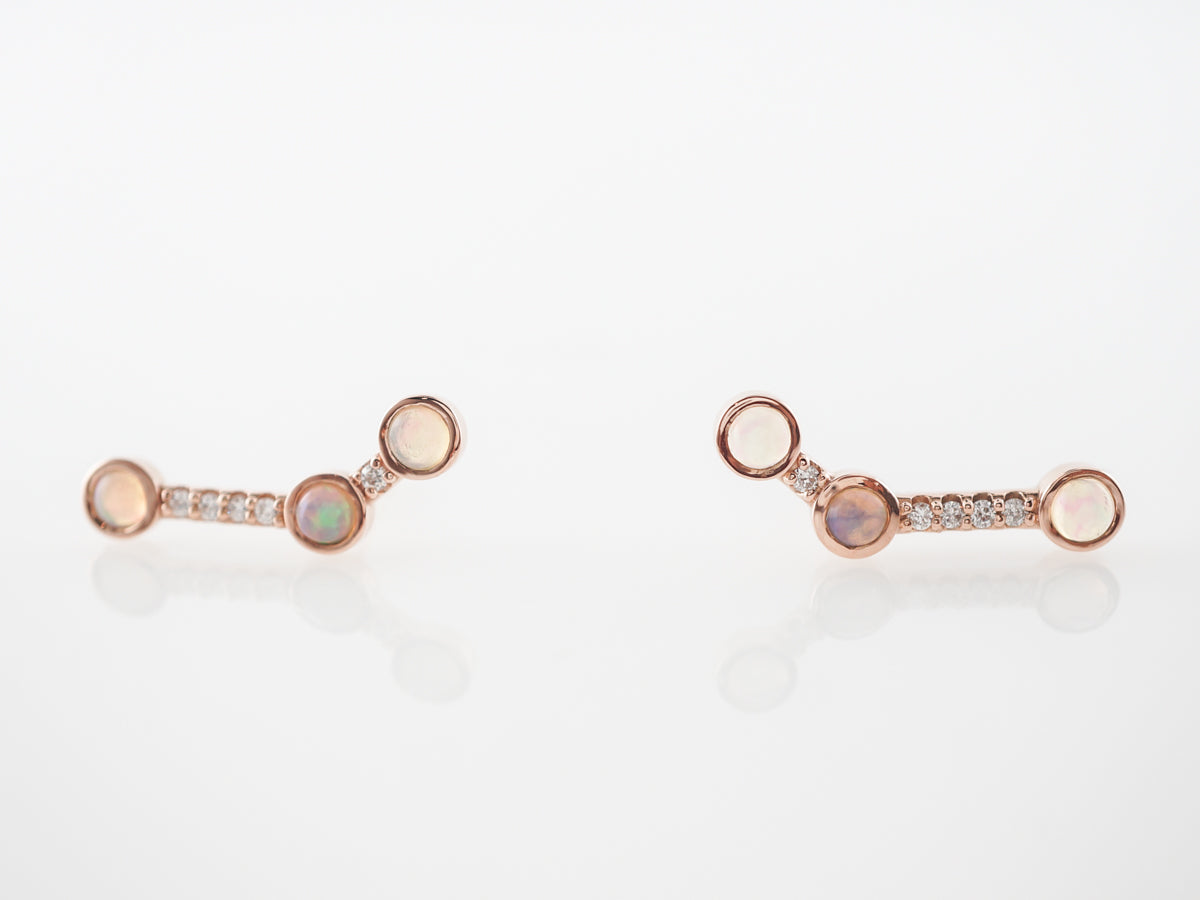 Rose Gold Earrings w/ Opal & Diamonds