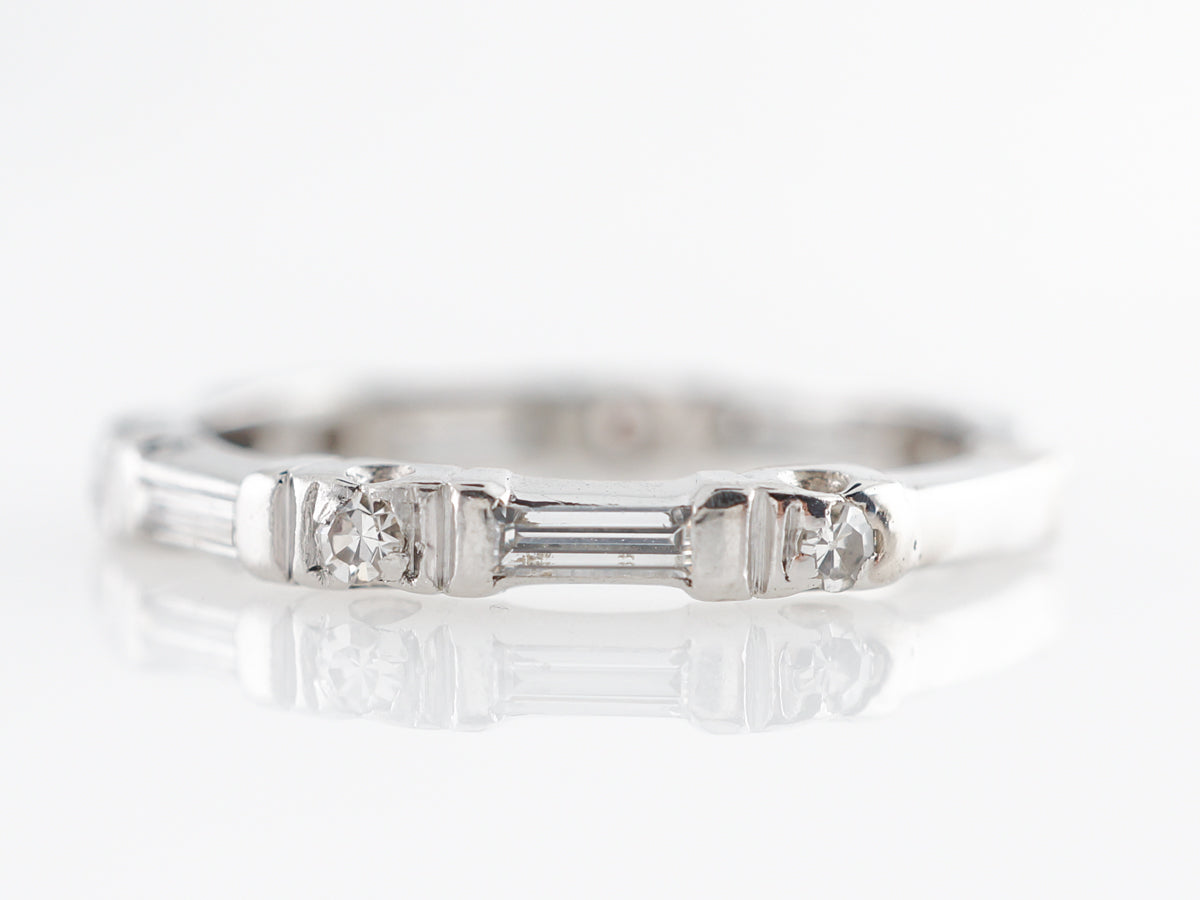 Round & Baguette Cut Diamond Wedding Band in Platinum