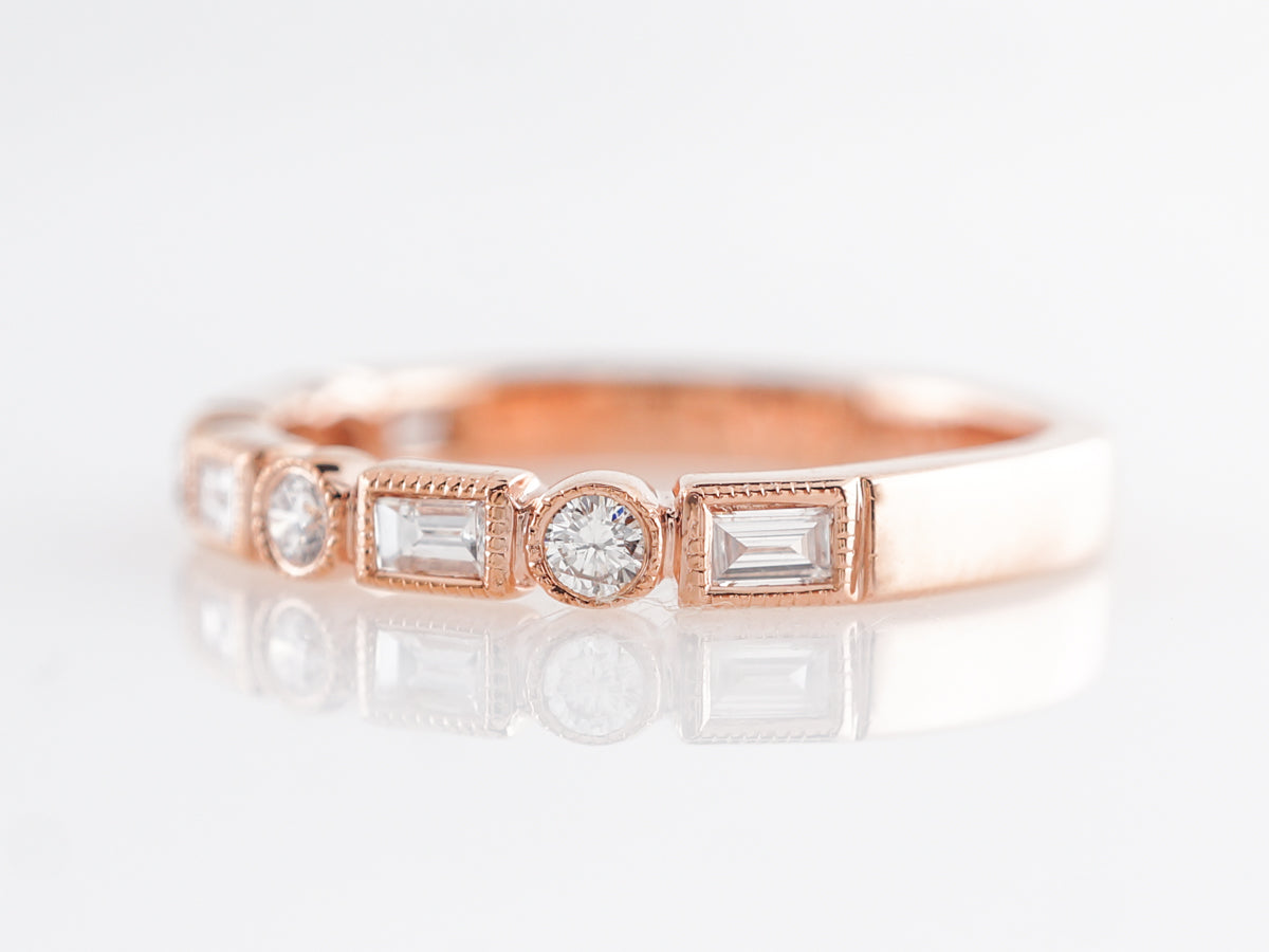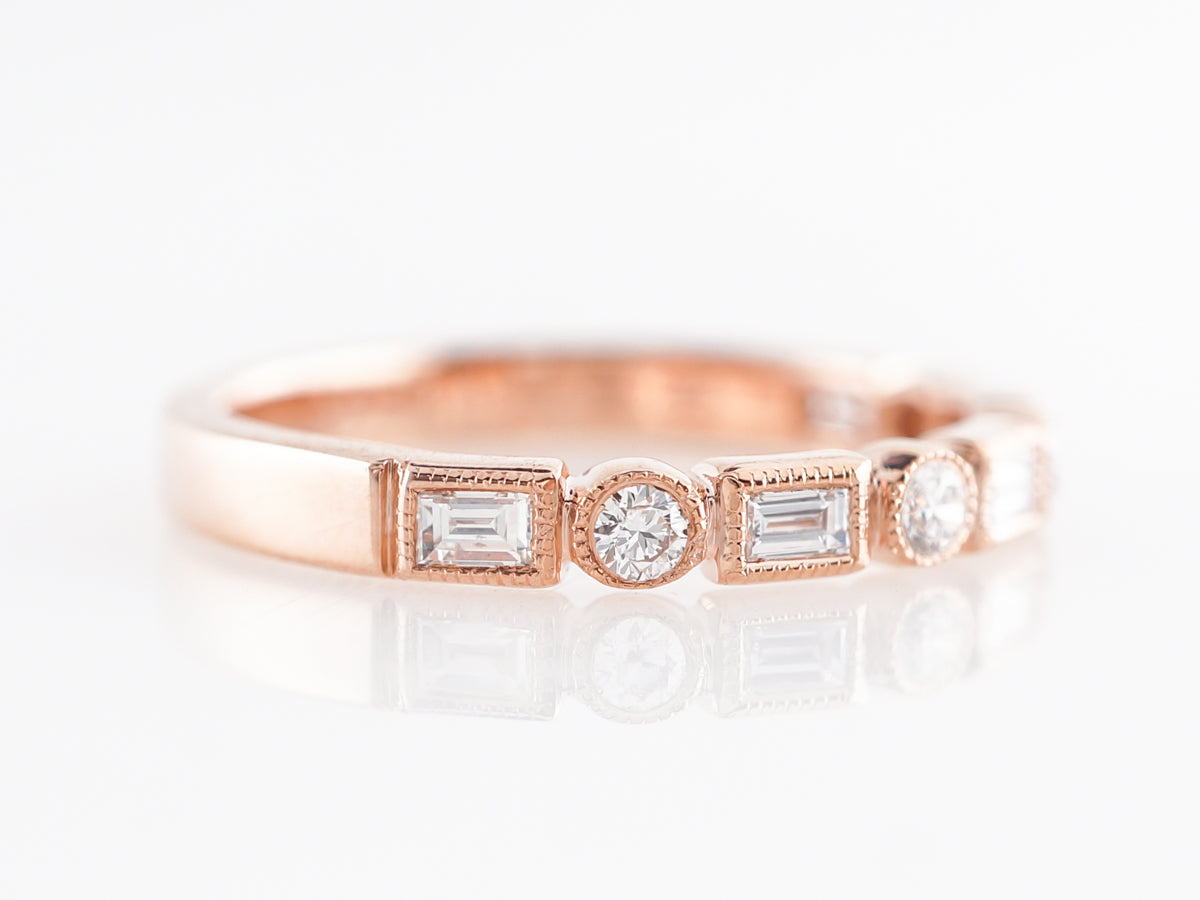 Round & Baguette Diamond Wedding Band in Rose Gold