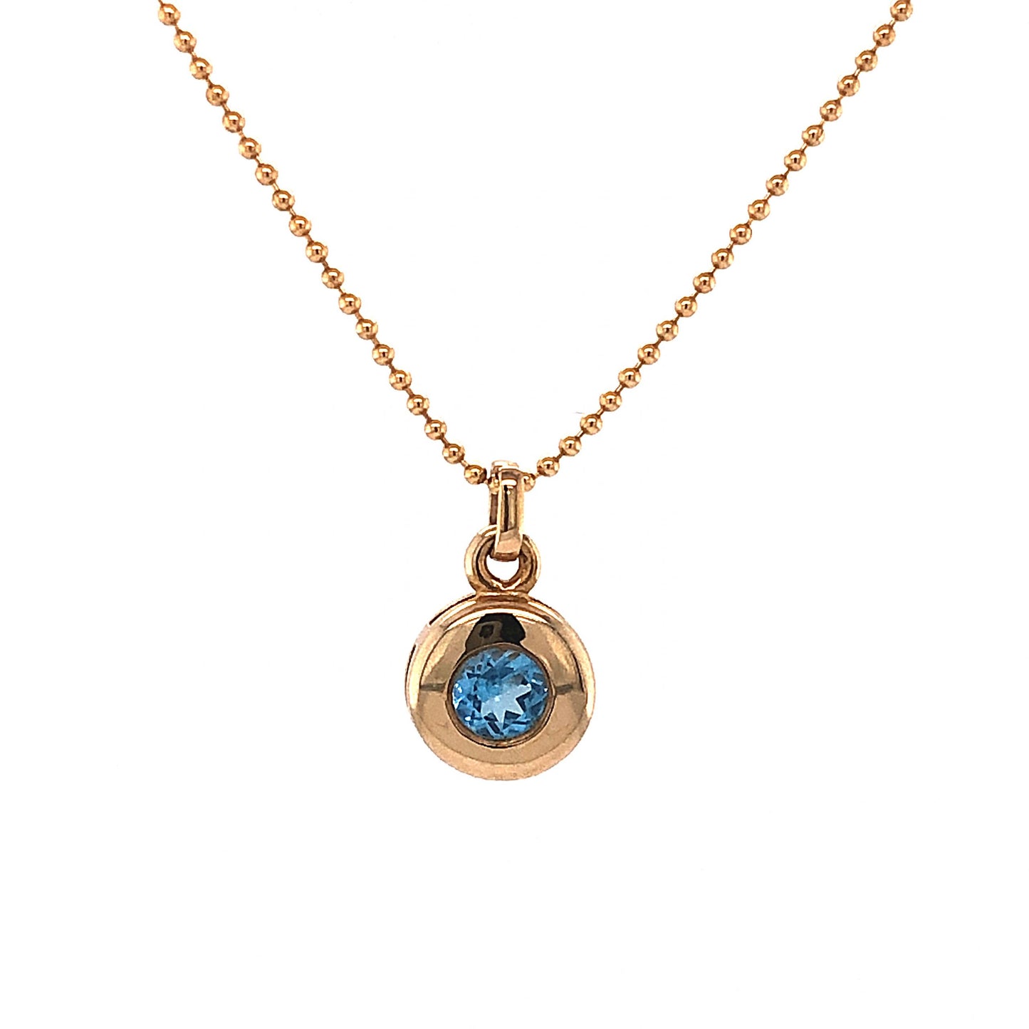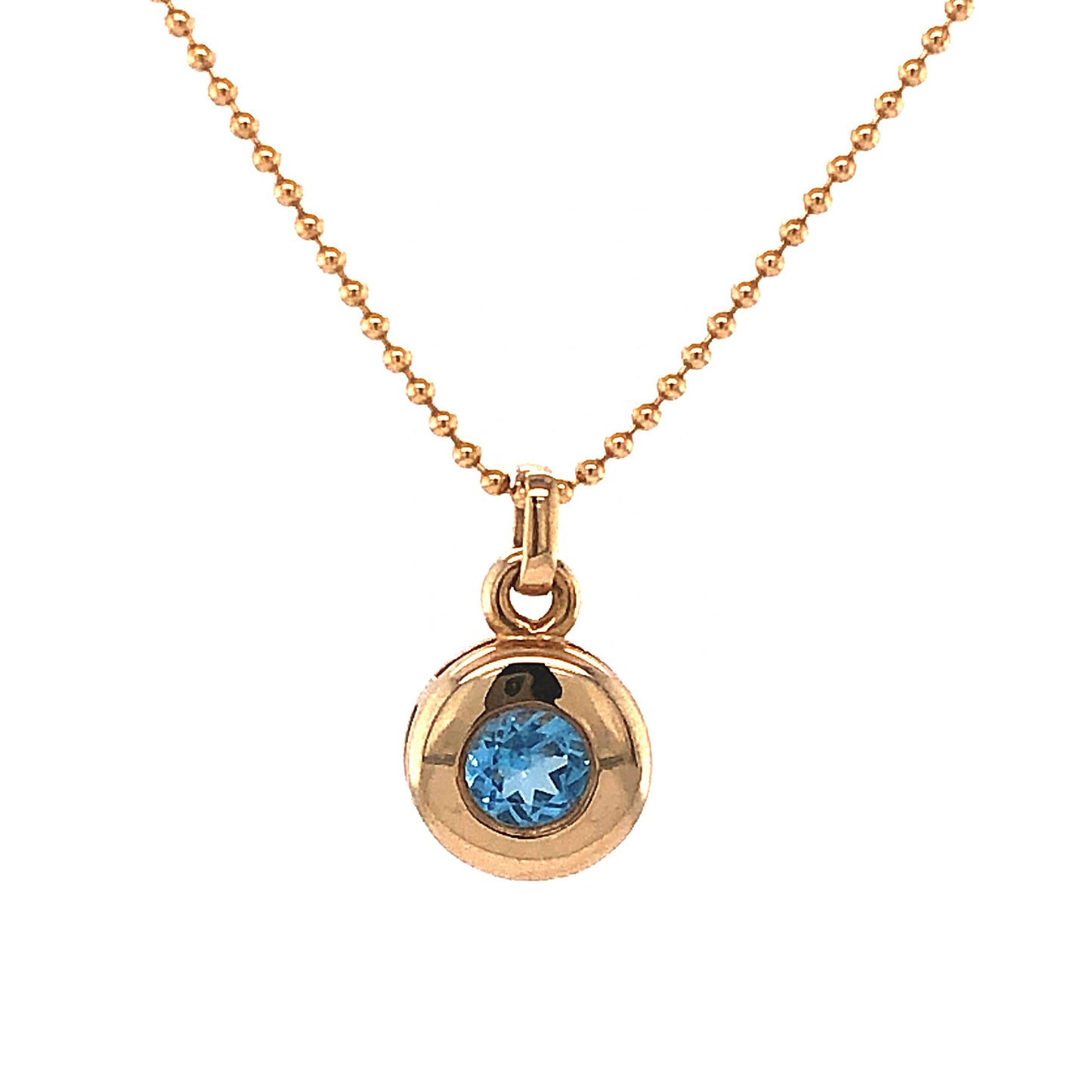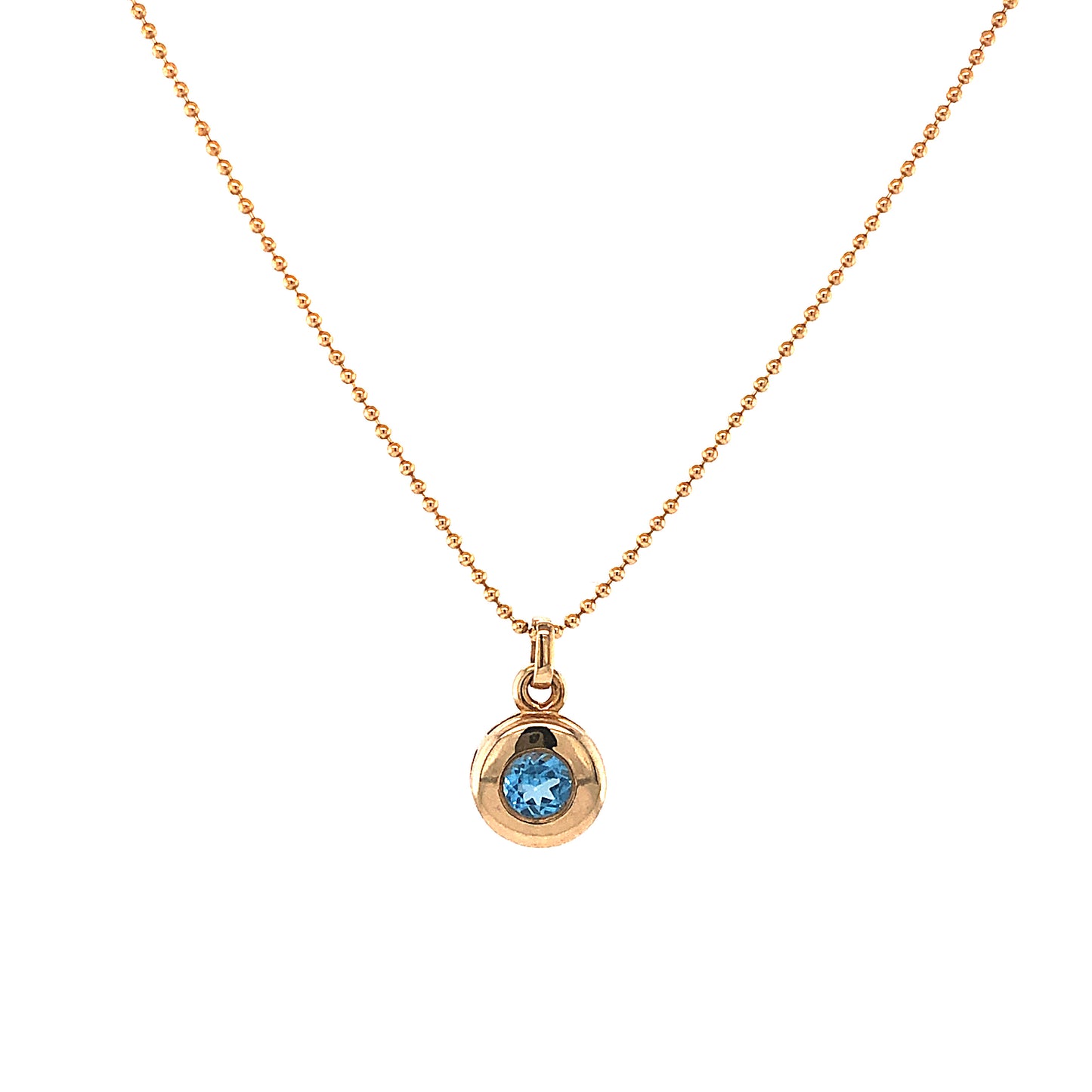 Round Blue Topaz Pendant Necklace in 14k Yellow Gold