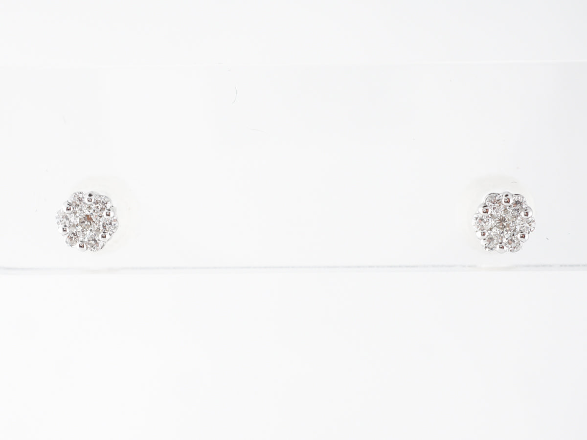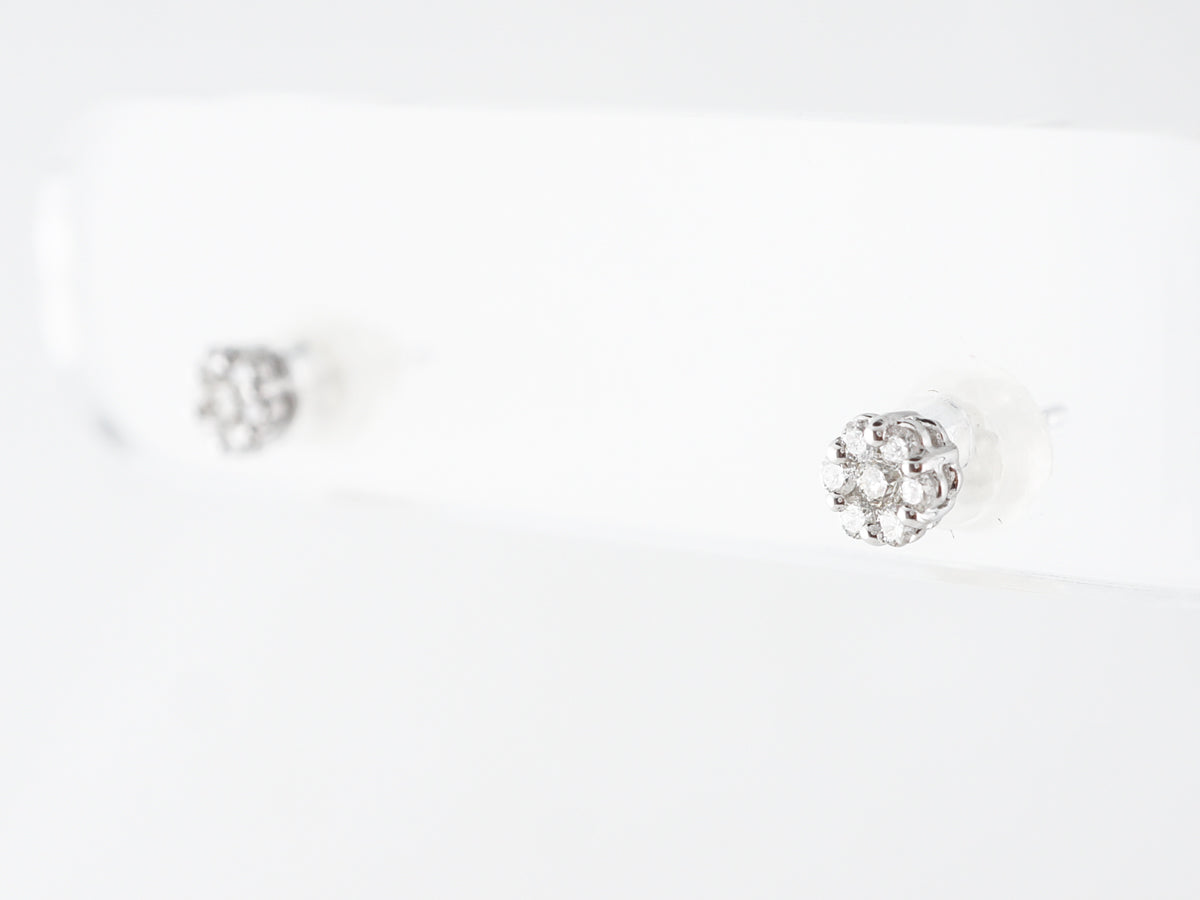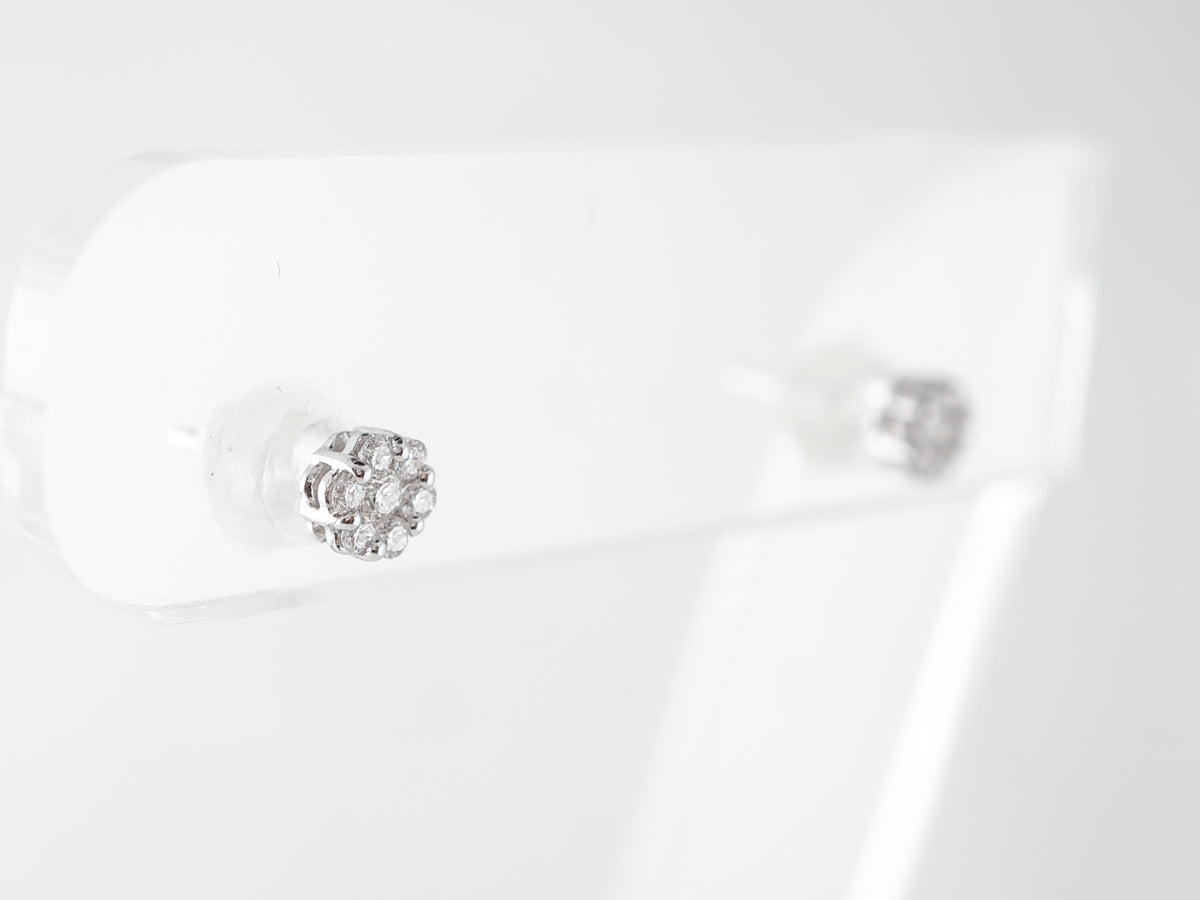 Round Brilliant Diamond Cluster Stud Earrings in 14k White Gold. These modern stud earrings feature .21 carats of round brilliant cut diamonds and are set in 14 karat white gold. The lovely round clusters would be great for everyday wear and could be easily worn on a fancy night out.