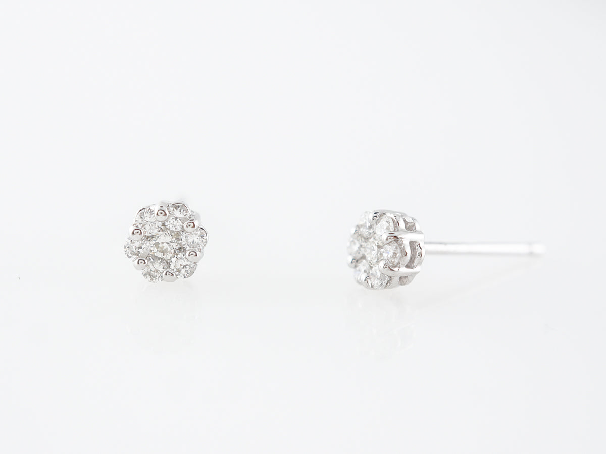 Round Brilliant Diamond Cluster Stud Earrings in 14k White Gold