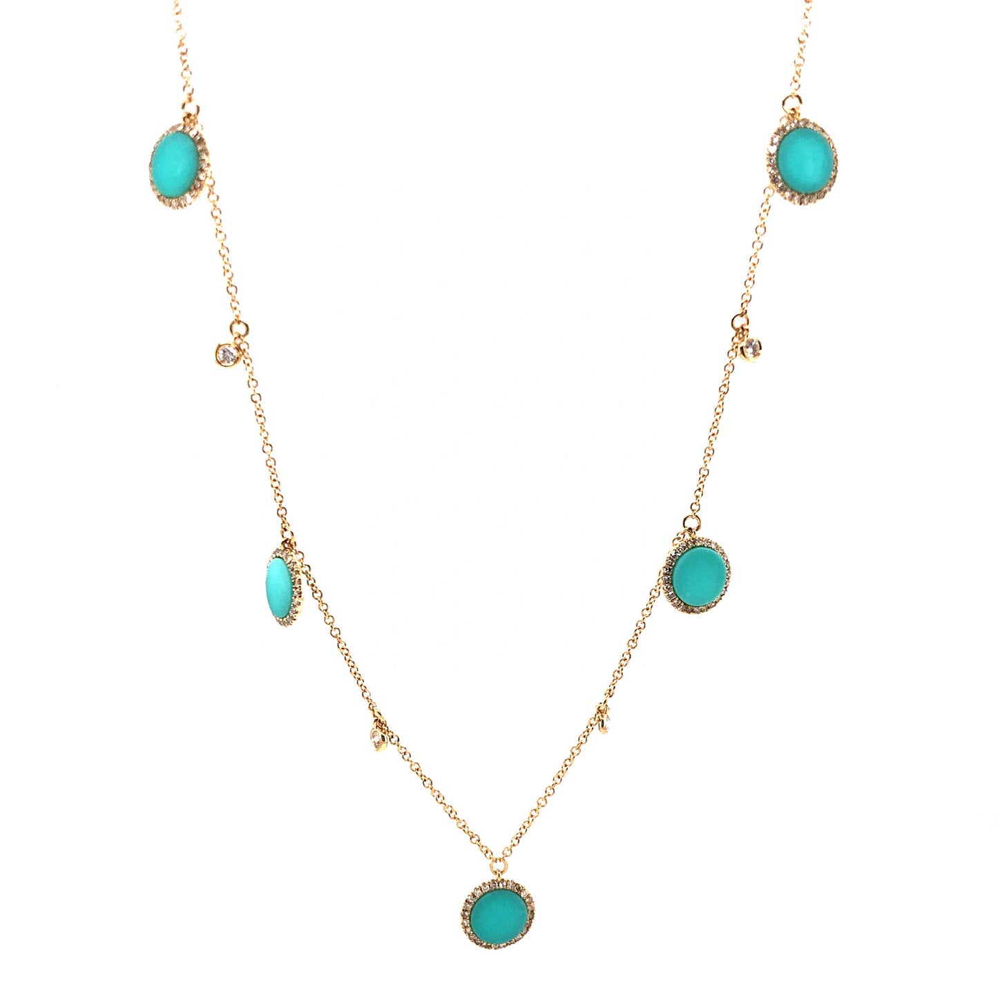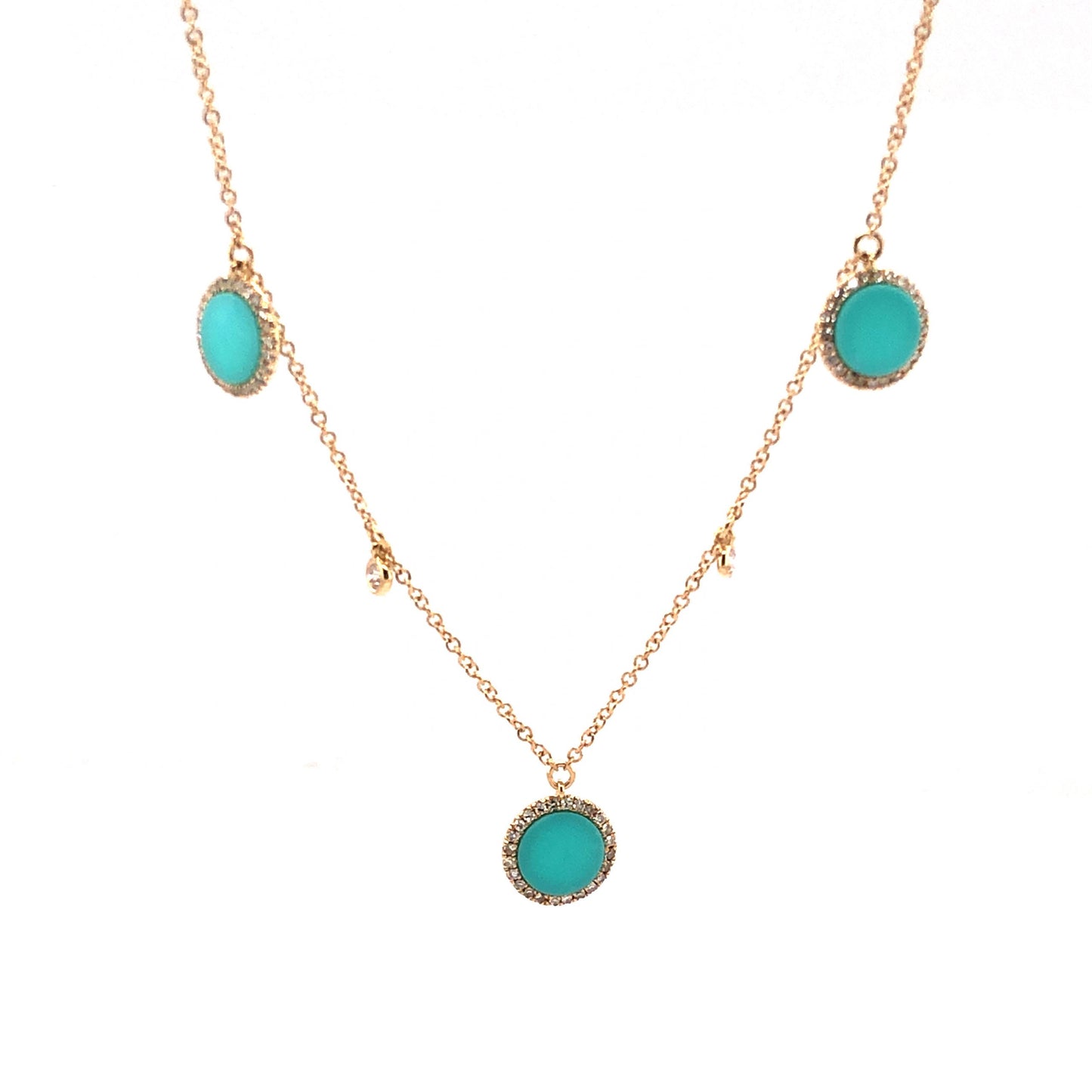 Round Cut Turquoise & Diamond Necklace in 14k Yellow Gold
