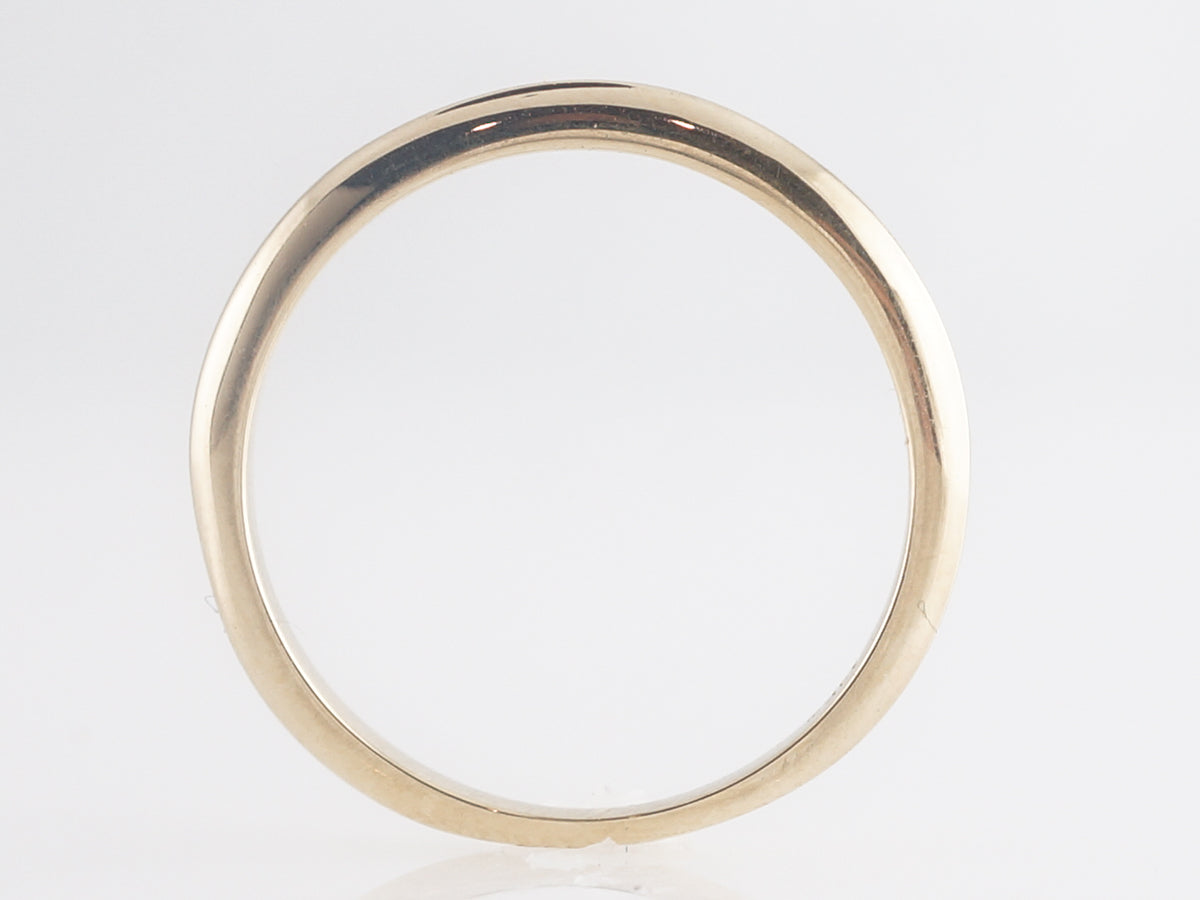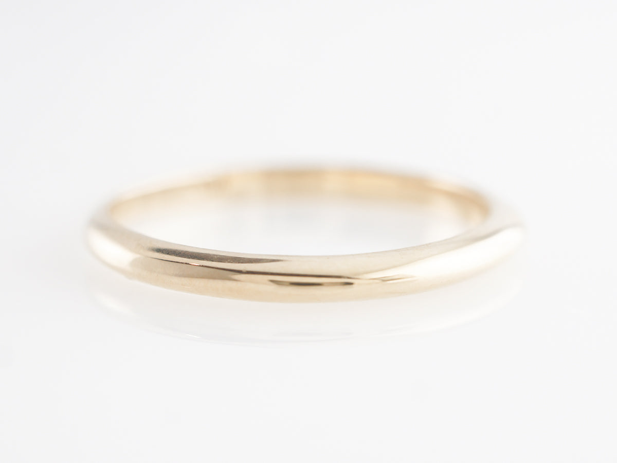 Simple 2mm Wedding Band in 14k Yellow Gold. A classic plain wedding band finished in 14 karat yellow gold. Perfect for a stack of bands to space out some others and add a bit of warm gold color. Would also pair well with an engagement ring for a minimalist look.