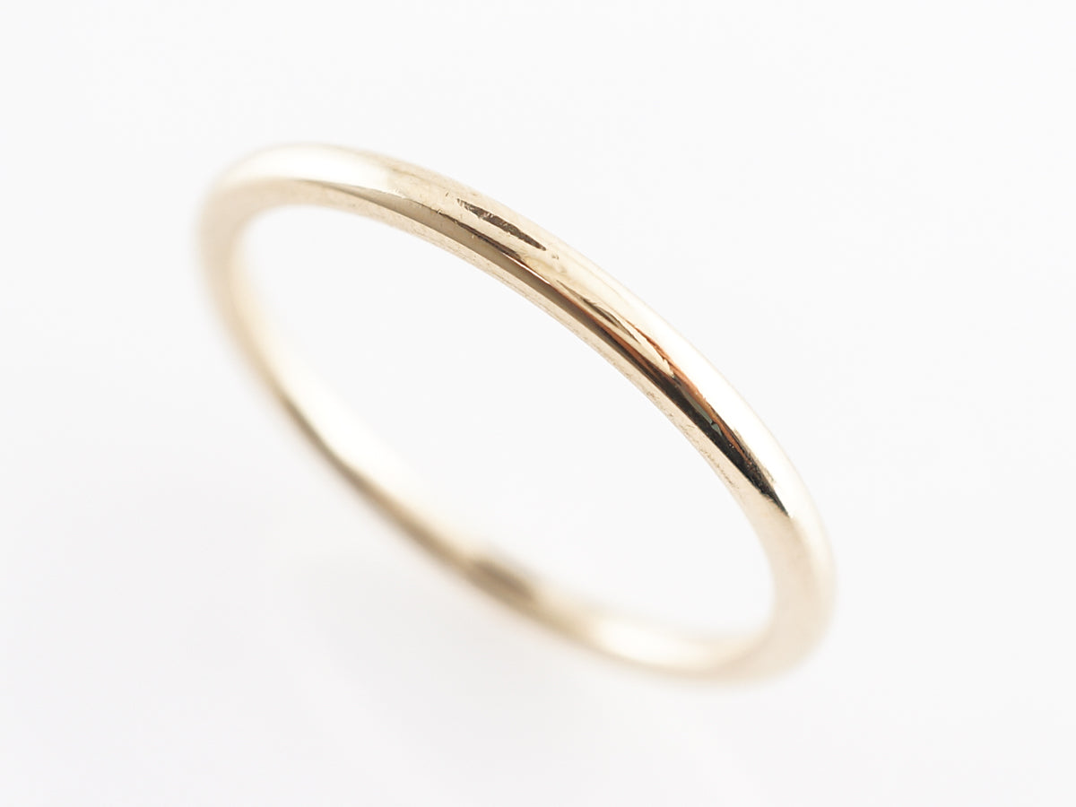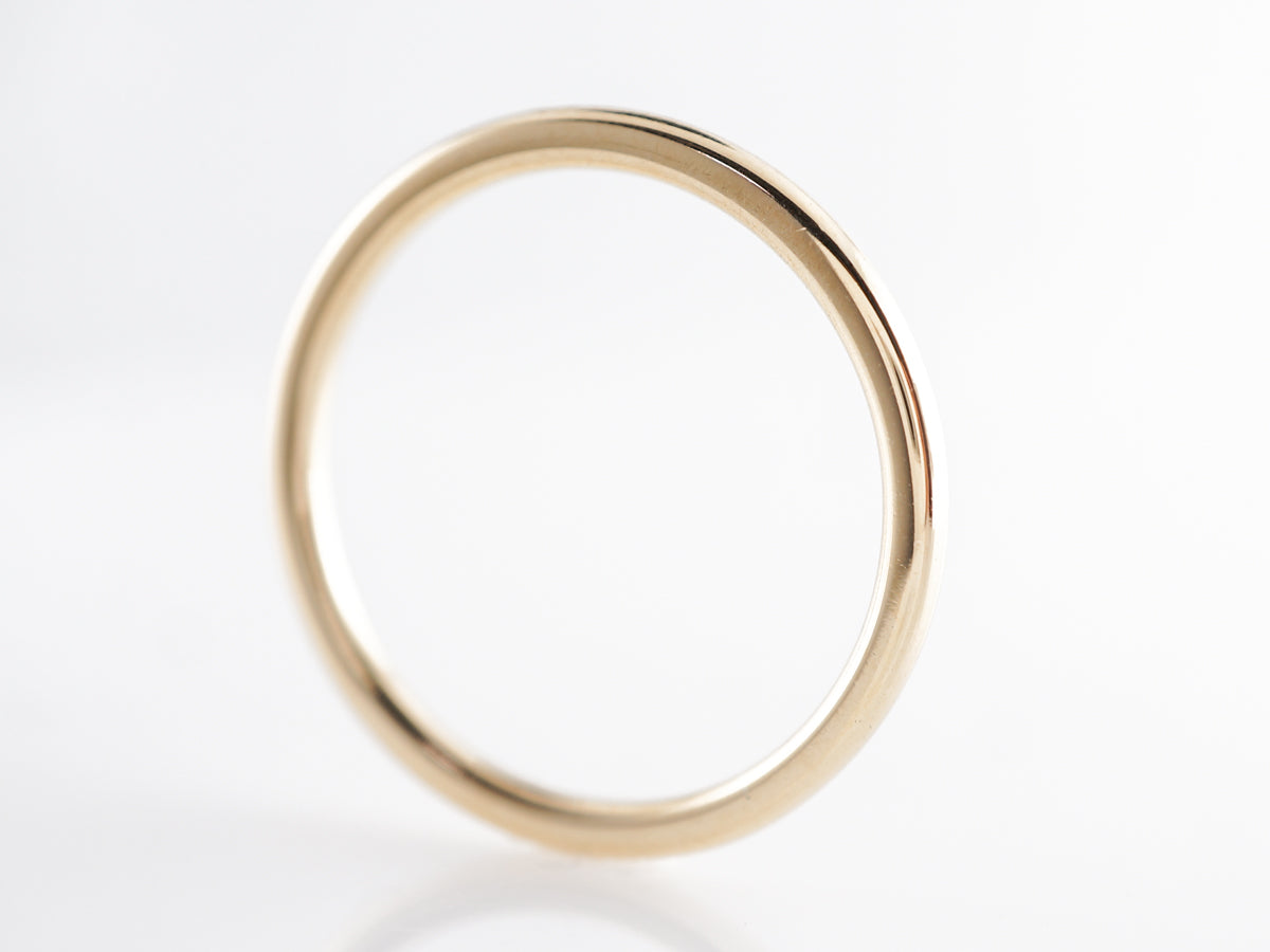 Simple Modern Wedding Band in 14k Yellow Gold. This simple wedding band has a high polish and is finished in 14 karat yellow gold.