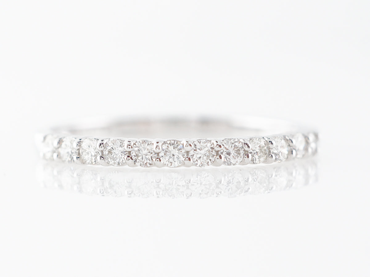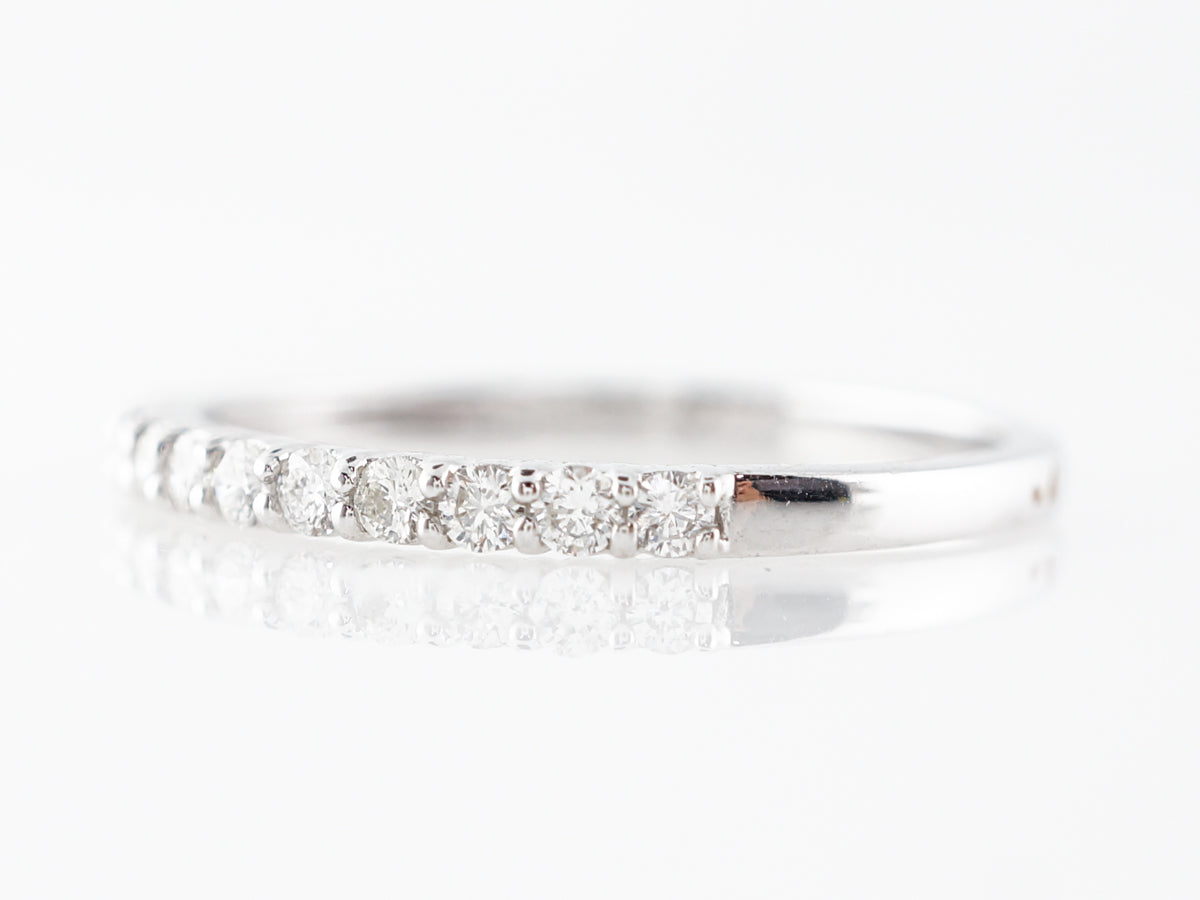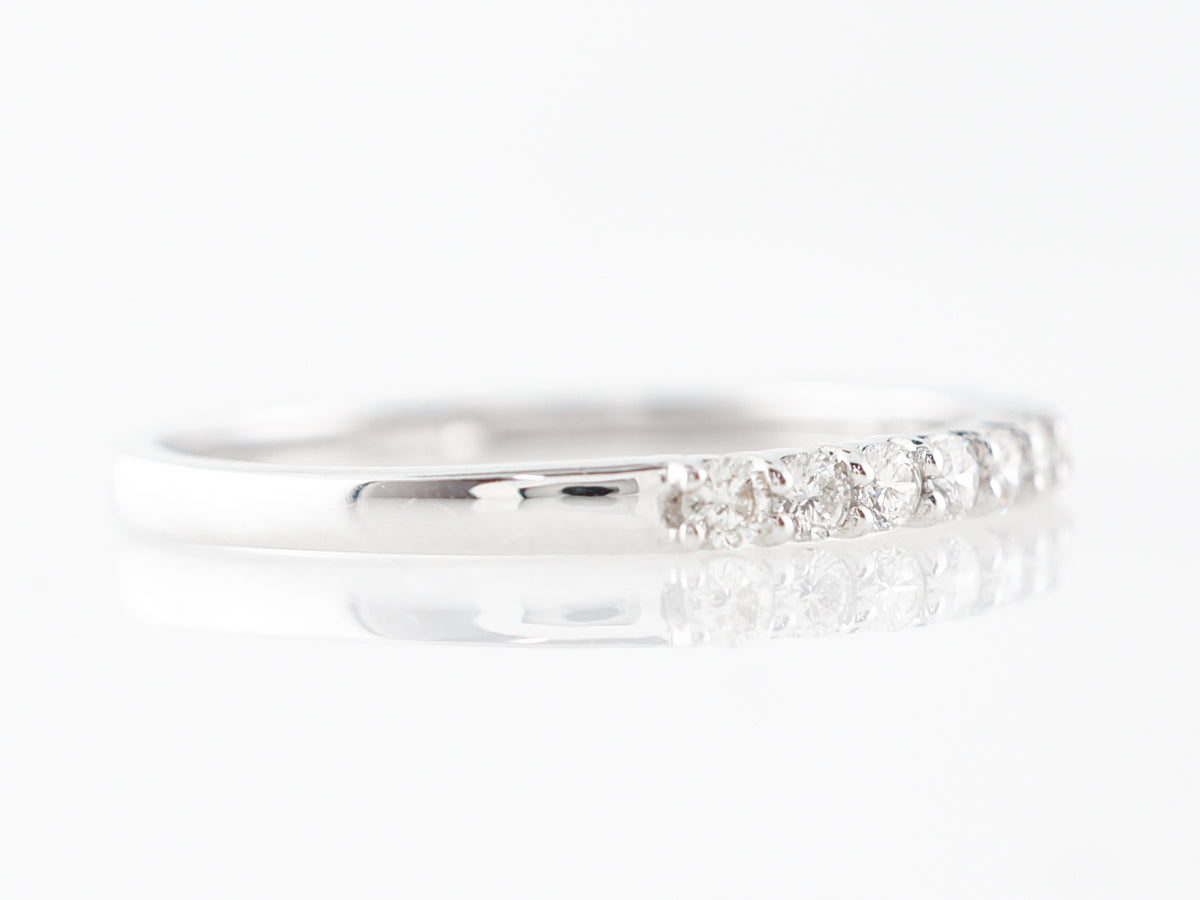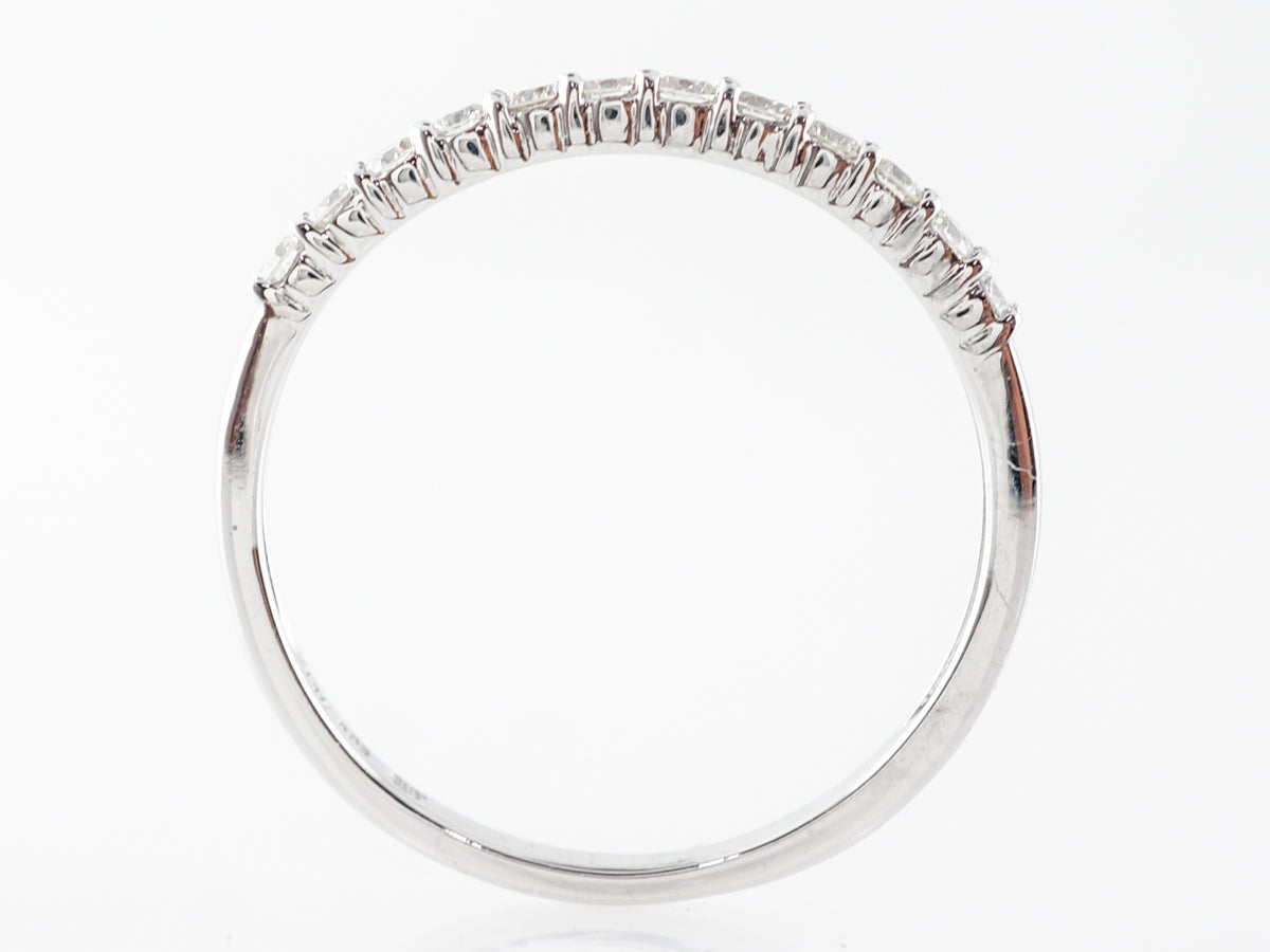 Simple Round Diamond Wedding Band in White Gold. This sparkling half-eternity wedding band features .22 carats of round brilliant cut diamonds set in 14 karat white gold. This would be a perfect addition to give a solitaire engagement ring a little extra sparkle, or could be worn on the right hand as a stacking ring.