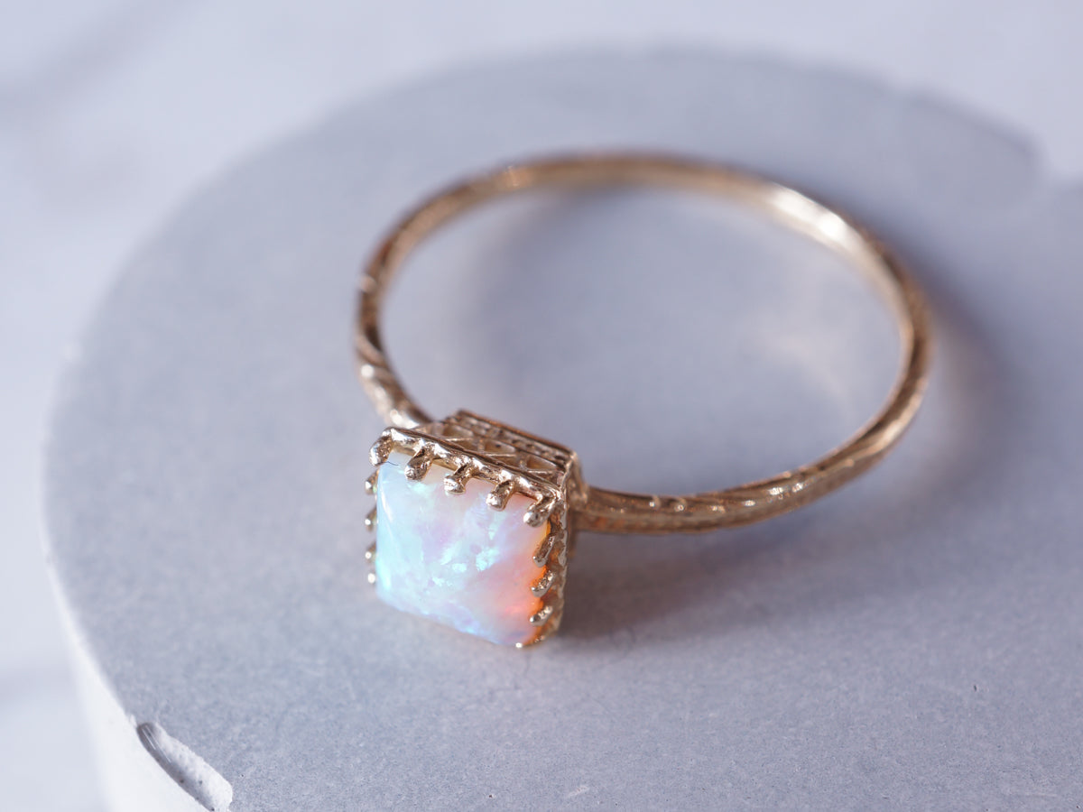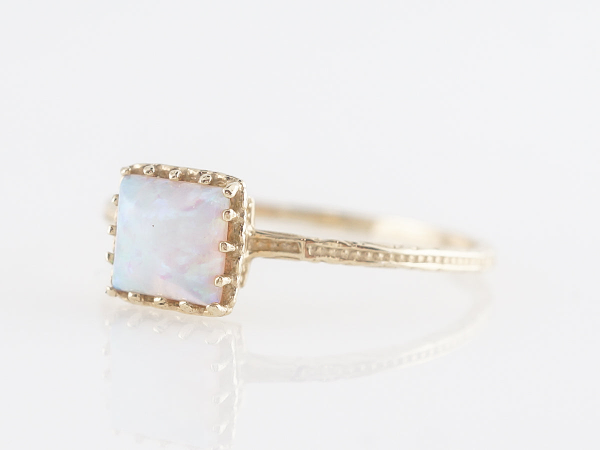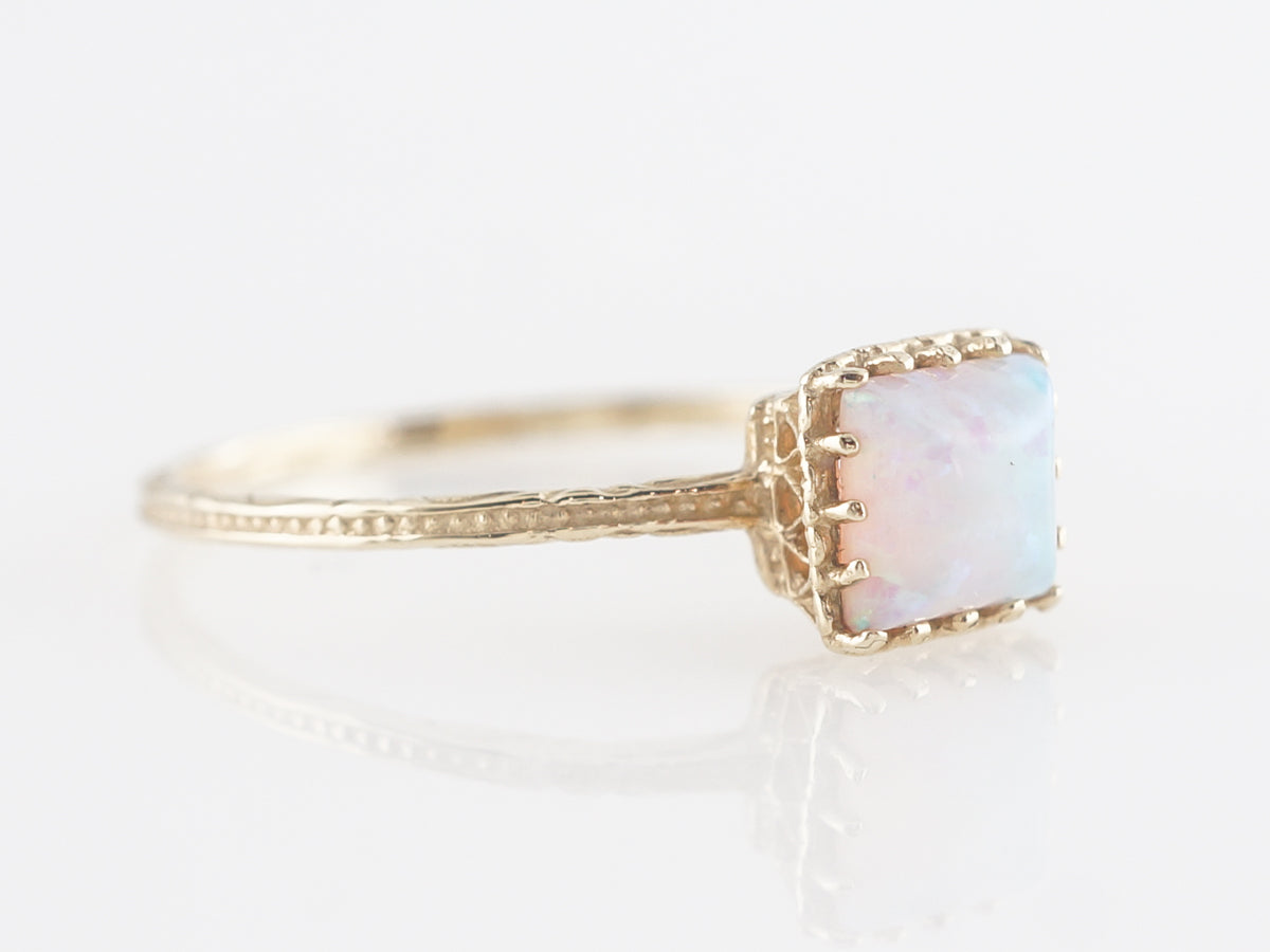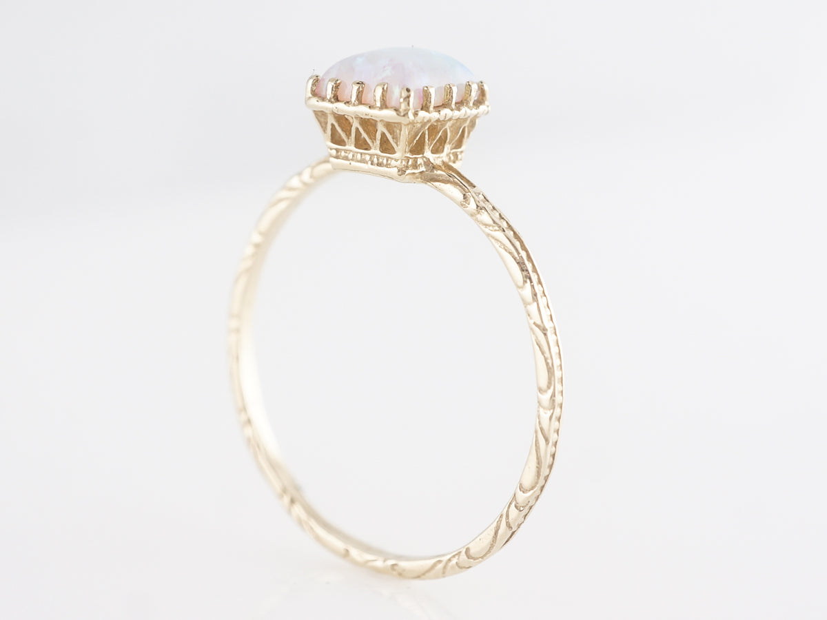 Simple Solitaire Opal Right Hand Ring 14k Yellow Gold