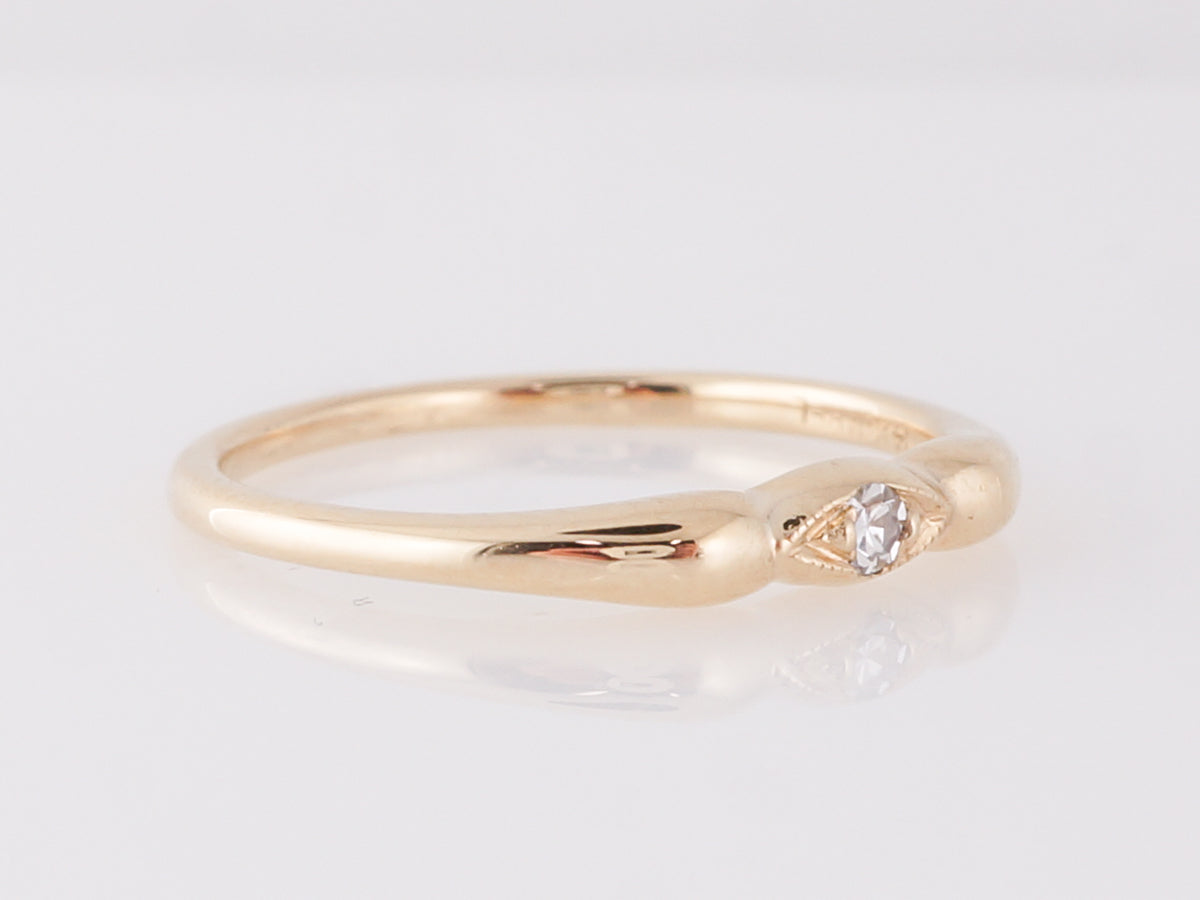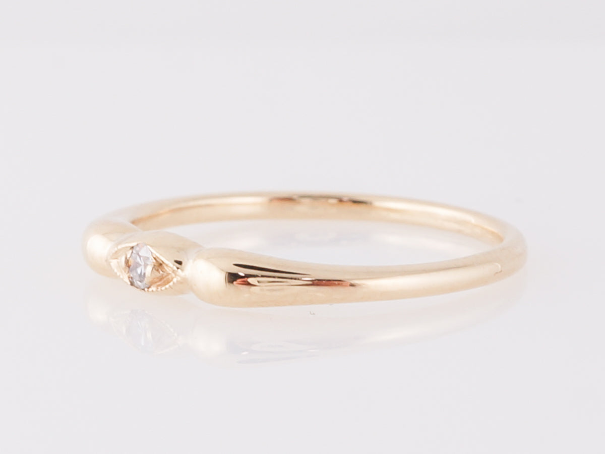 Solitaire Diamond Right Hand Ring in Yellow Gold. This dainty right hand ring features a .025 carat diamond and is set in 14 karat yellow gold. The shank becomes wider up until the marquise shaped setting that holds the diamond. This would be an excellent addition to a stack of bands and would obviously look elegant placed alone on your right hand.