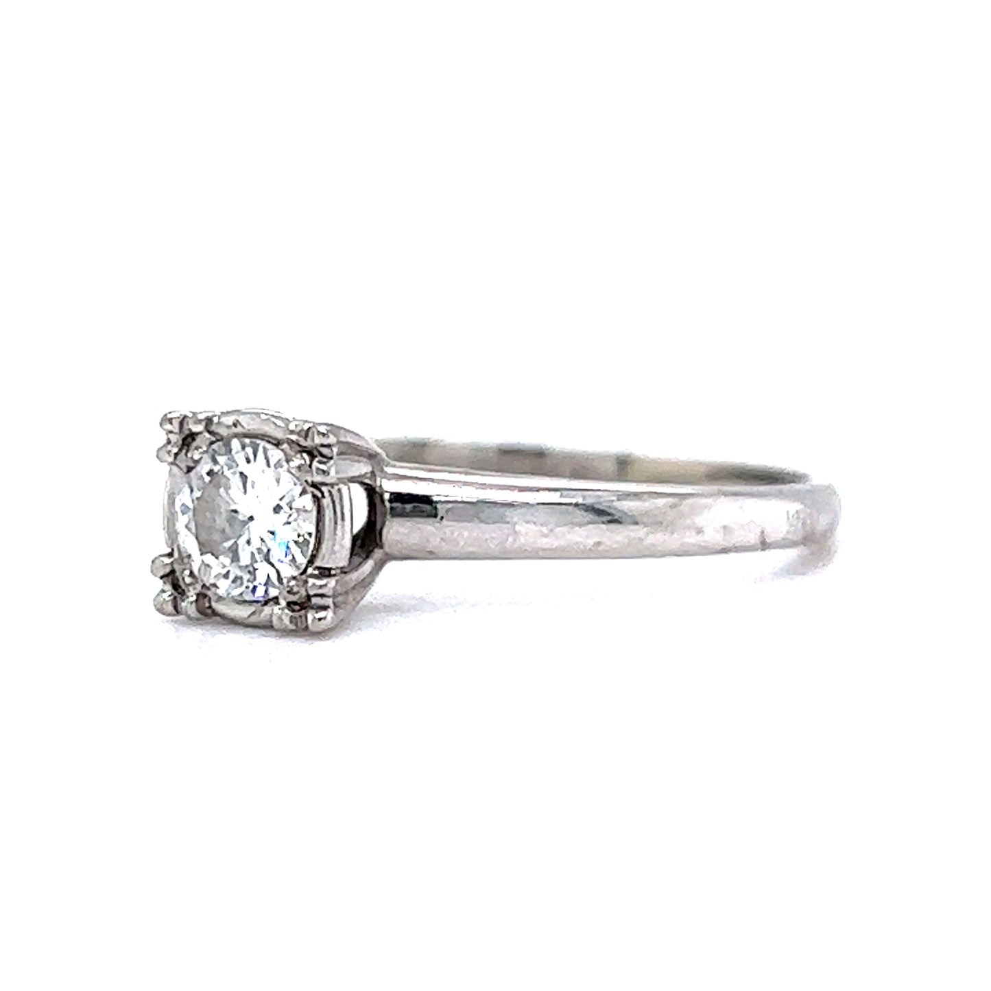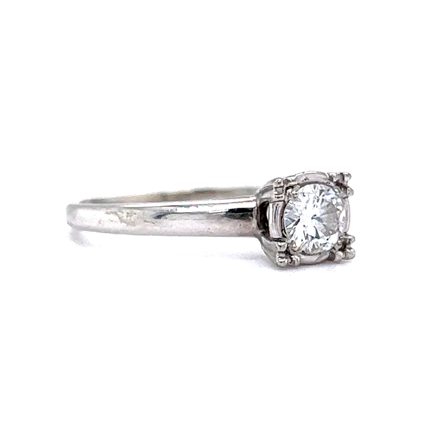 Solitaire Diamond Ring Vintage Mid-Century in 14k White Gold
